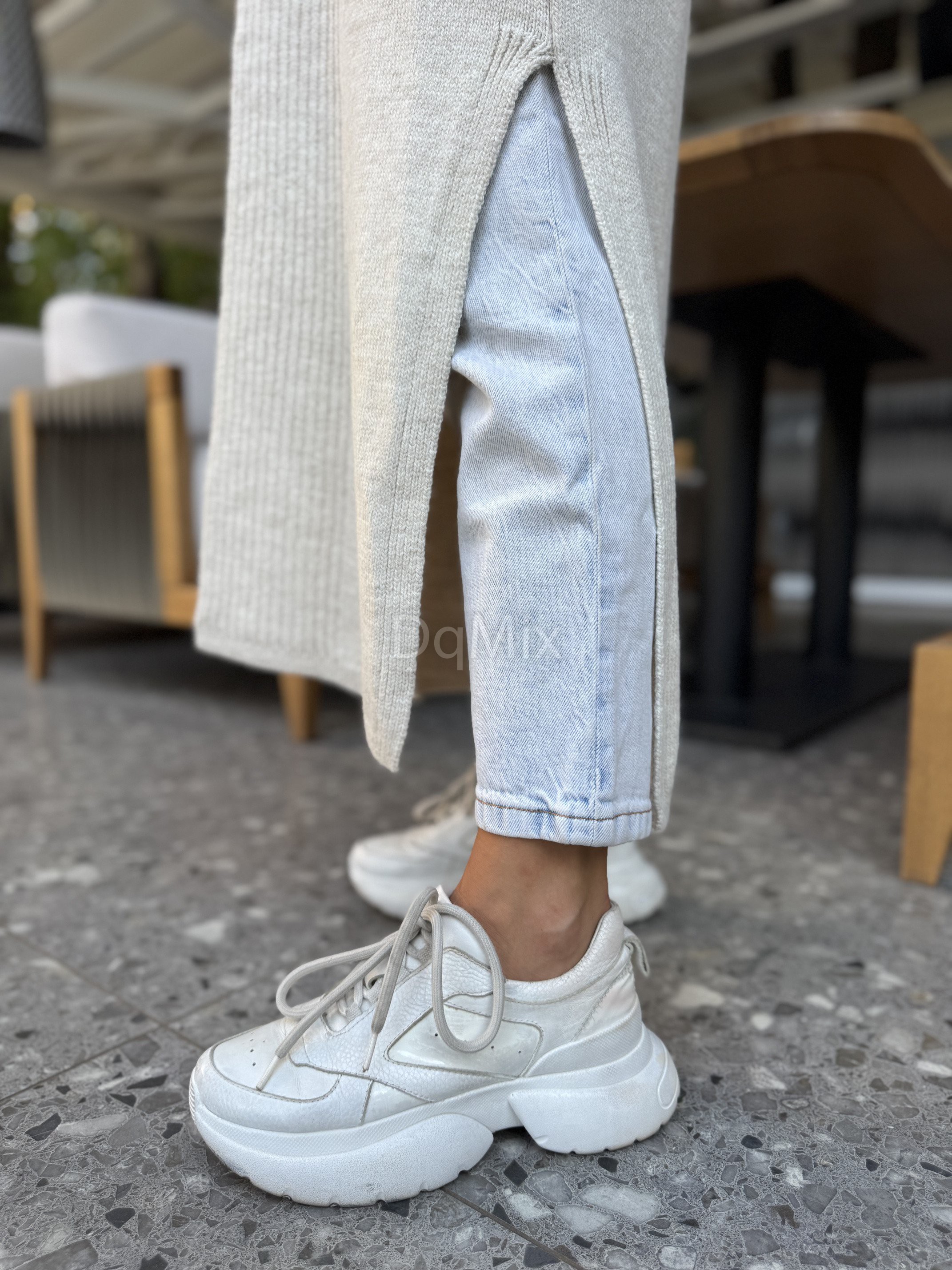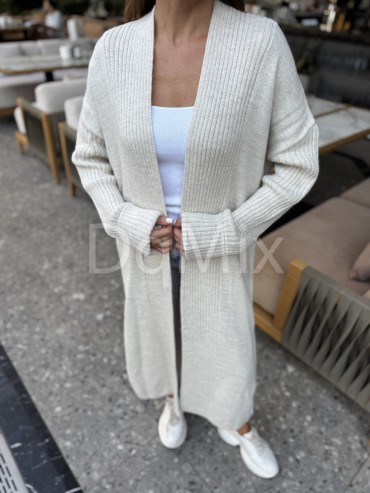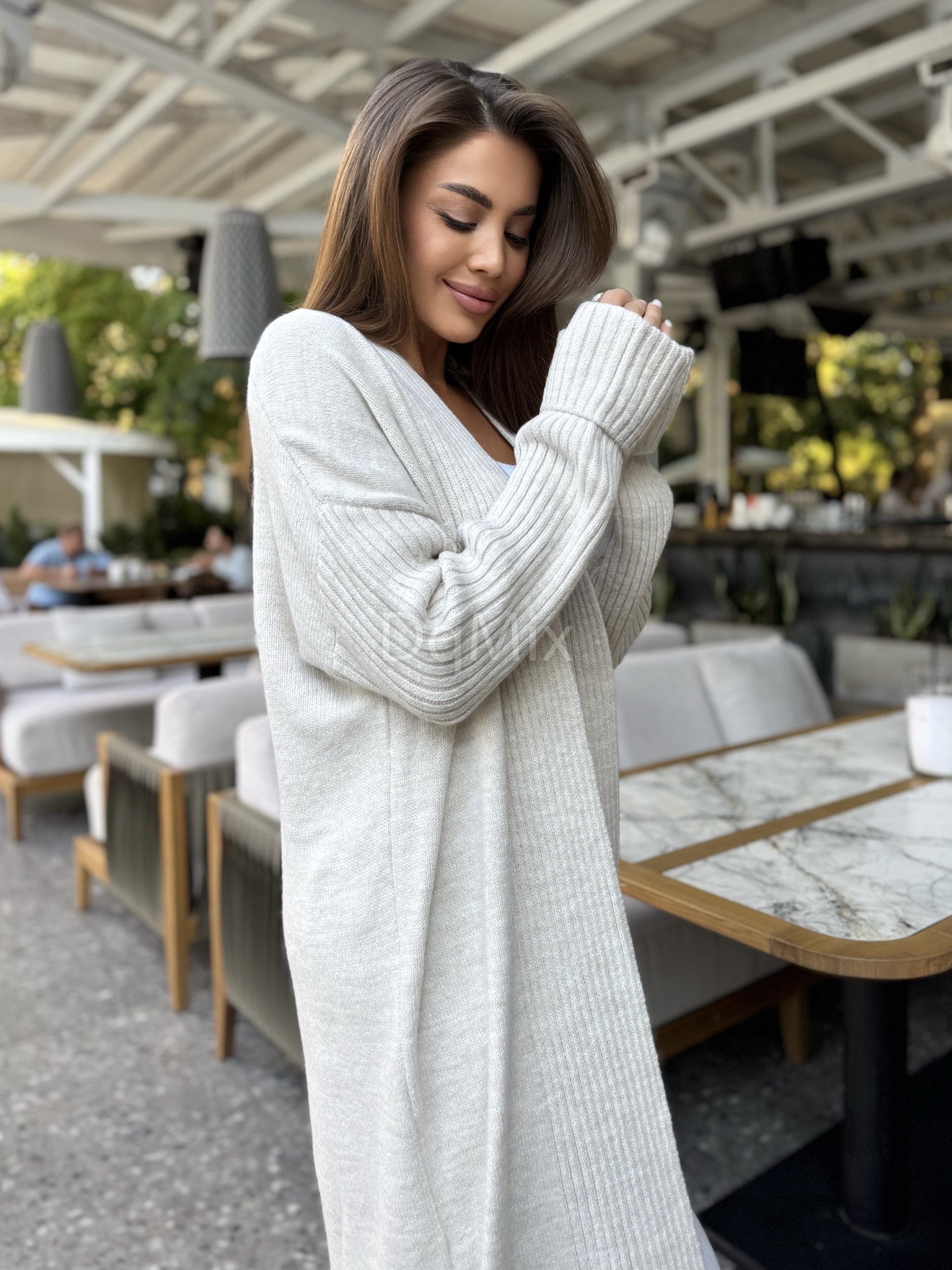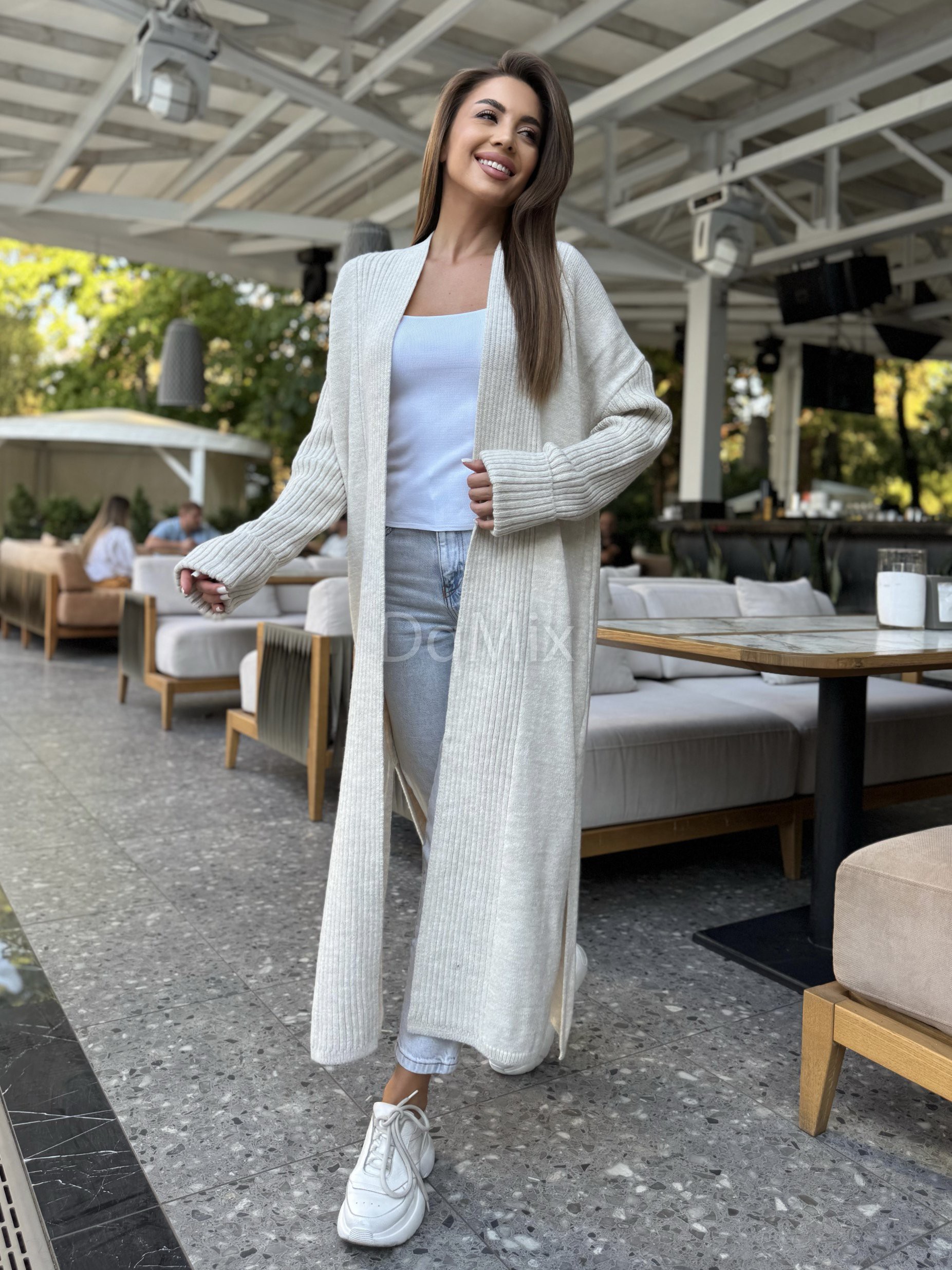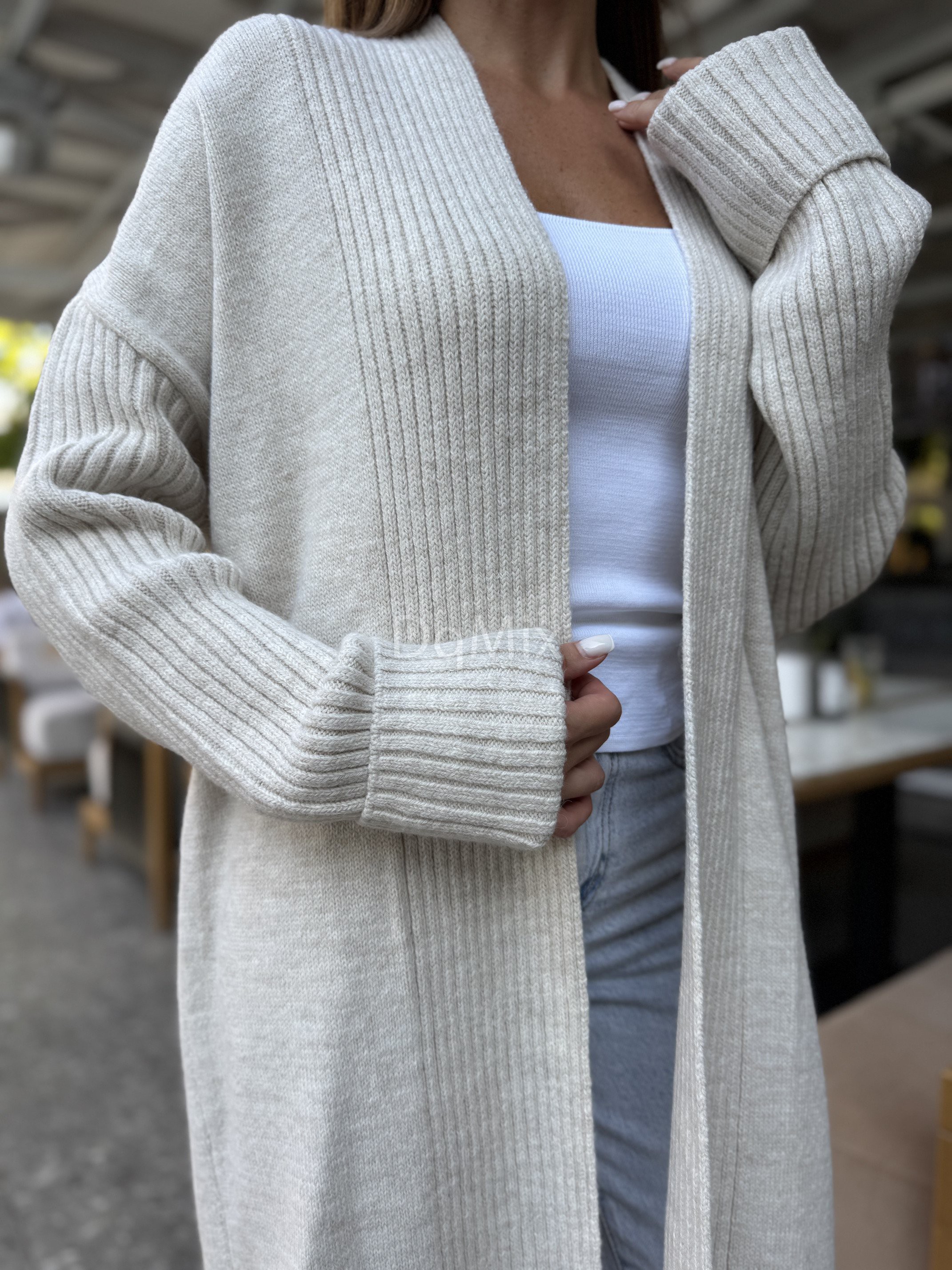 Бежевий подовжений кардиган із манжетом та розрізами прямого вільного крою #92573