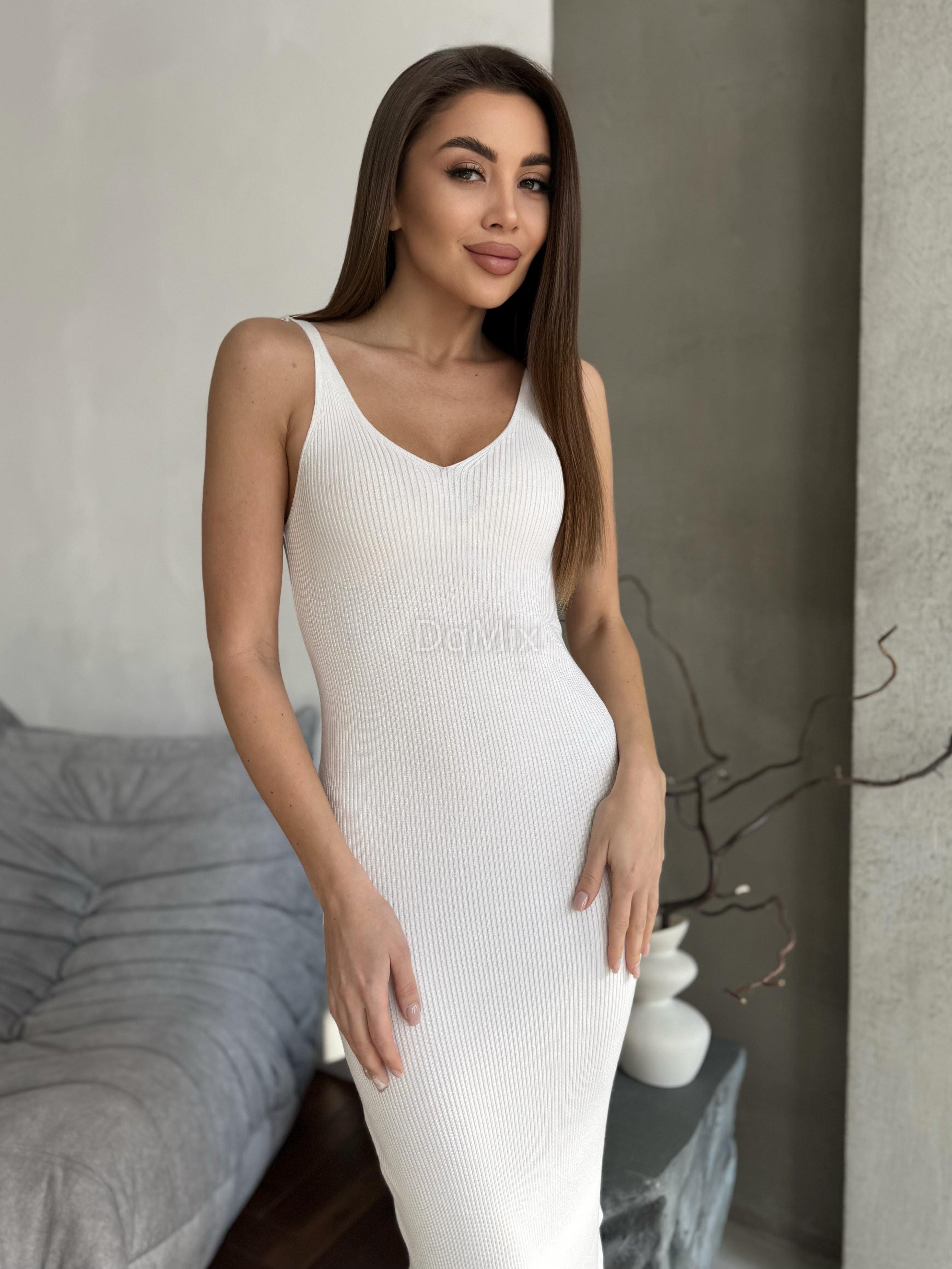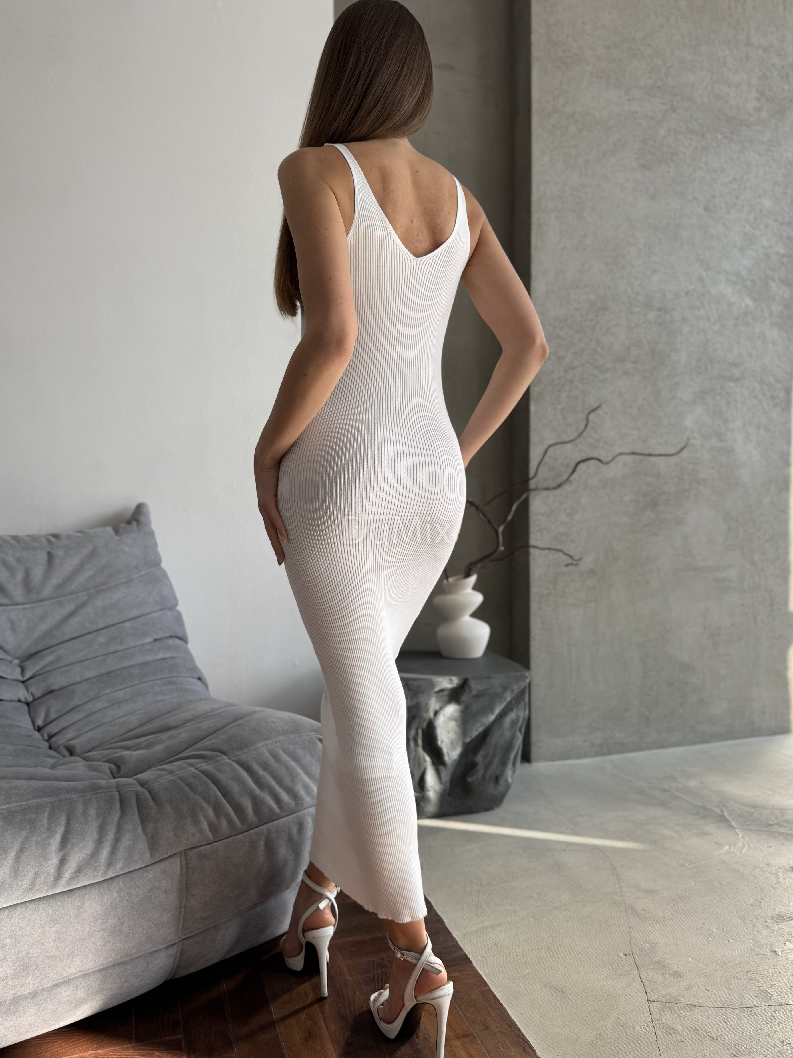 Біла силуетна сукня із преміум віскозної нитки #92541