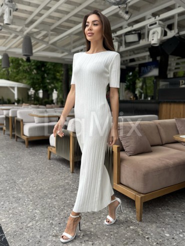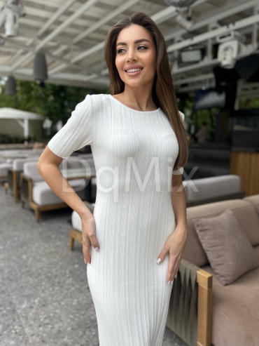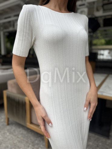 Біла сукня довге міді , вертикальна вʼязка із коротким рукавом #14018