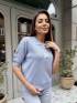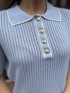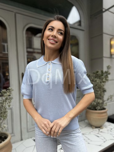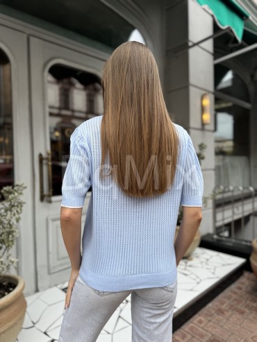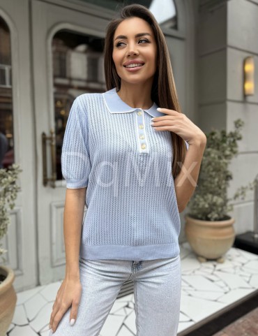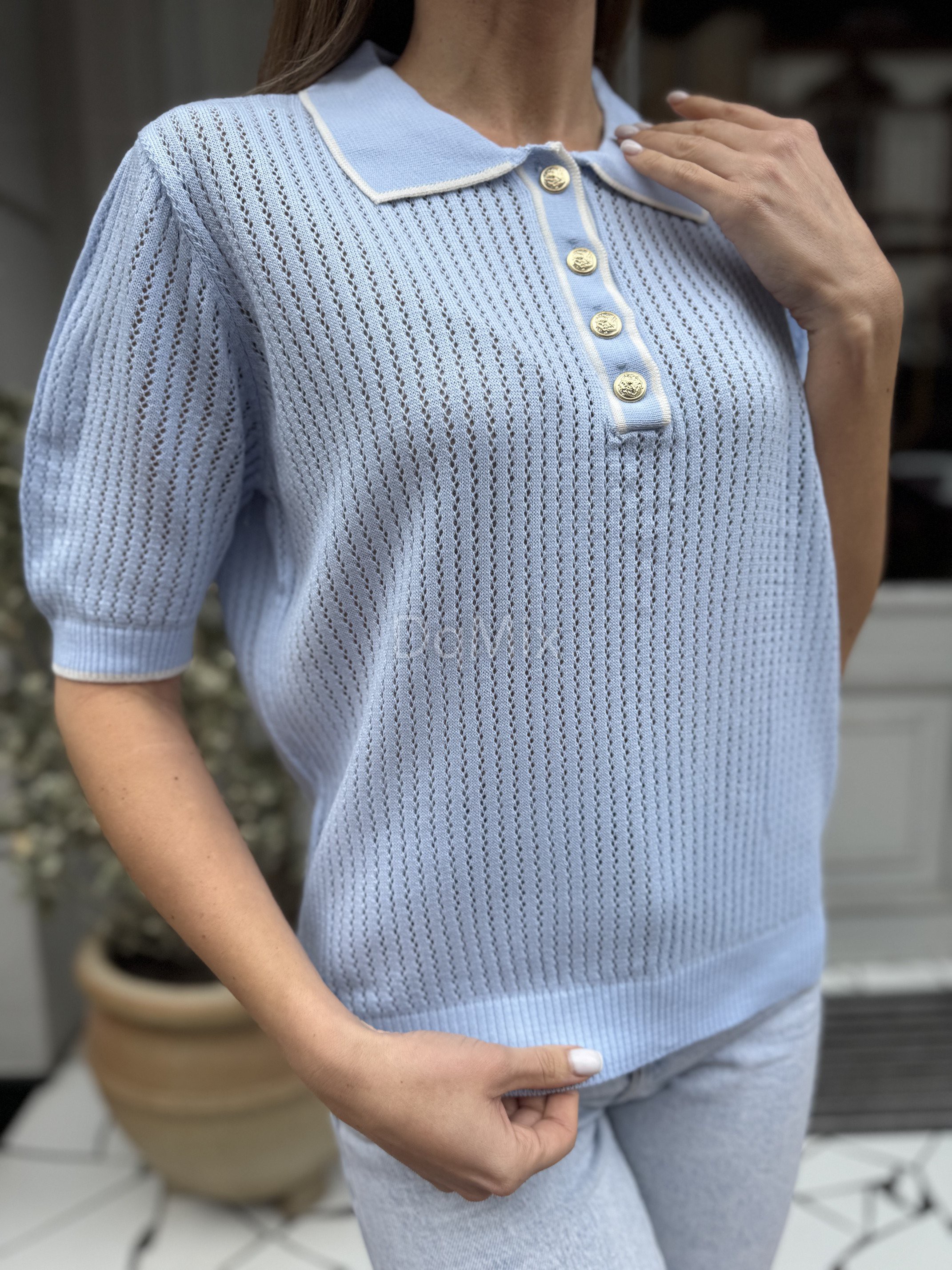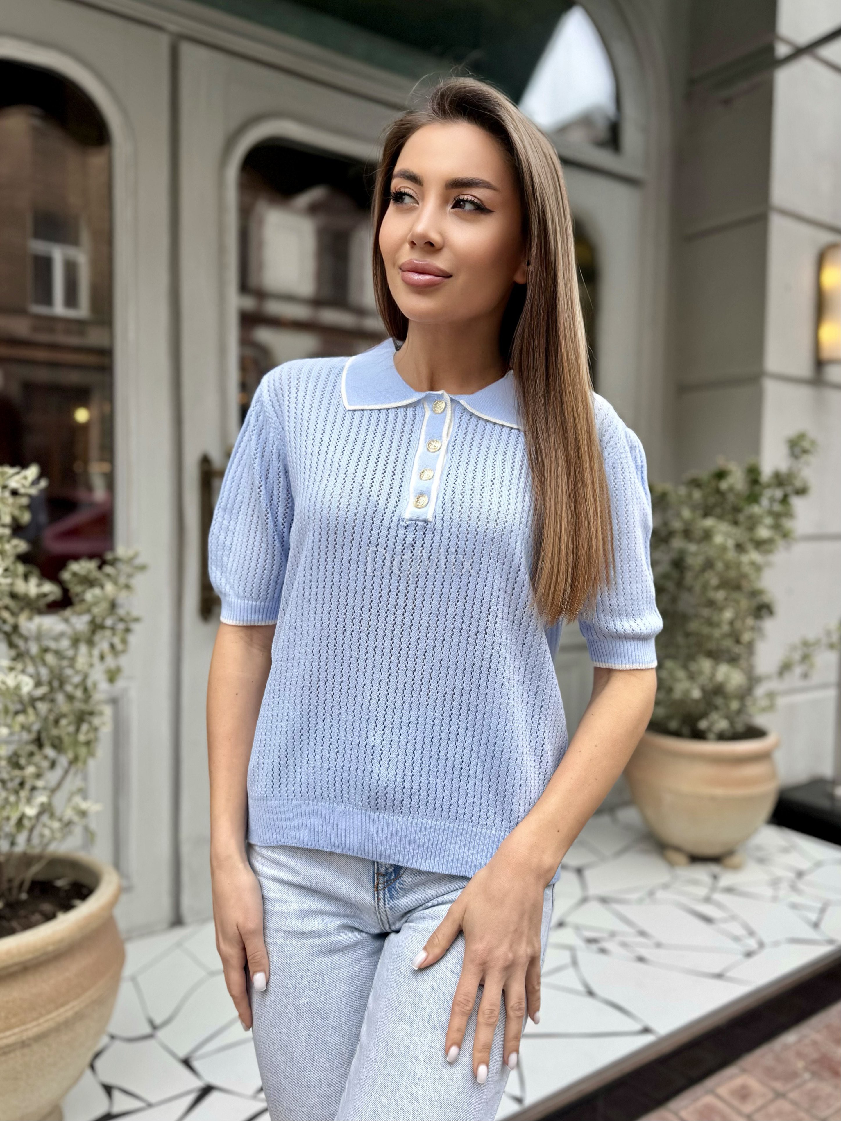 Блакитна кофтинка ажурна вʼязка із комірцем на ґудзиках #14037