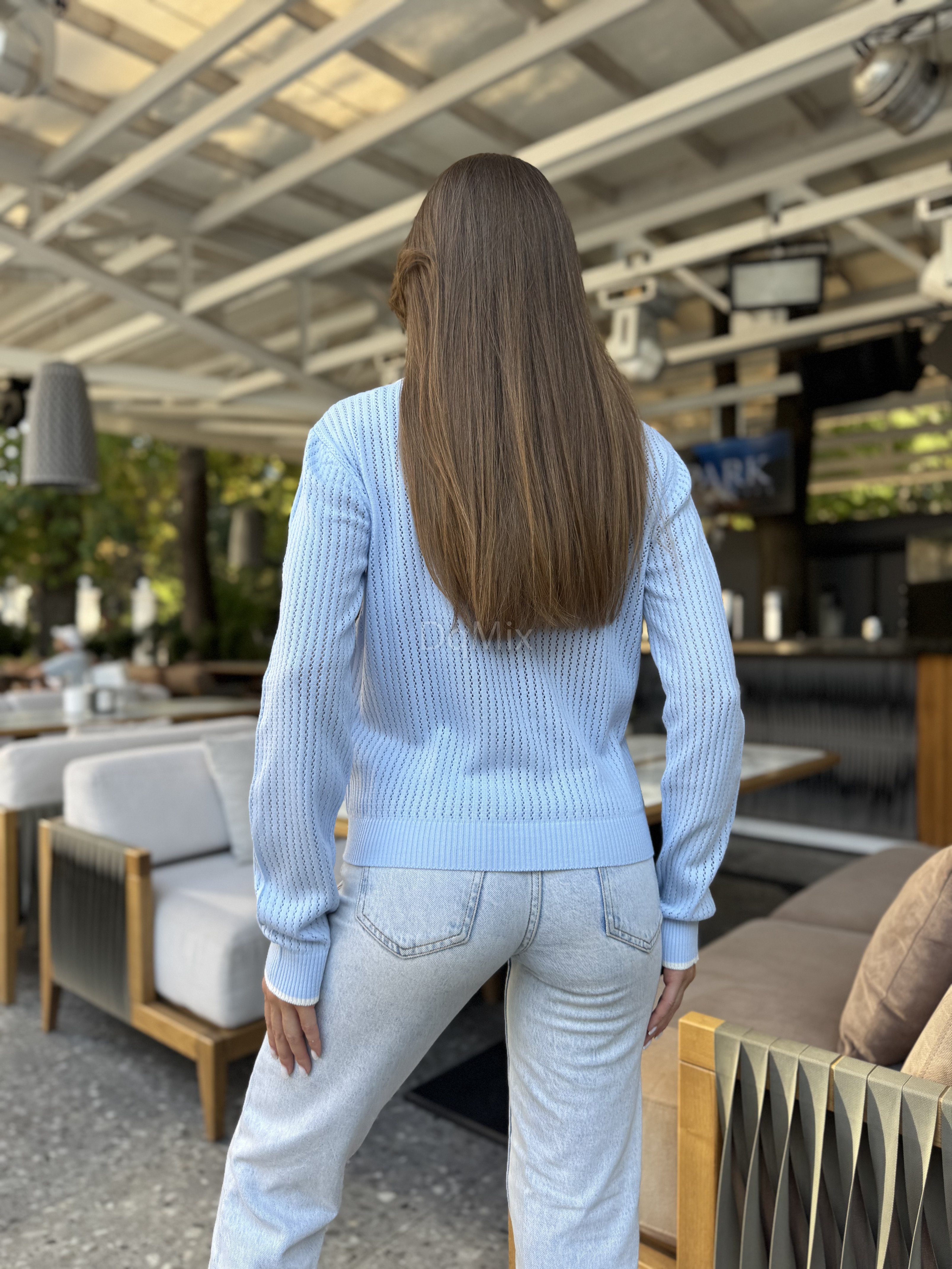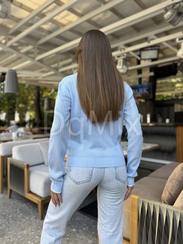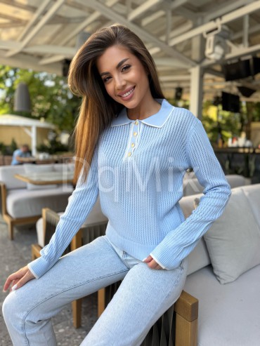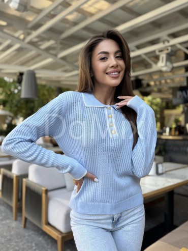 Блакитна кофтинка з комірцем на ґудзиках #14042