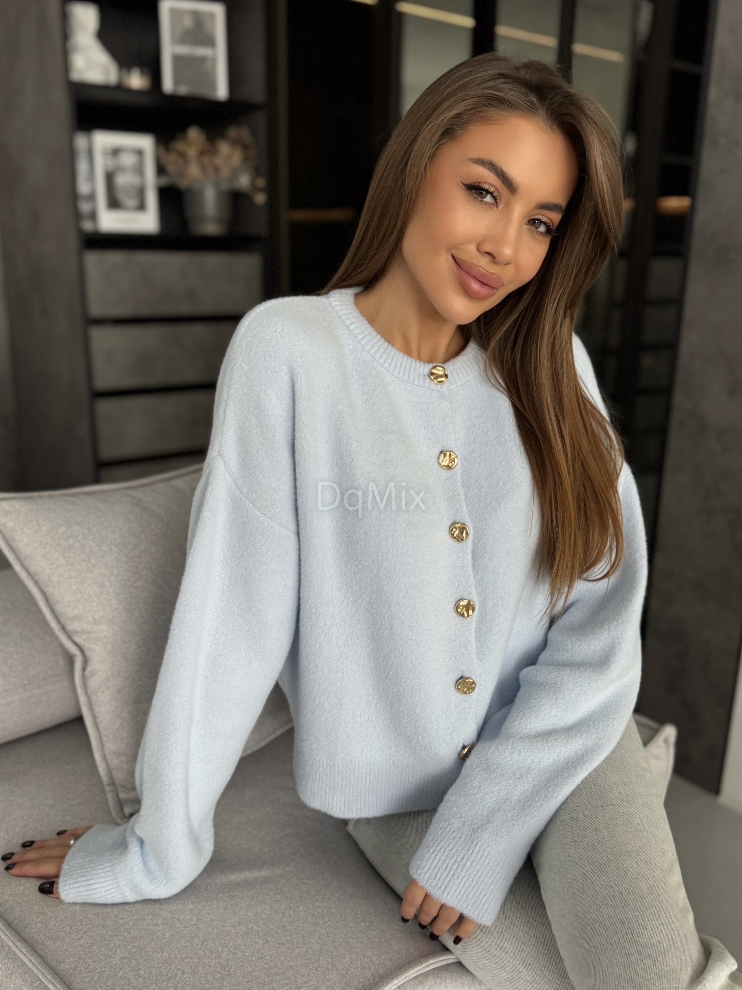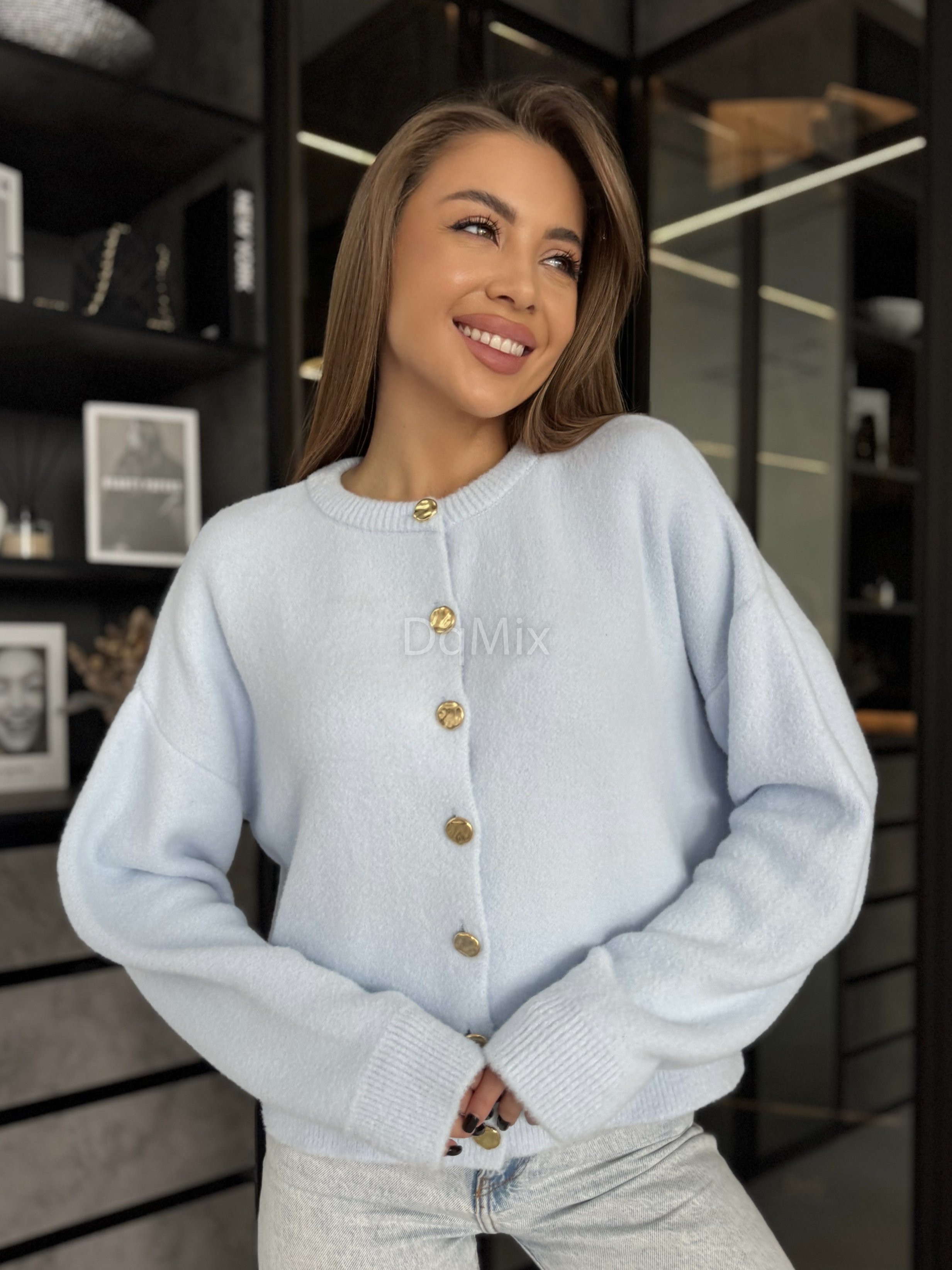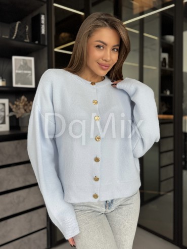 Блакитний кардиган на ґудзиках із пружної зефірної ниточки #6956