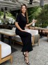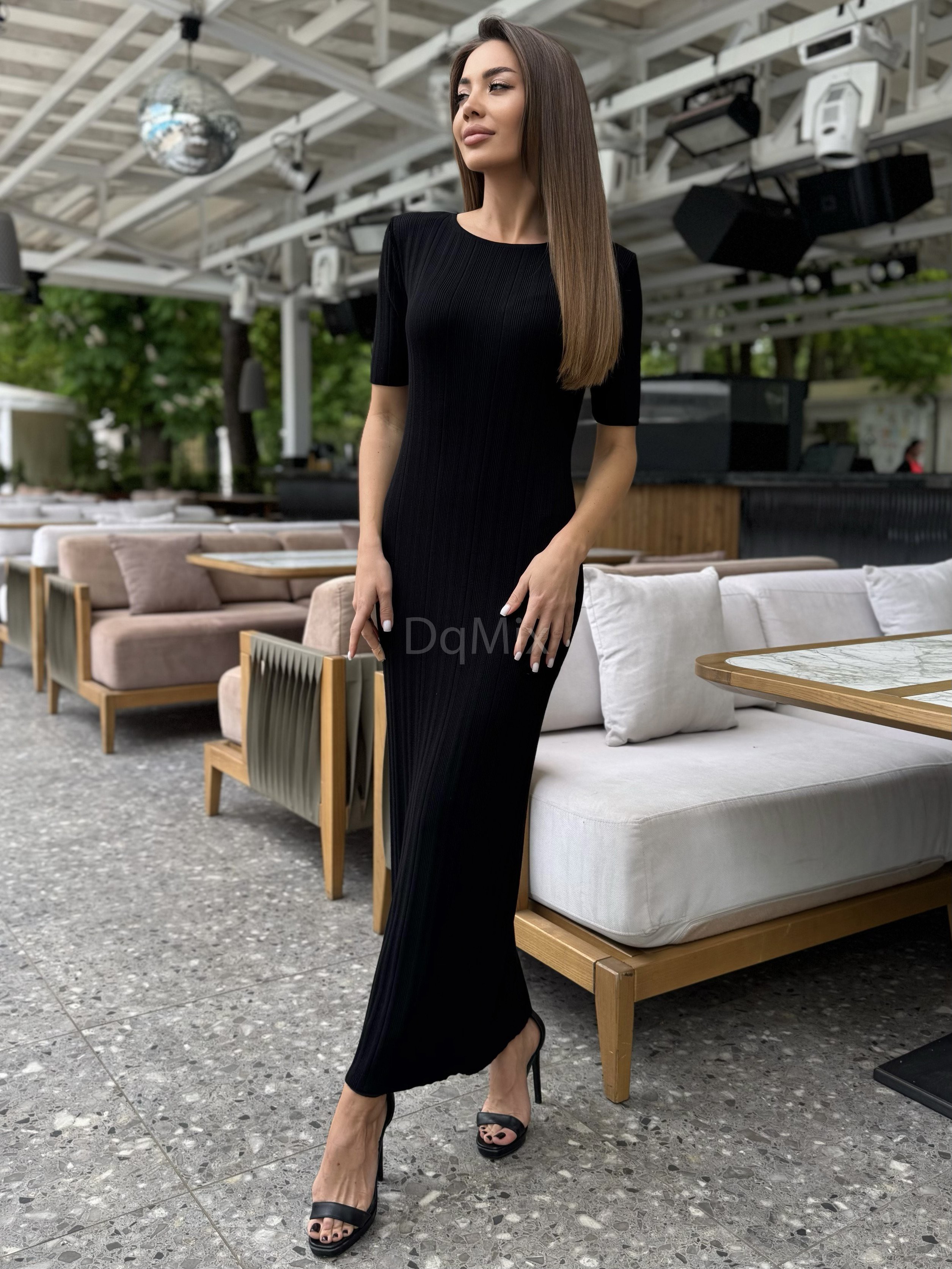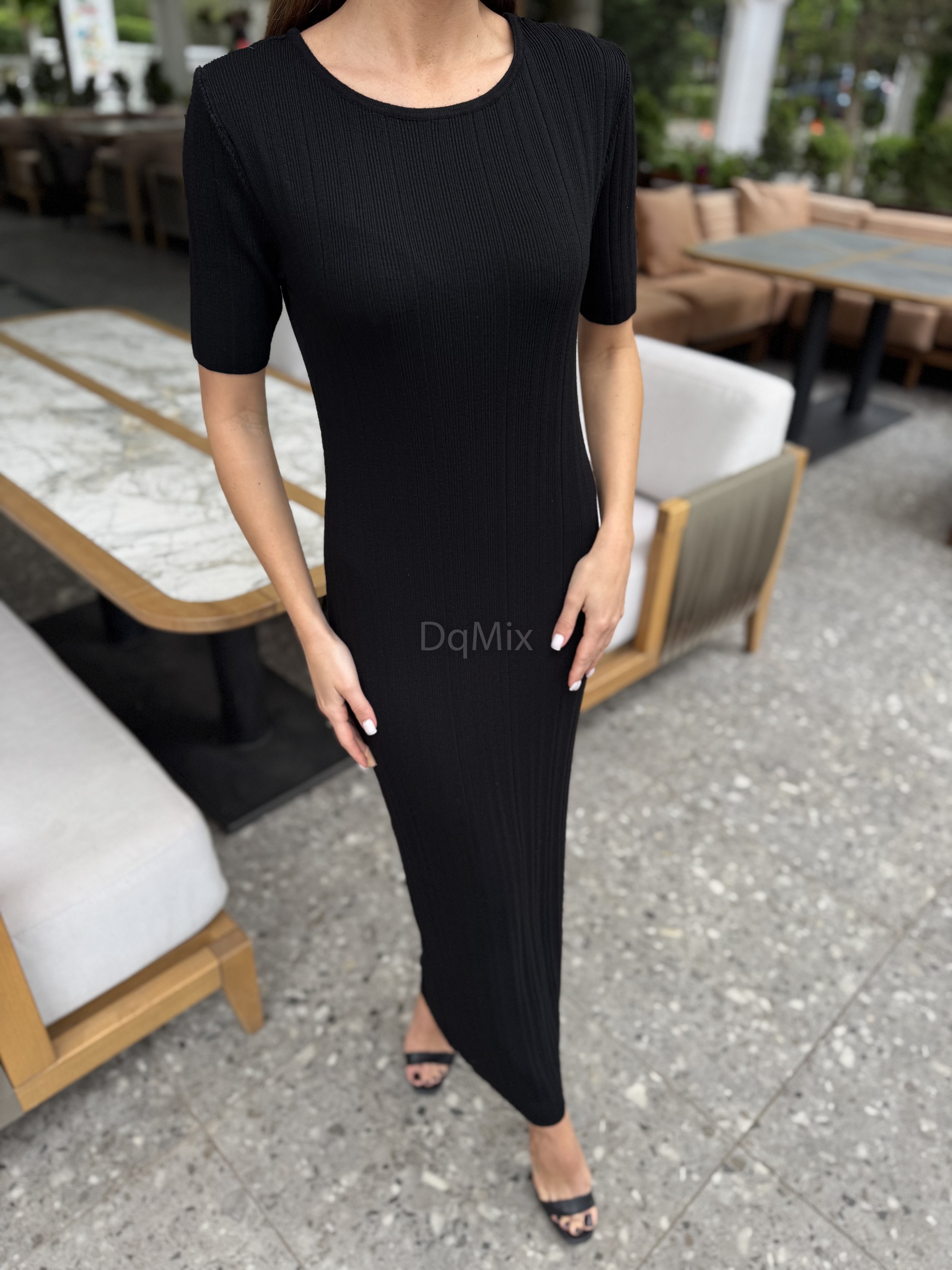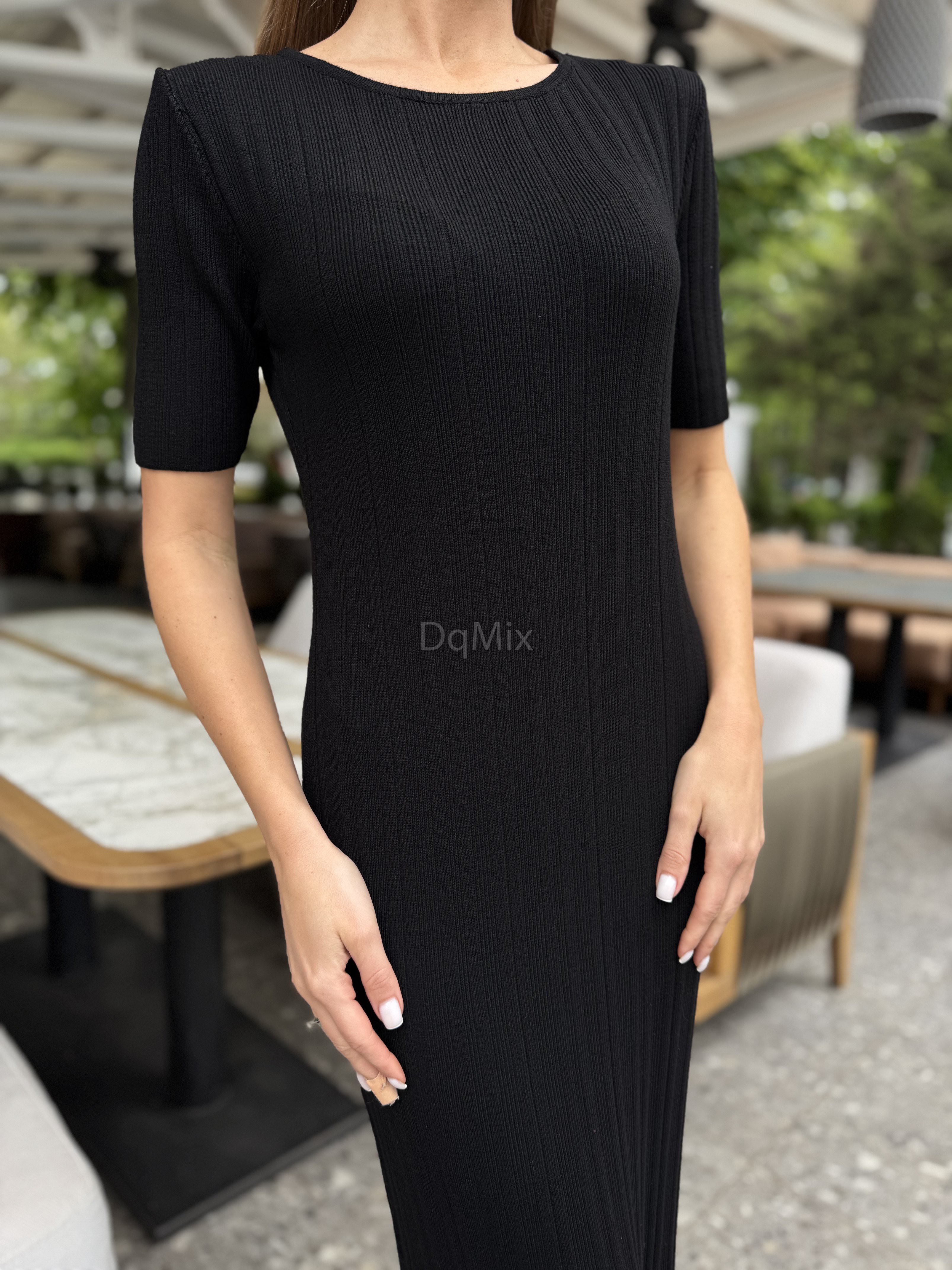 Чорна сукня довге міді , вертикальна вʼязка із коротким рукавом #14018