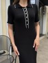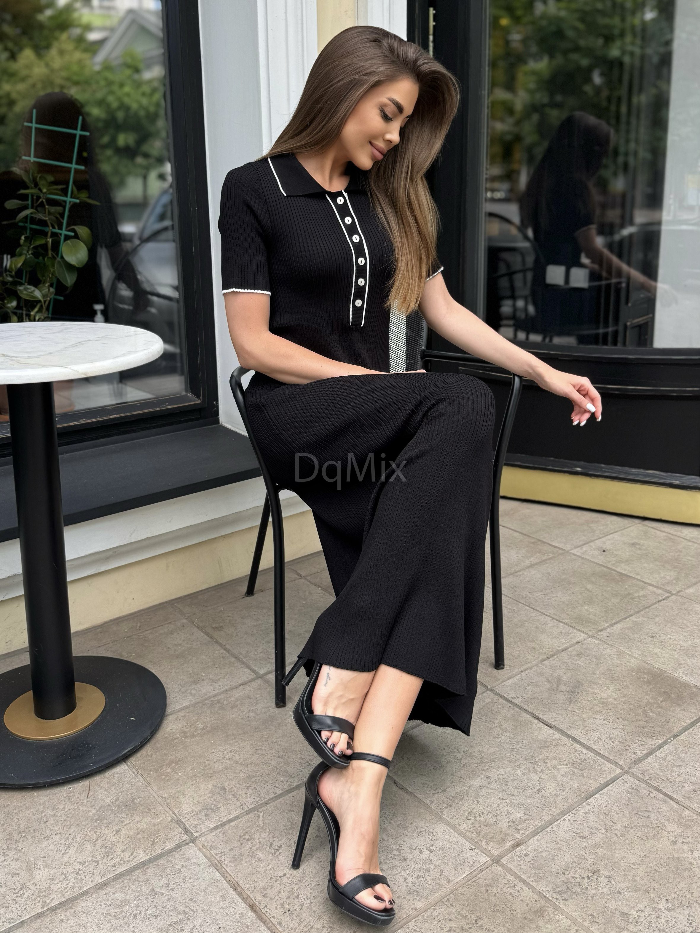 Чорна сукня преміум ниточки , гарне довге міді , з відкладним комірцем на ґудзиках #14003