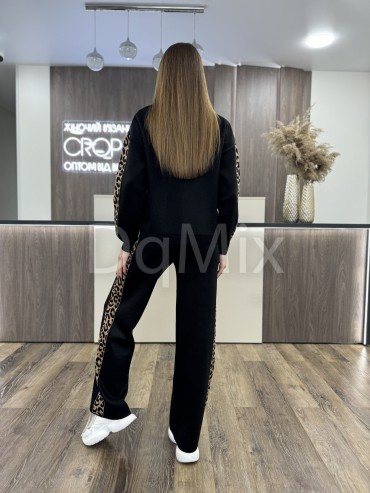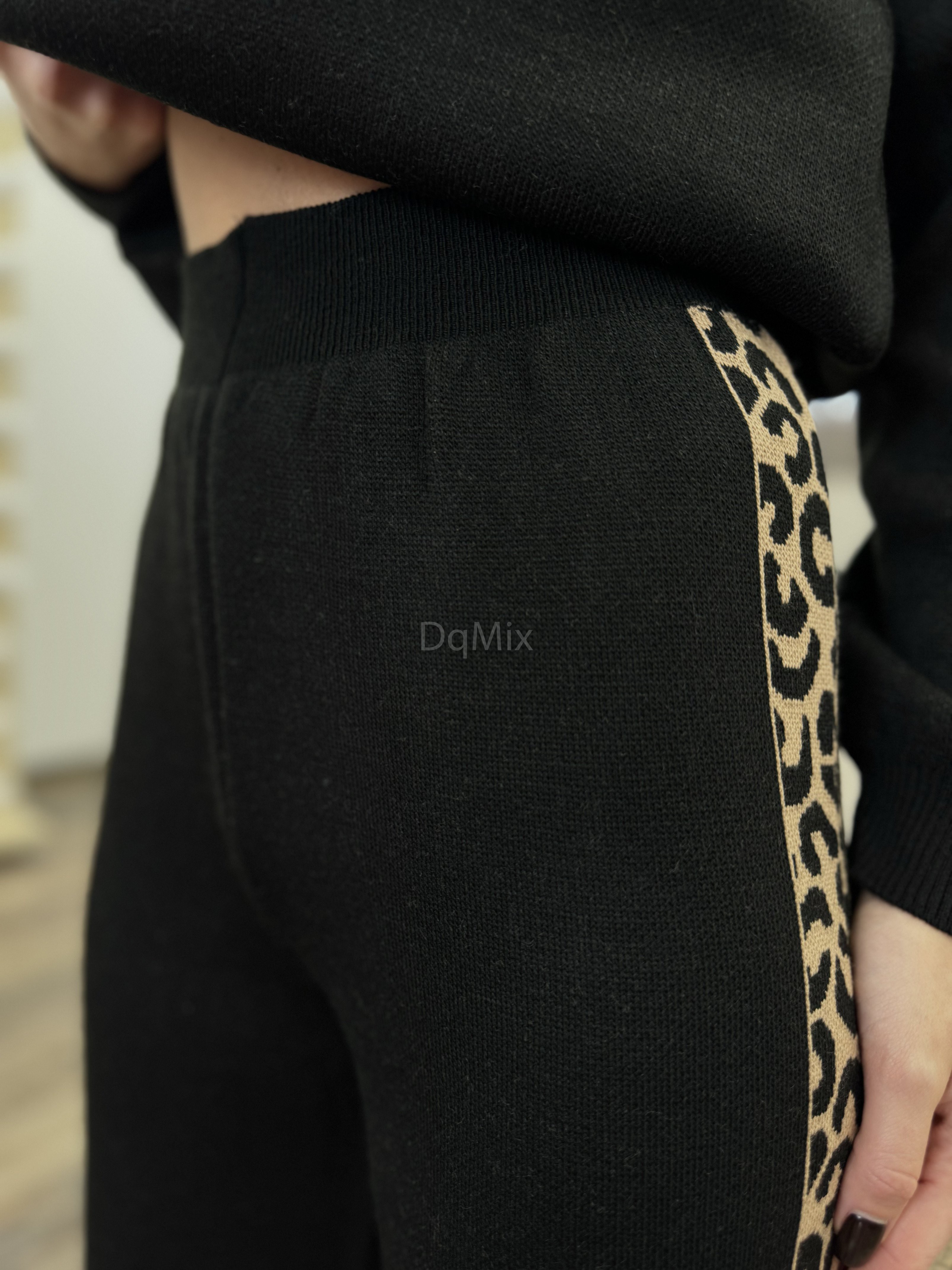 Чорний базовий , однотонний костюм із лаконічними вставками лео #10988
