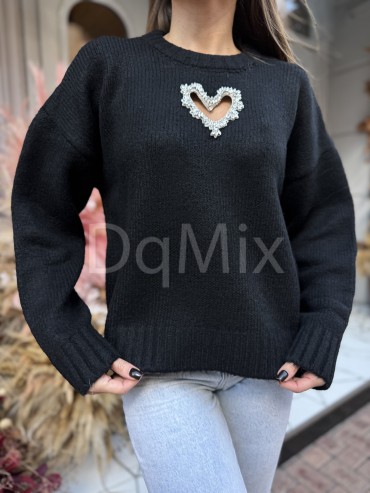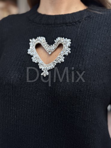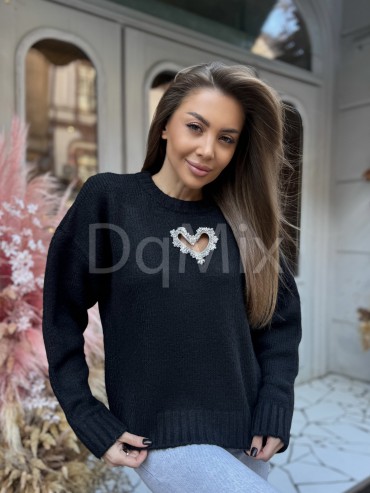 Чорний светрик із декоративним серденьком , на грудях #92598