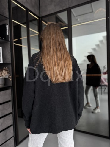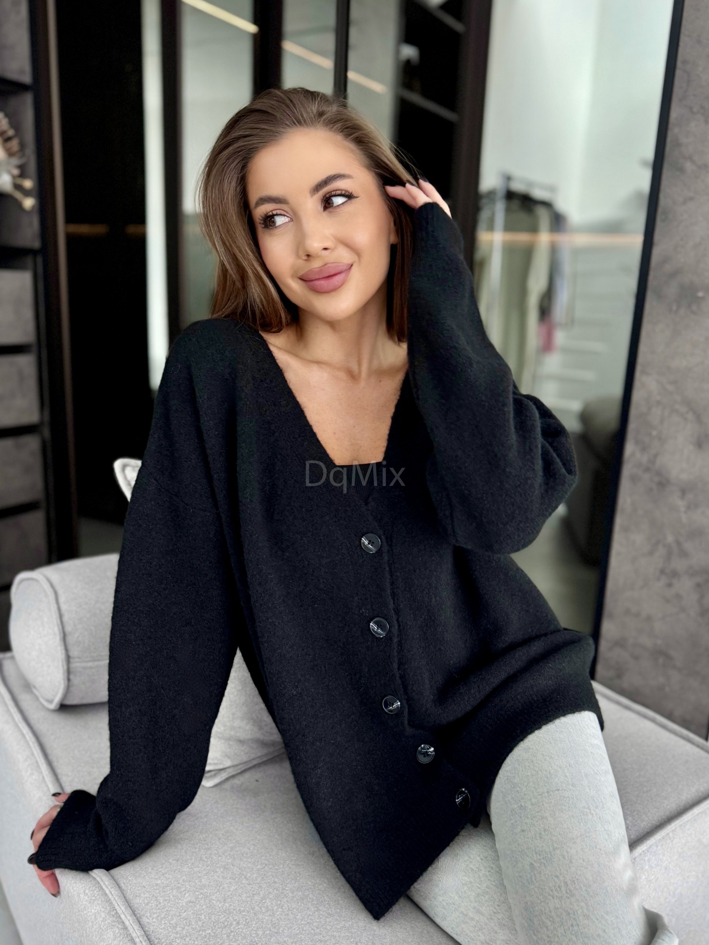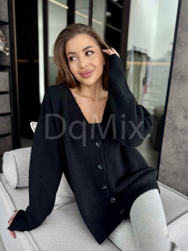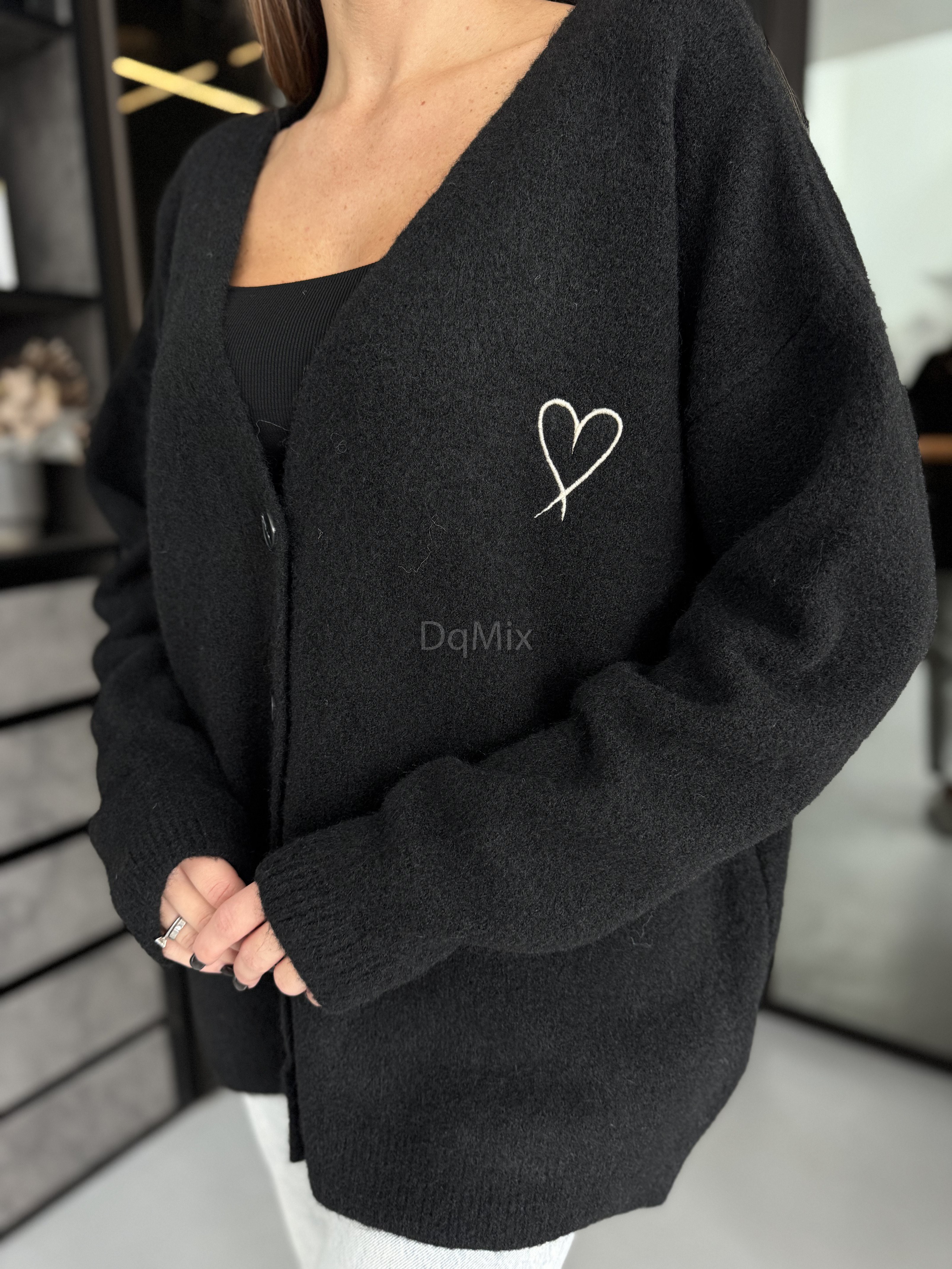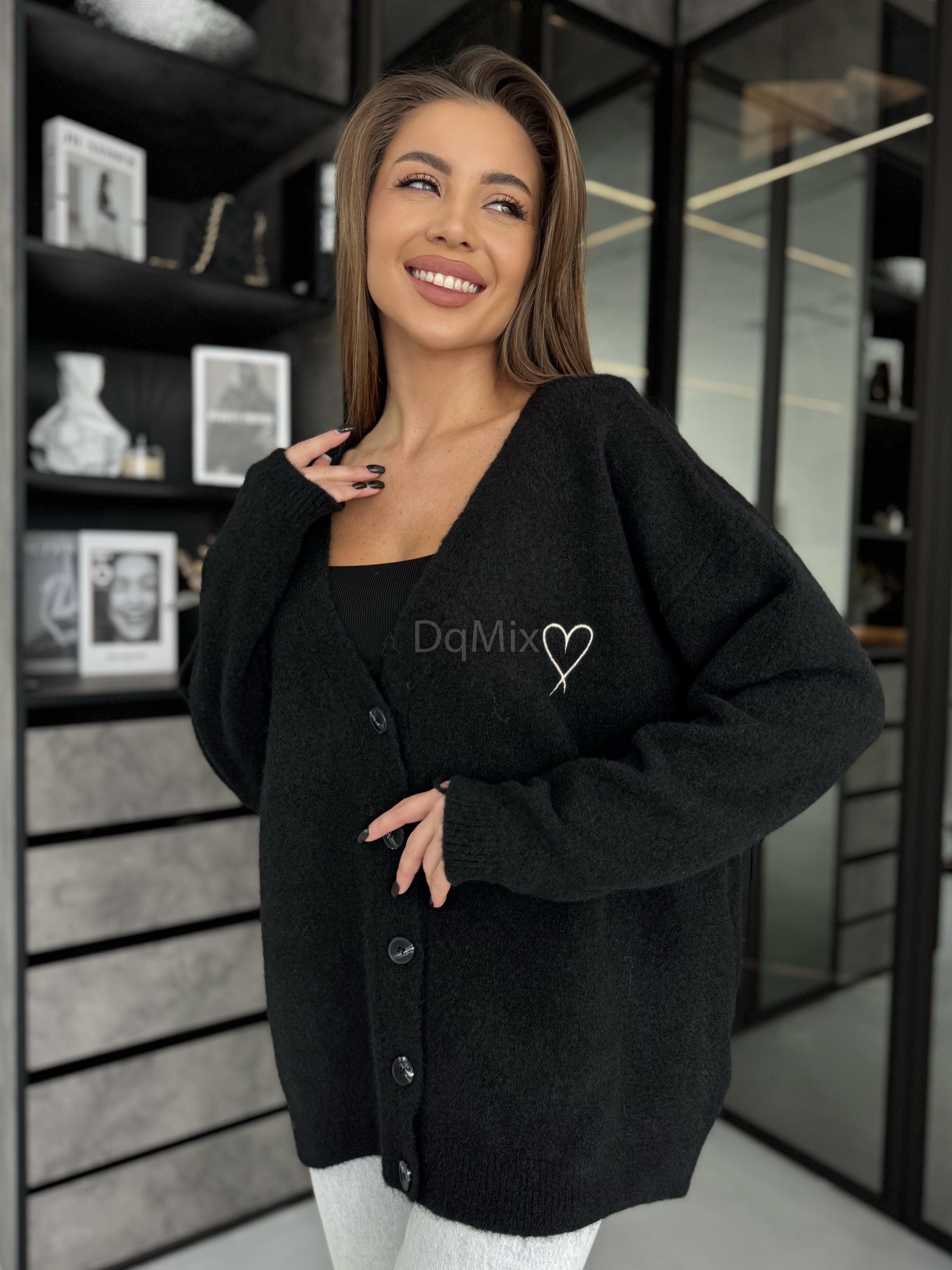 Чорний теплий кардиган на ґудзиках , вишите середенько #6953