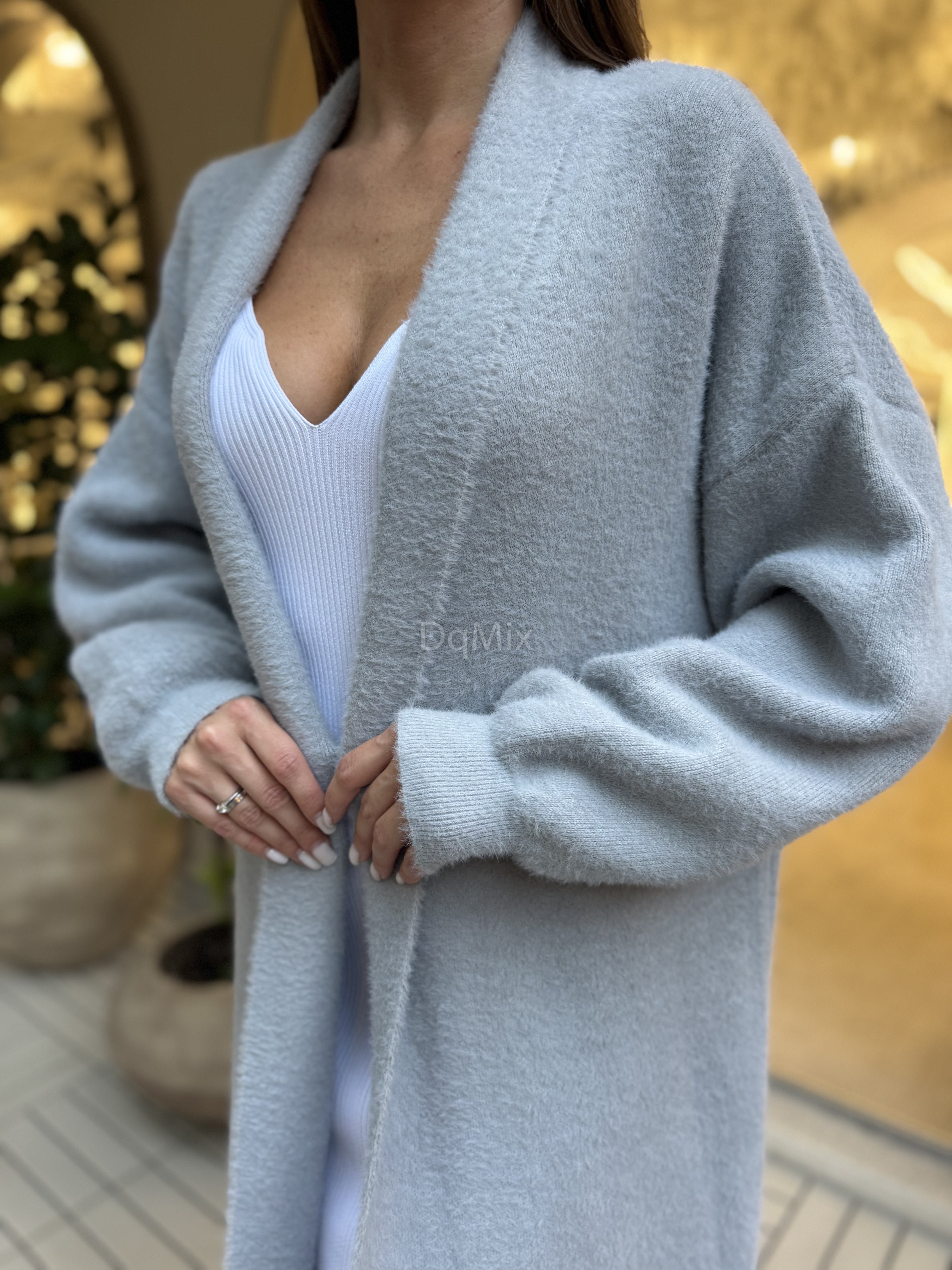 Cірий подовжений Кардиган (травичка щільна цупка якісна) прямого вільного крою #92476