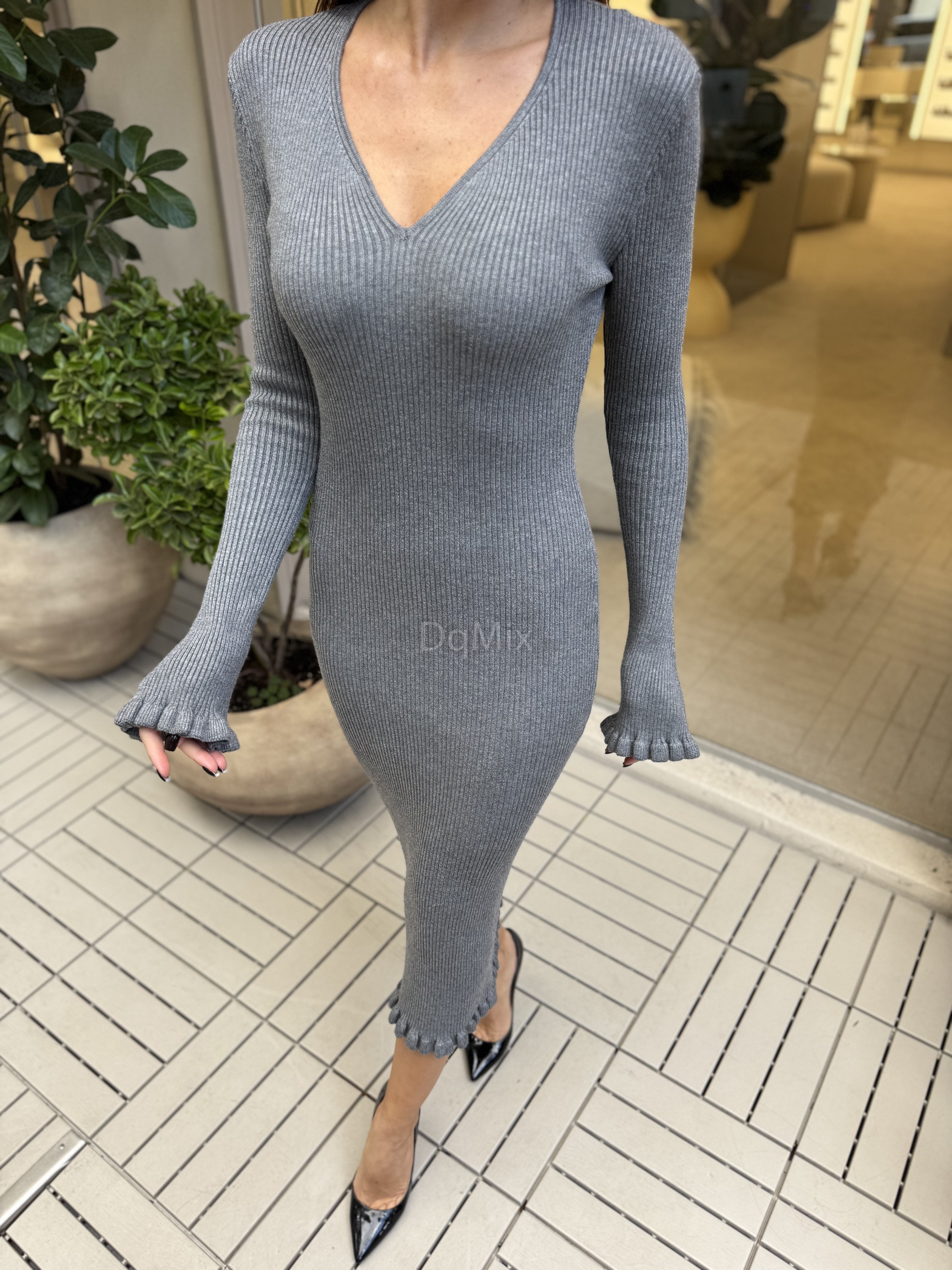Граційна , романтична сукня з витонченим декольте у сірому кольорі #14047