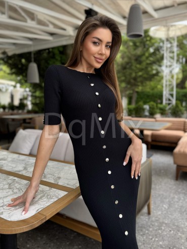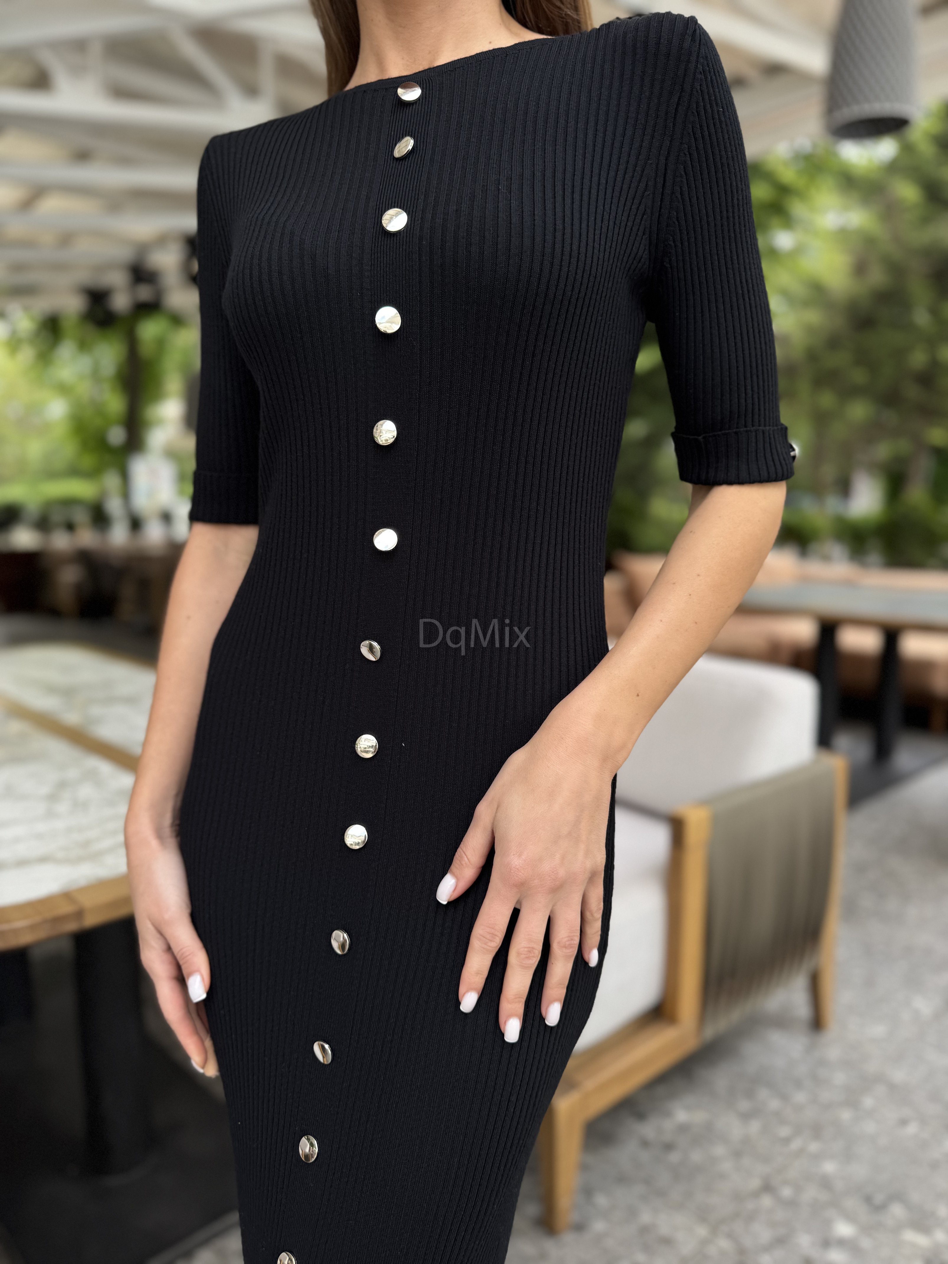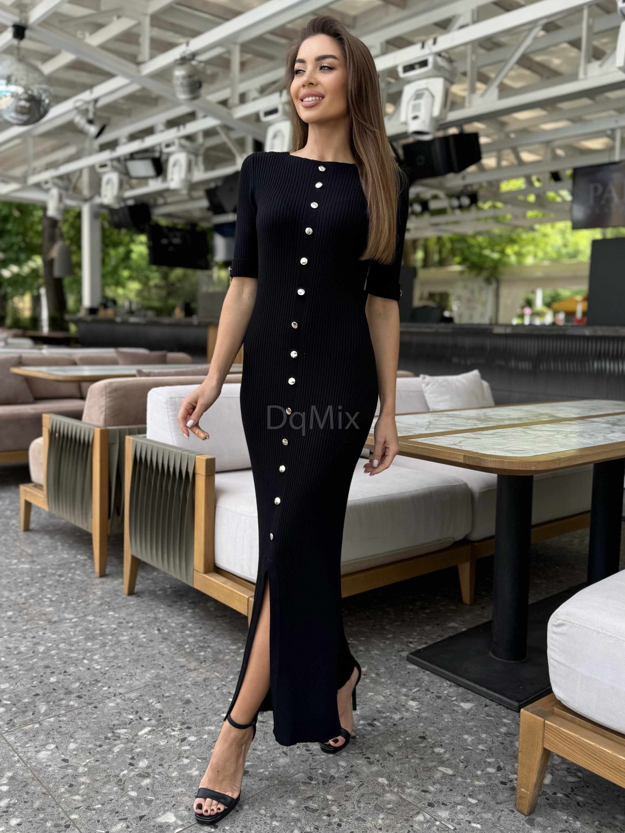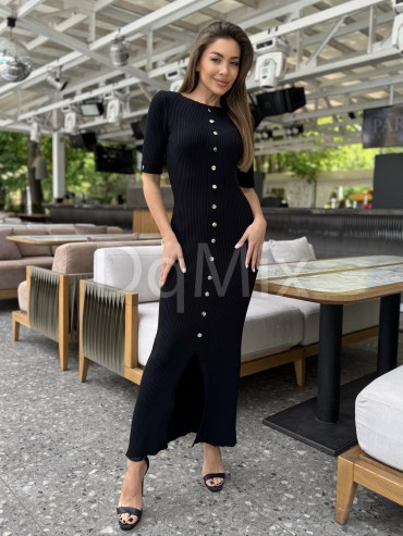 Ідеальна чорна сукня максі , розмір спереду , має трішки кльош , декорована ґудзиками (не робочі) #93355