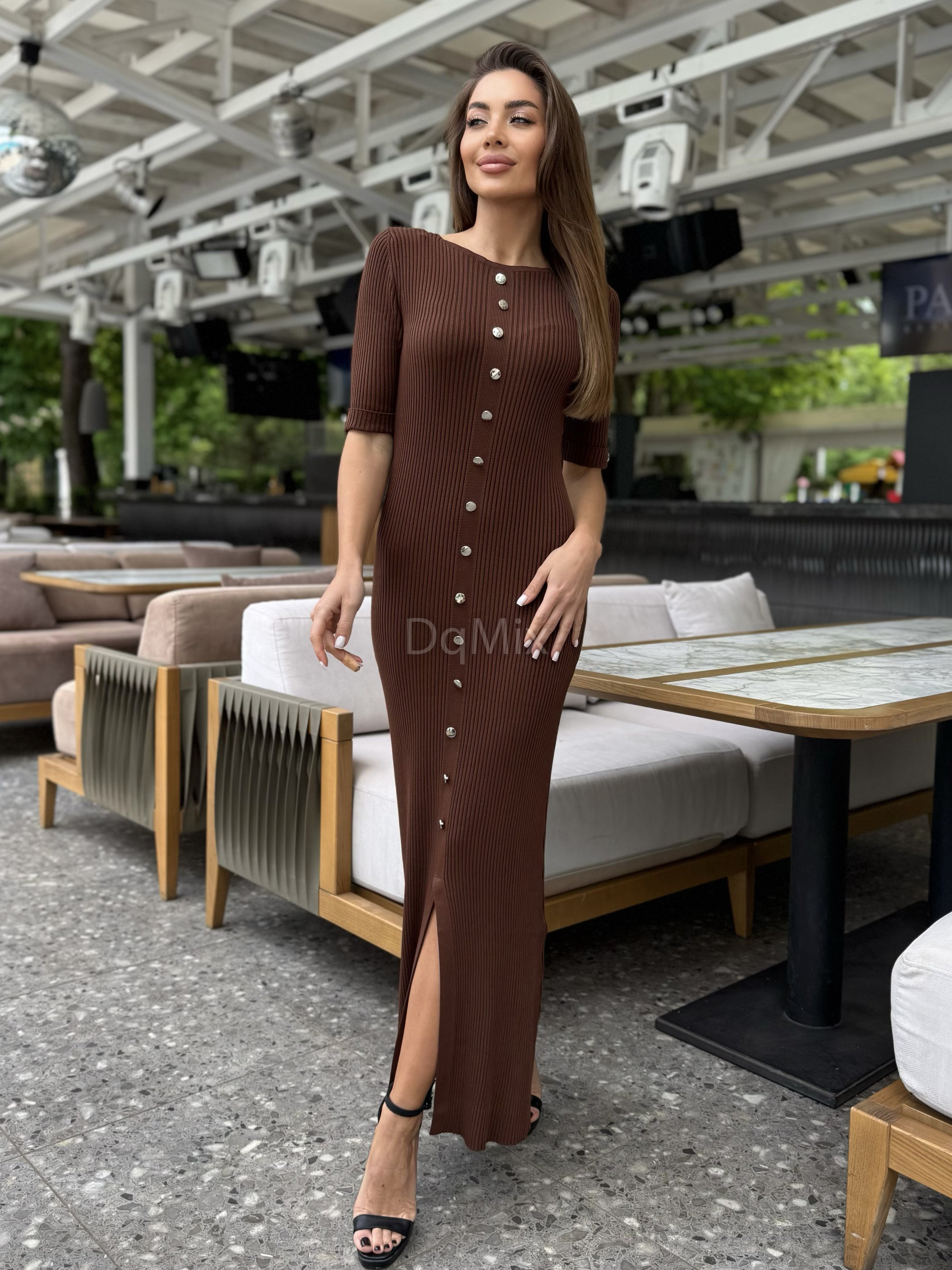 Ідеальна шоколадна сукня максі , розмір спереду , має трішки кльош , декорована ґудзиками (не робочі) #93355