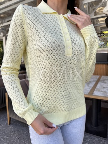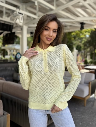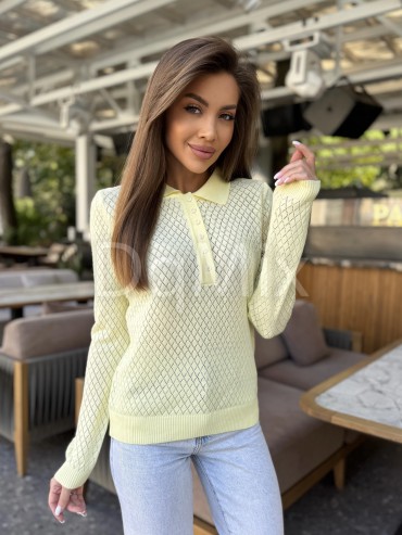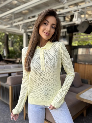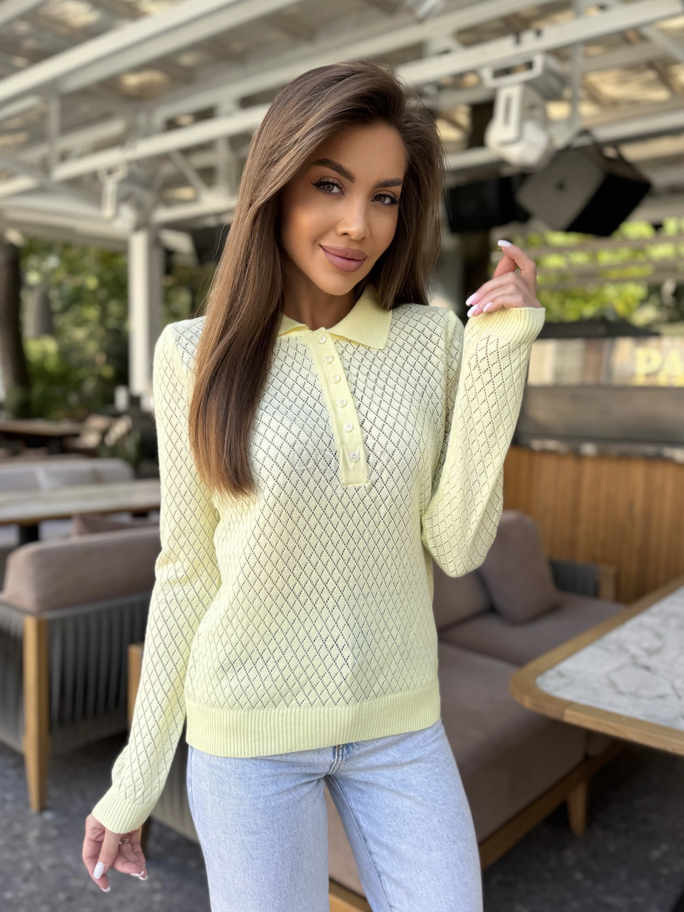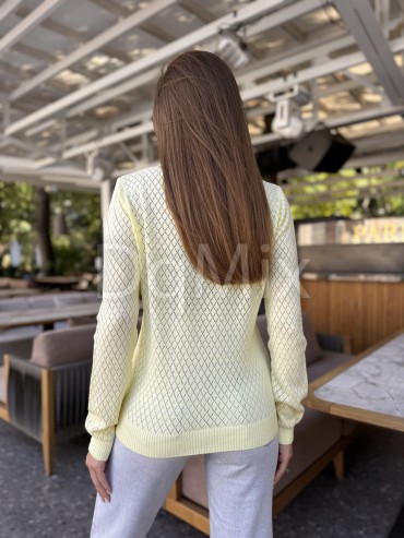 Кофтинка геометричне плетіння з комірцем на ґудзиках #14043