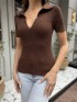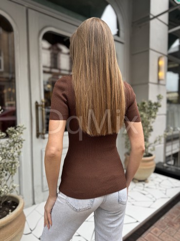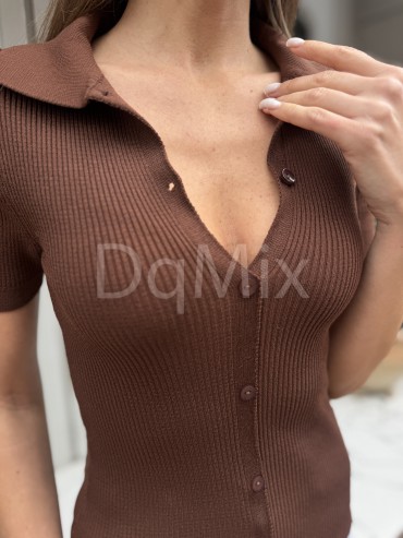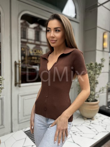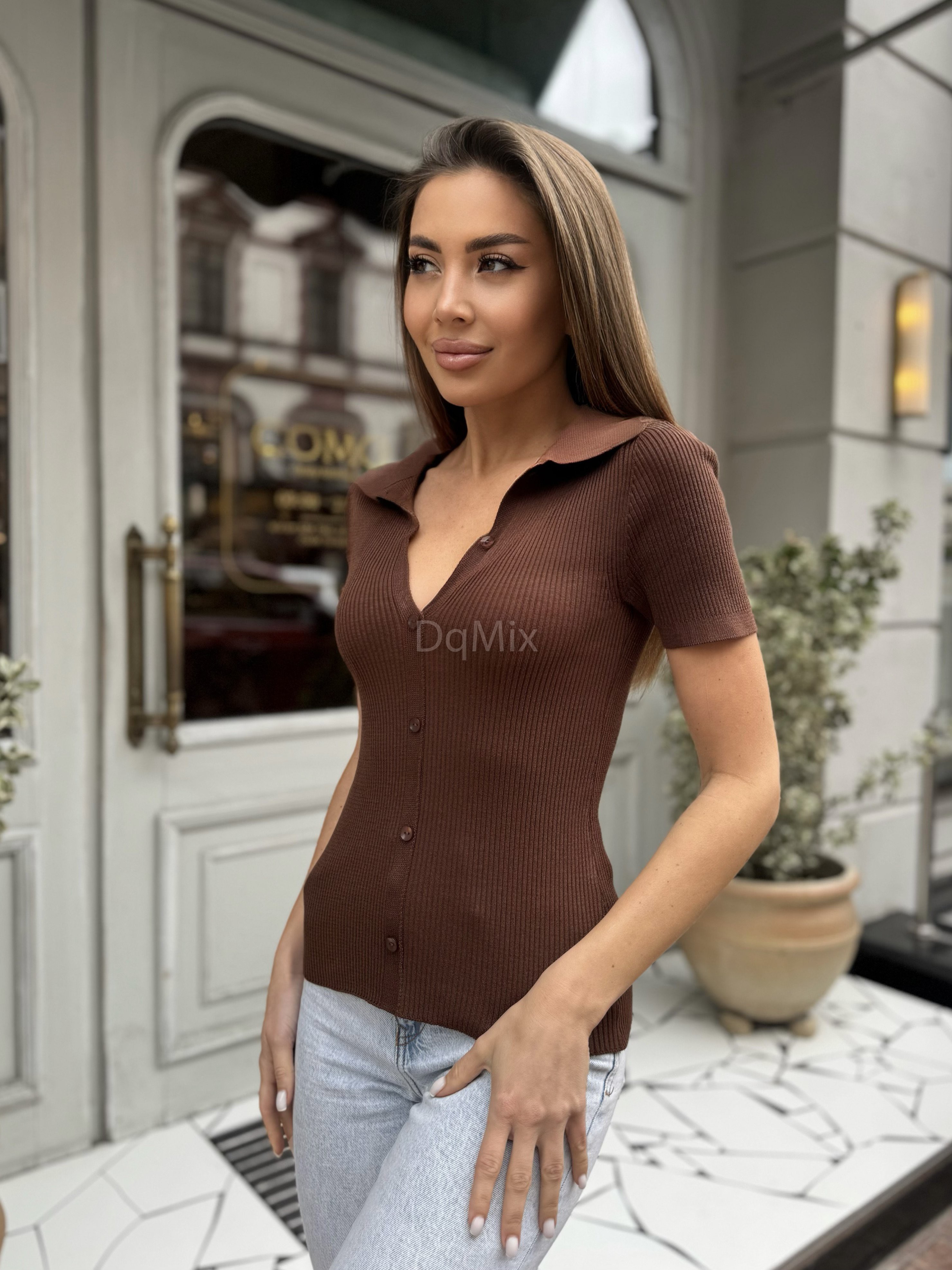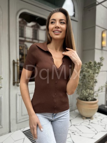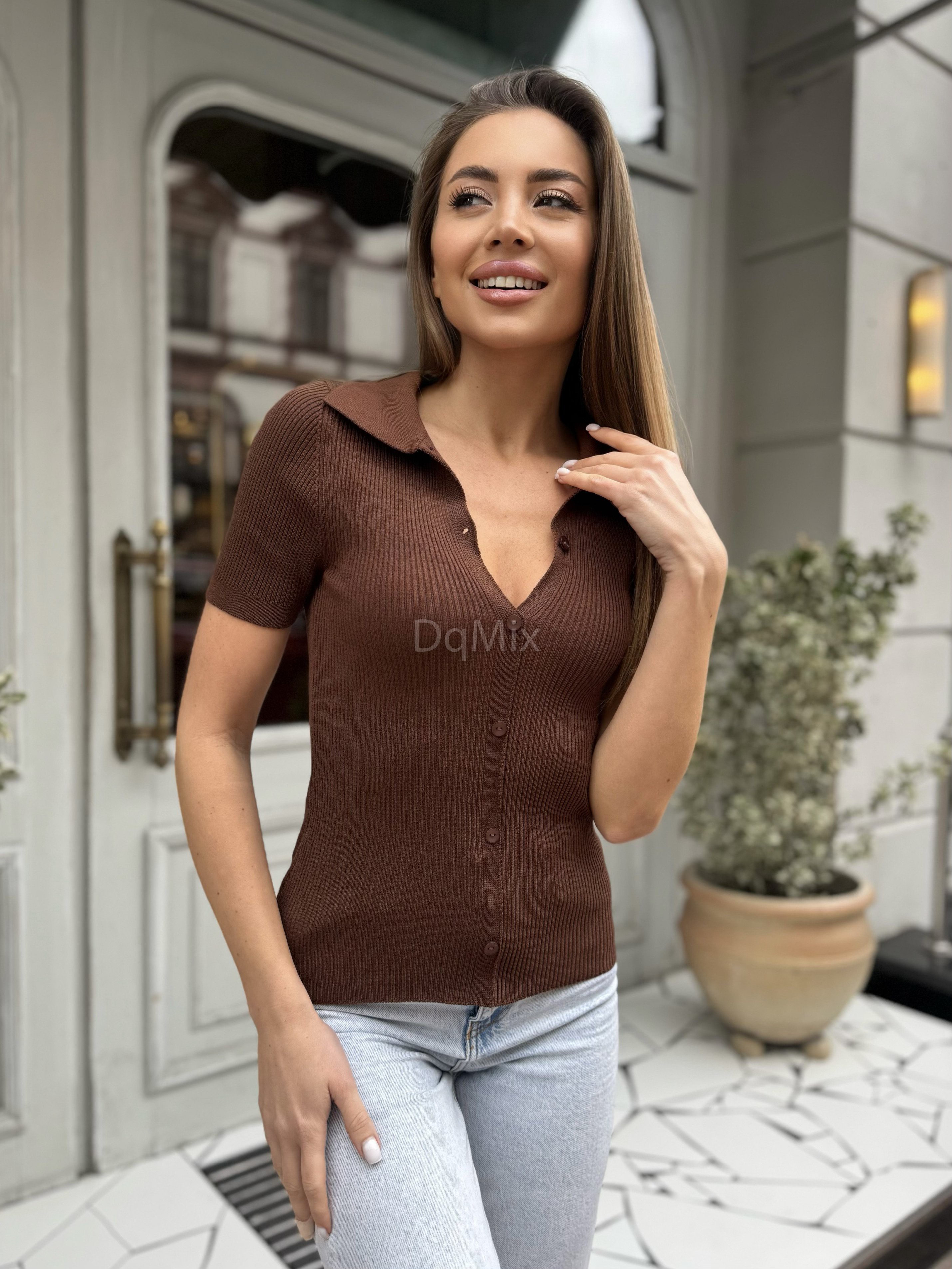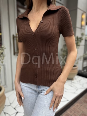Кофтинка на ґудзиках із комірцем у шоколадному кольорі #97004