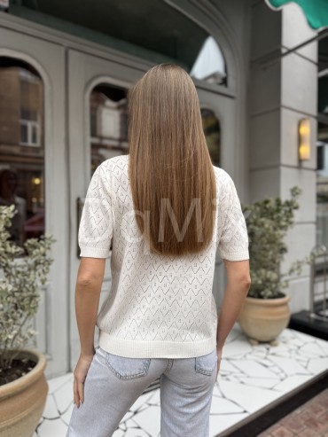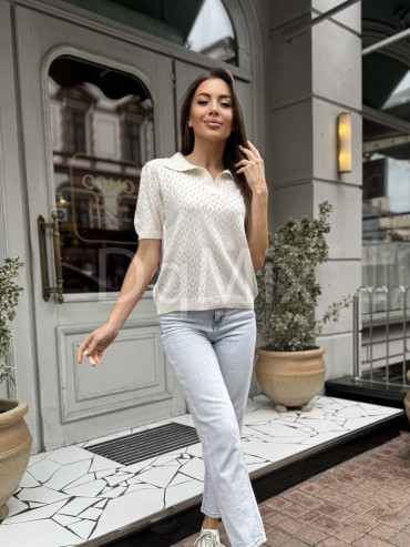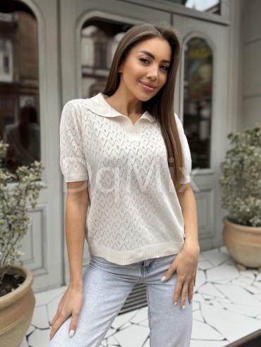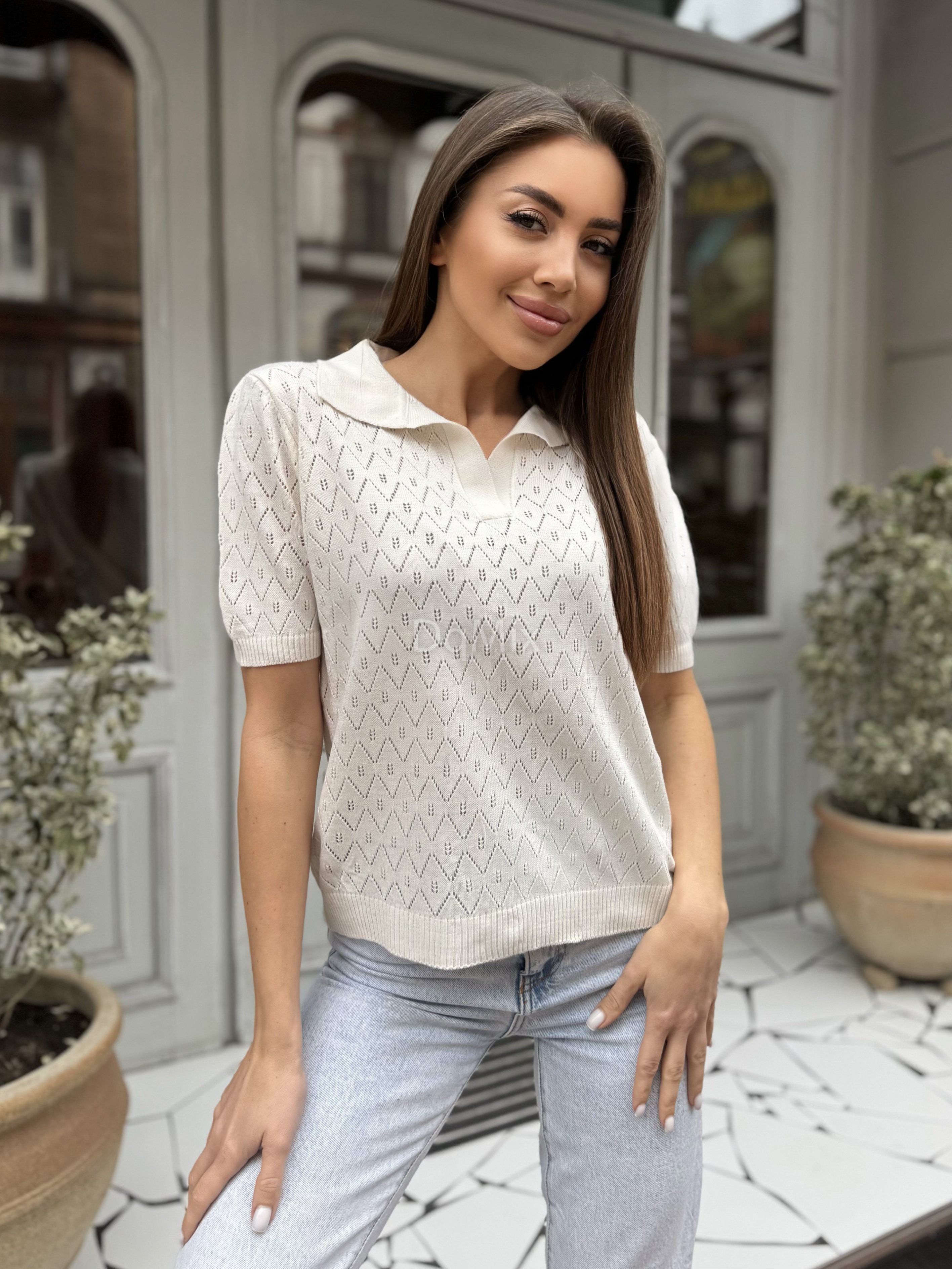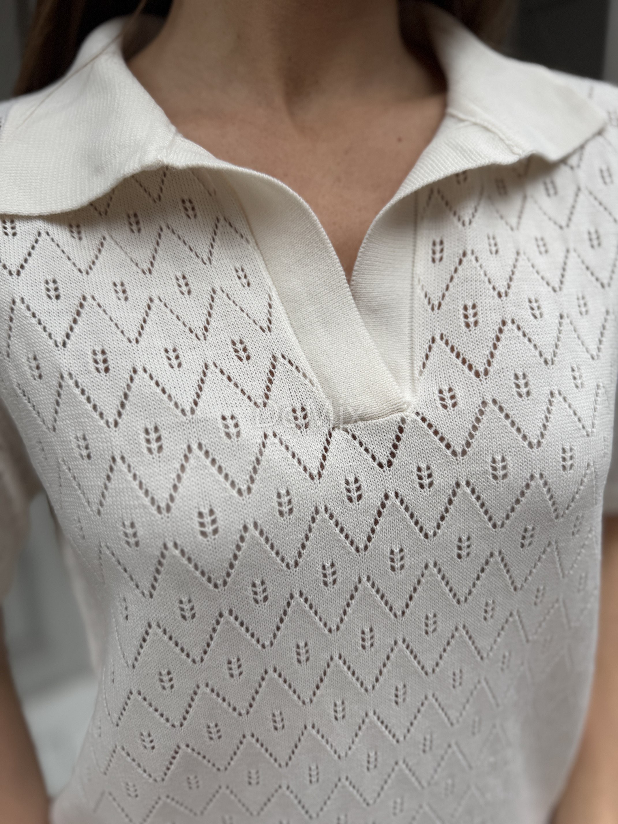 Молочна кофтинка геометричні візерунки із комірцем #14036