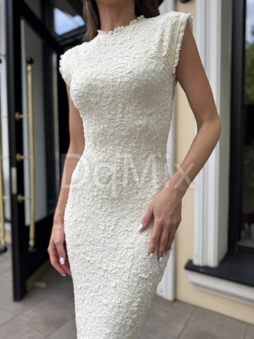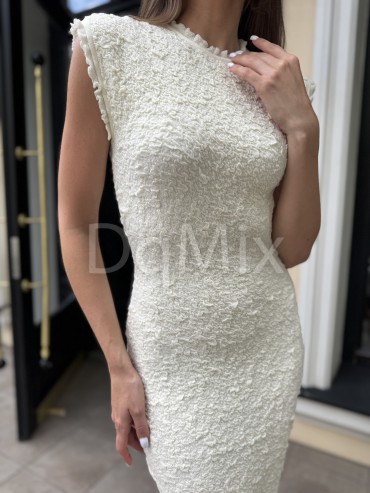 Молочна силуетна сукня «вауефект» , ніжна структурована жатка , преміум віскоза #14014