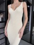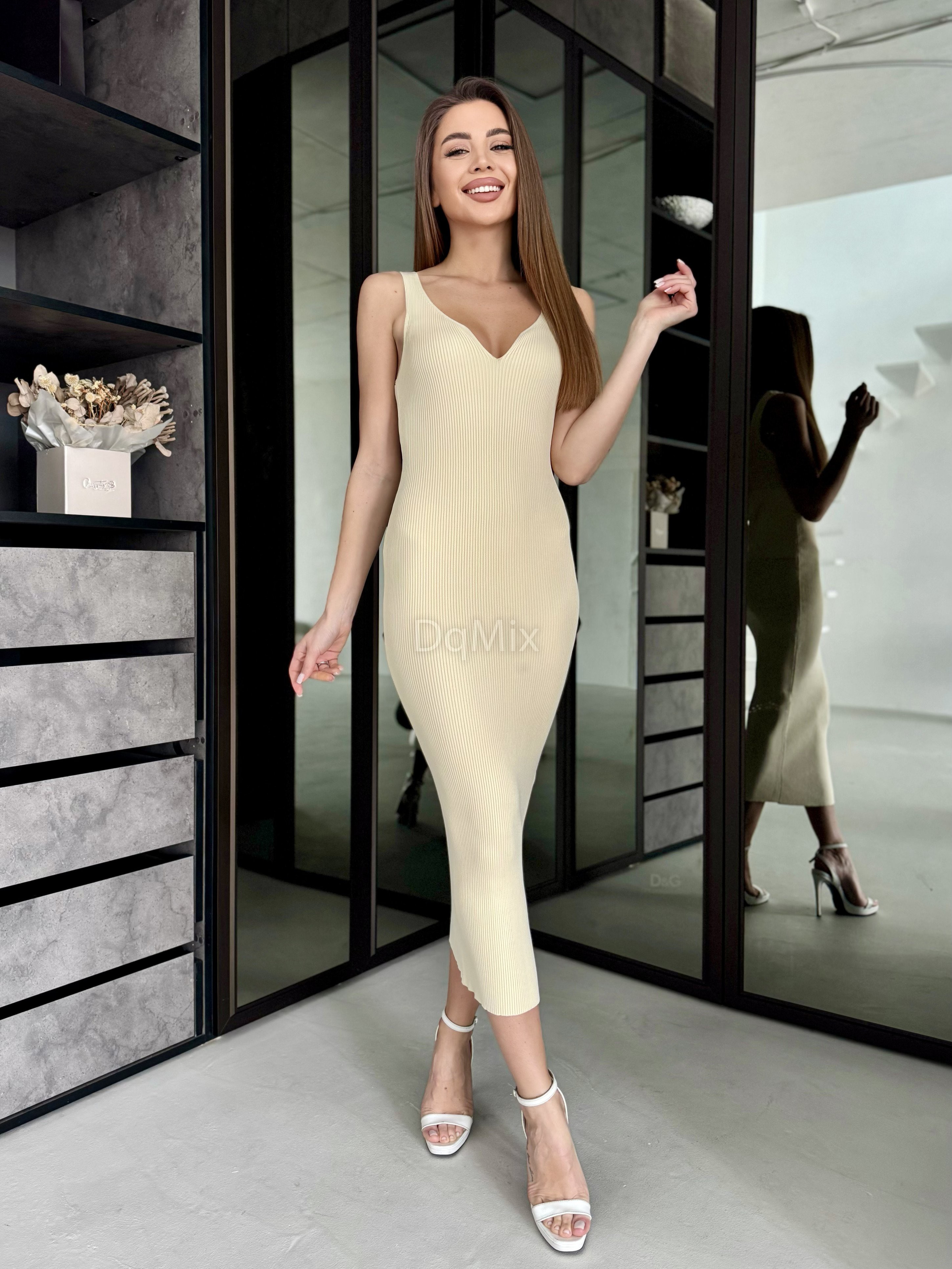 Молочна сукня міді з вирізом #91798
