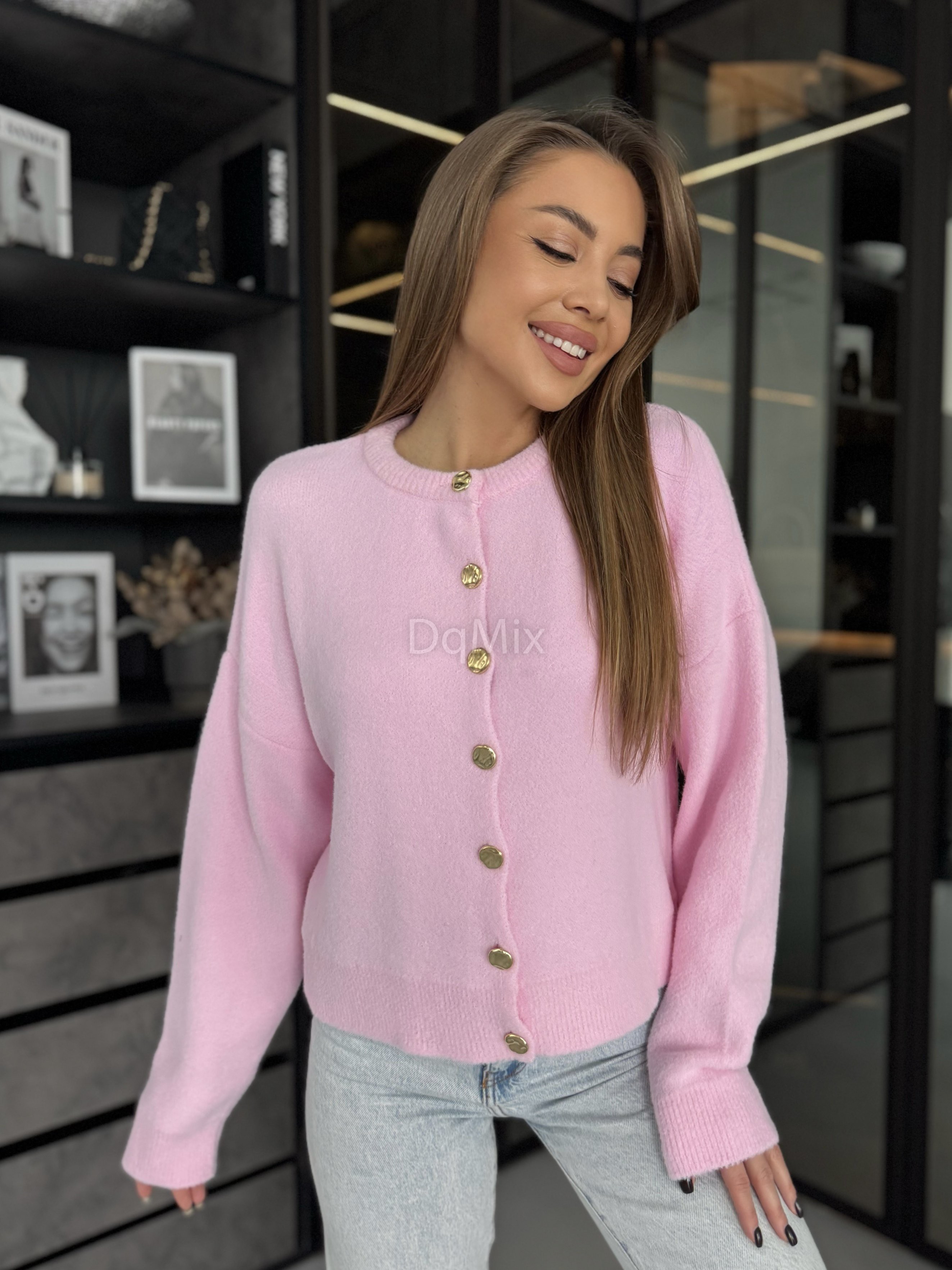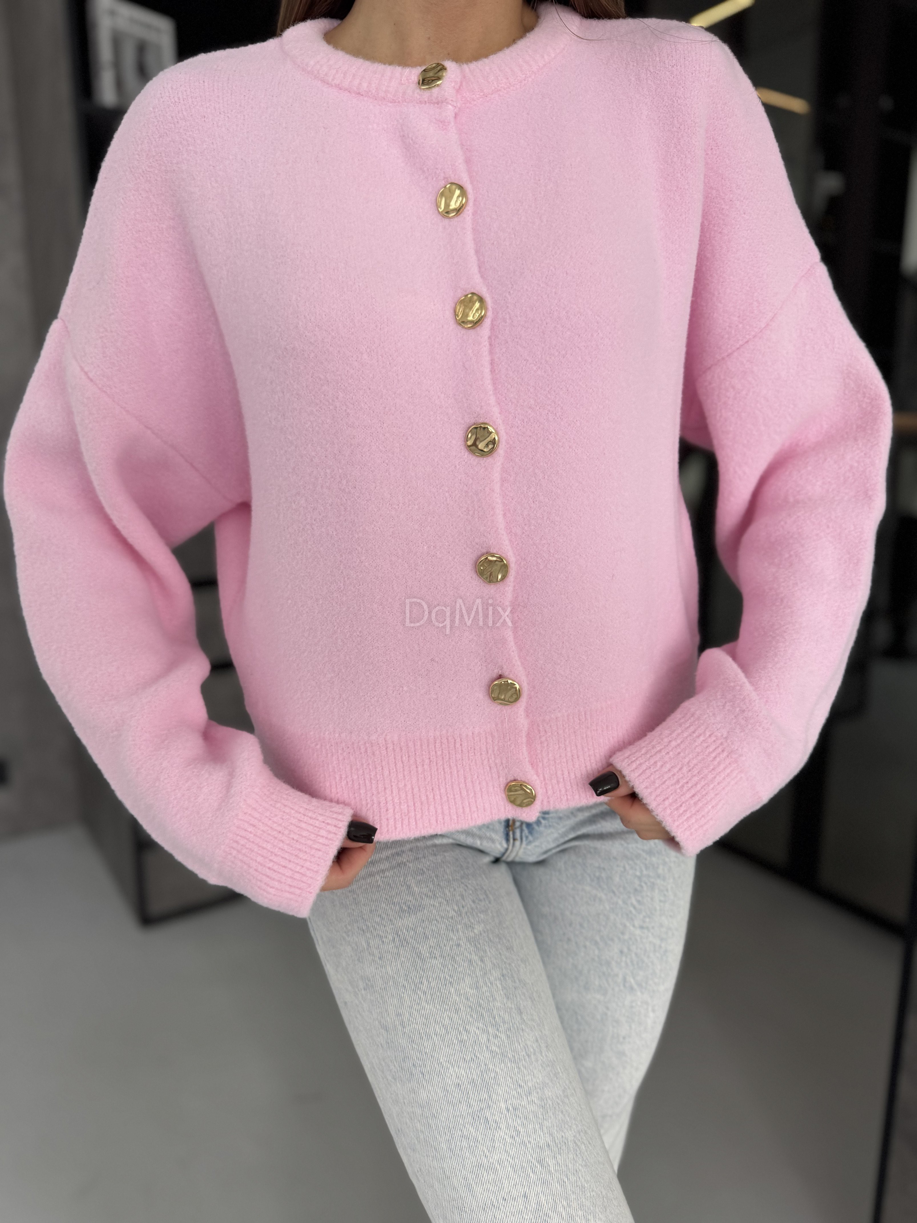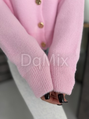 Рожевий кардиган на ґудзиках із пружної зефірної ниточки #6956