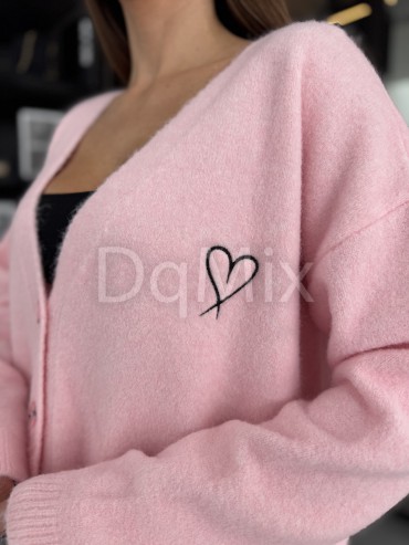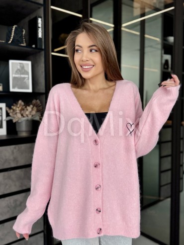 Рожевий теплий кардиган на ґудзиках , вишите середенько #6953