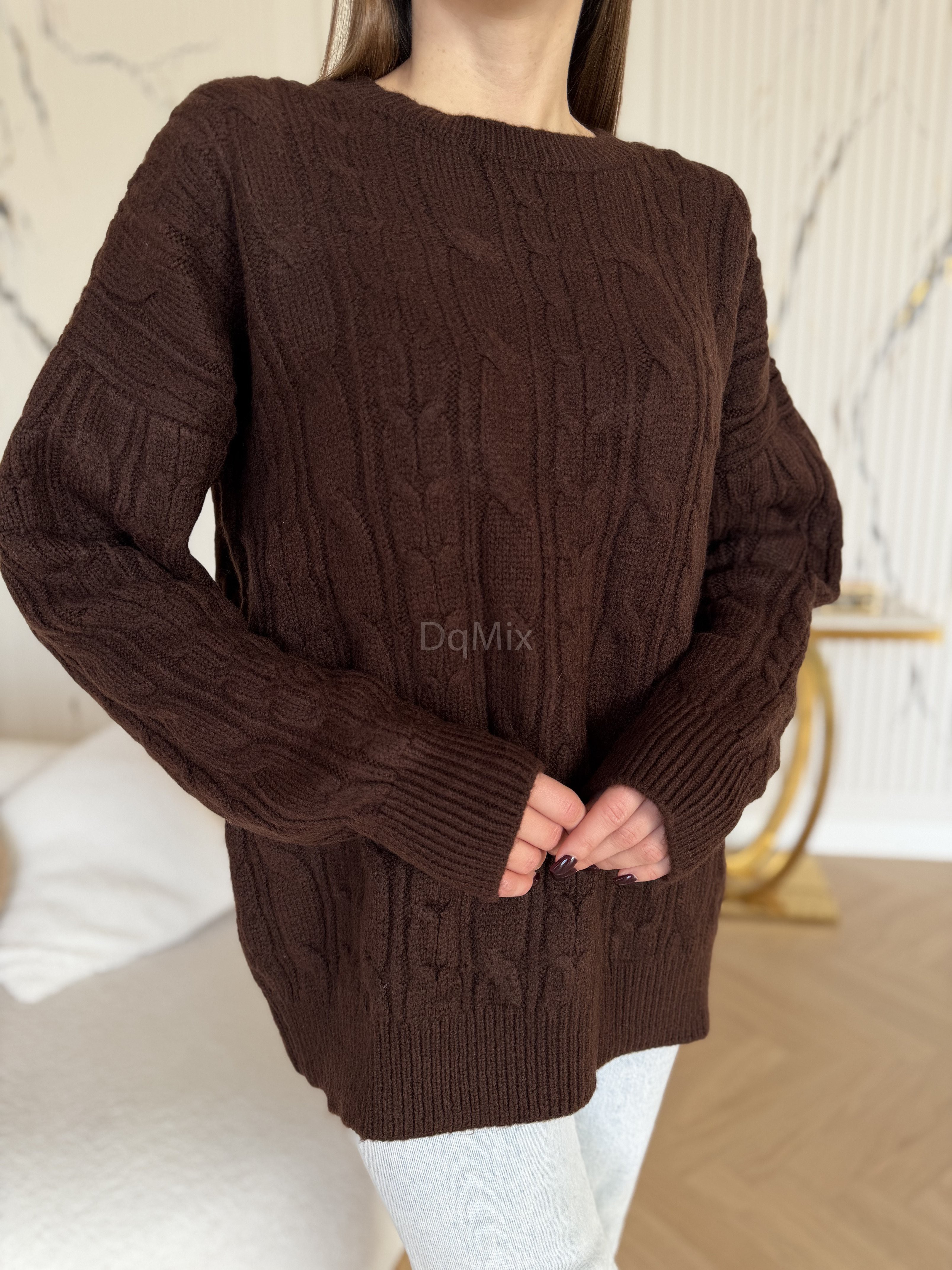 Щільний та якісний преміальна нитка светр коси у шоколадному кольорі #6986