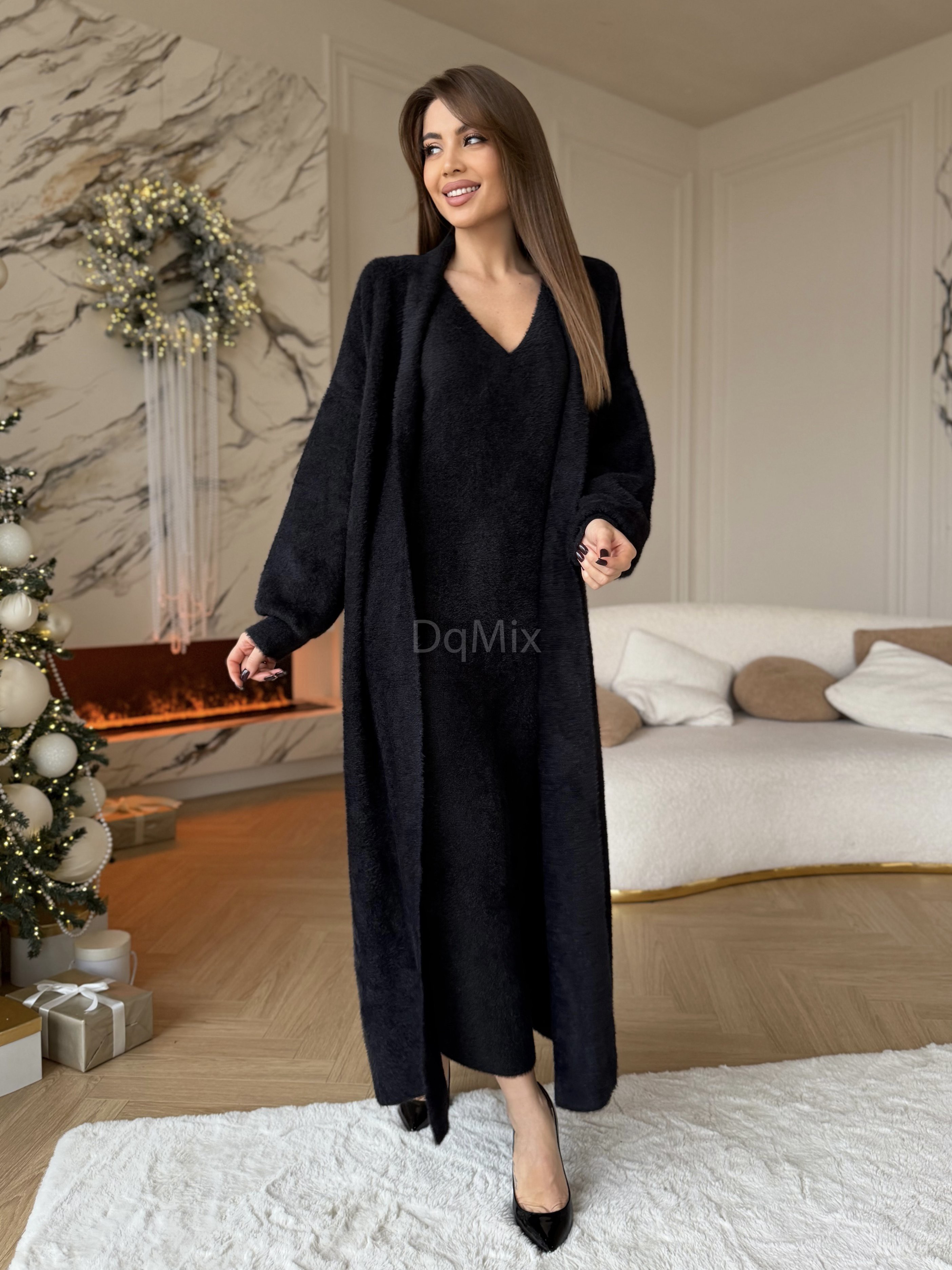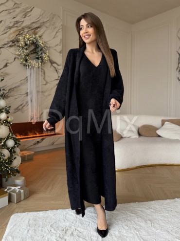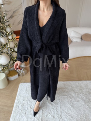 Шикарні преміальні комплекти у чорному кольорі , кардиган під пасок плюс сукня #92480