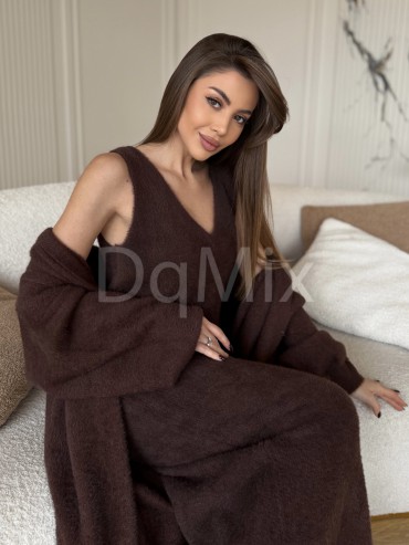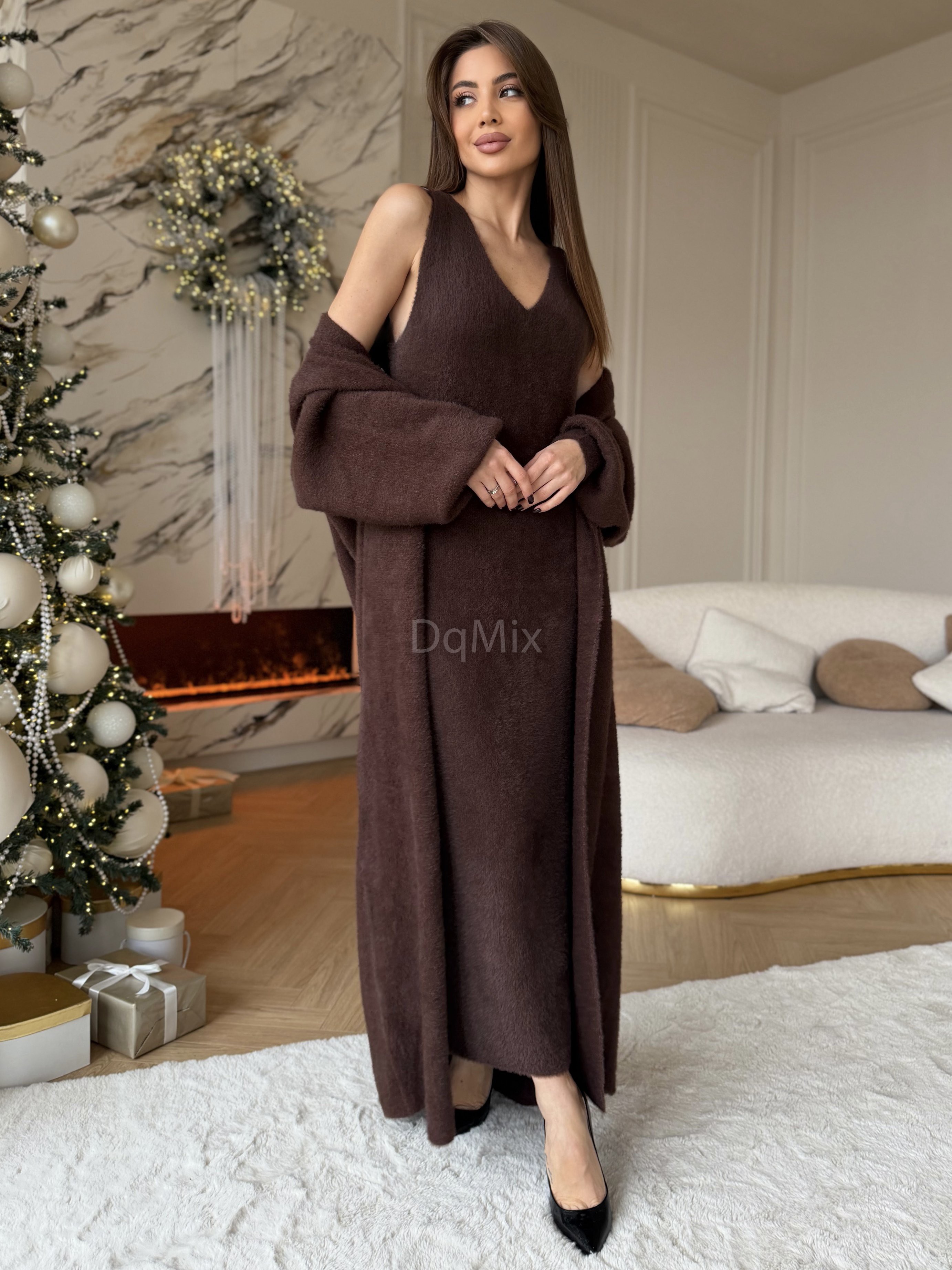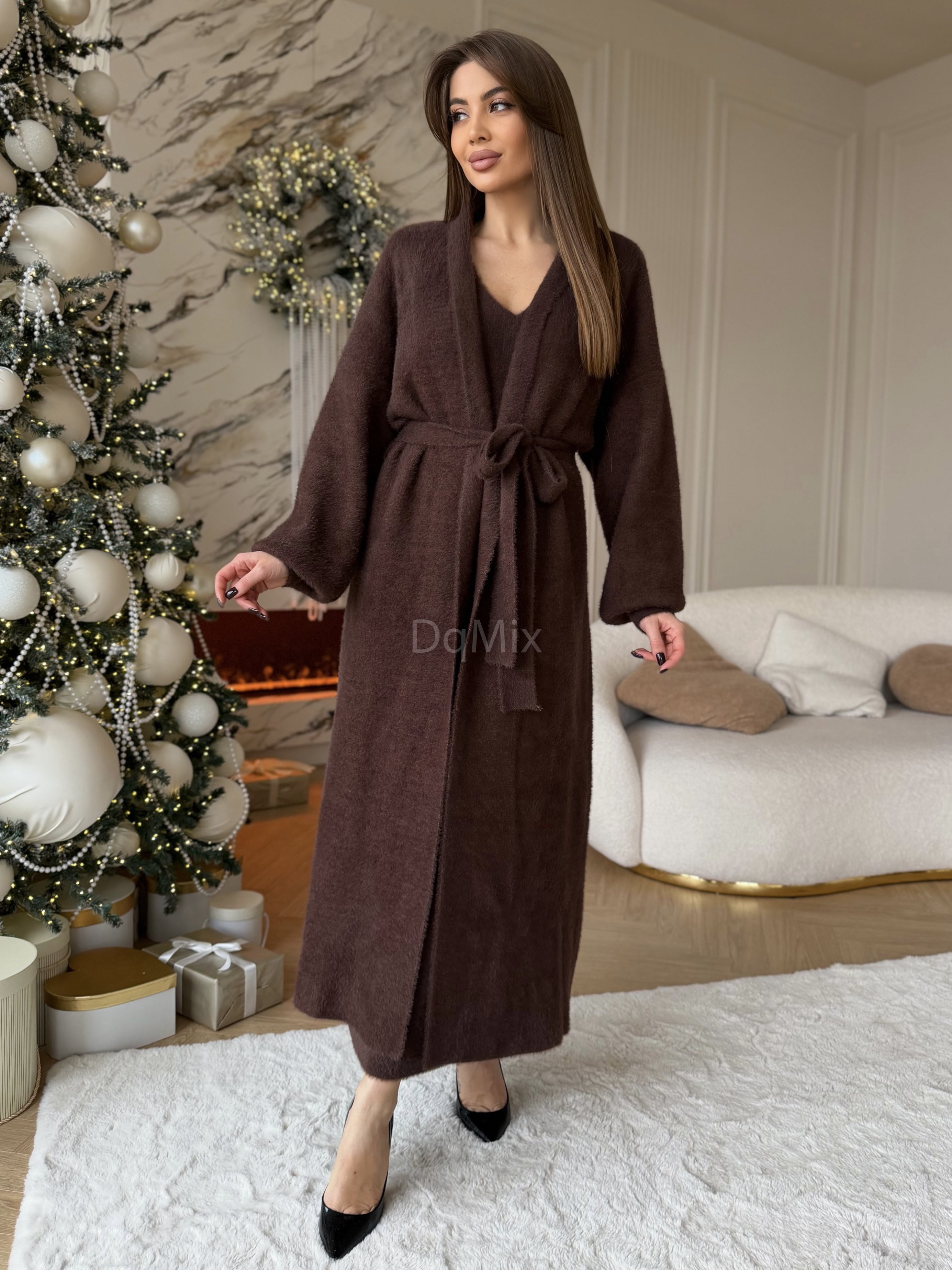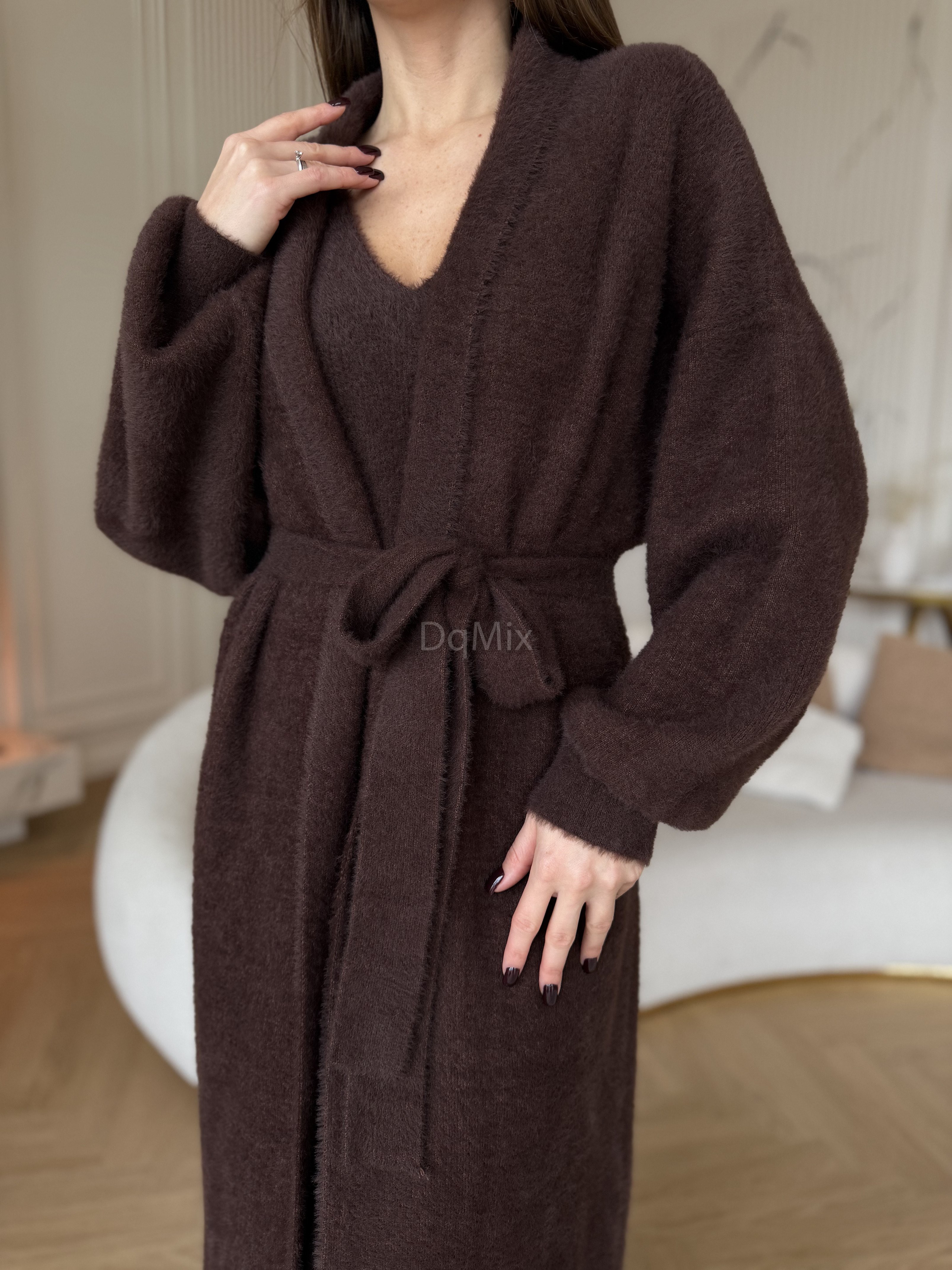 Шикарні преміальні комплекти у шоколадному кольорі , кардиган під пасок плюс сукня #92480