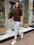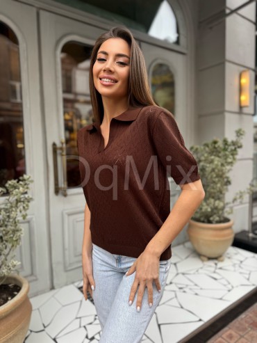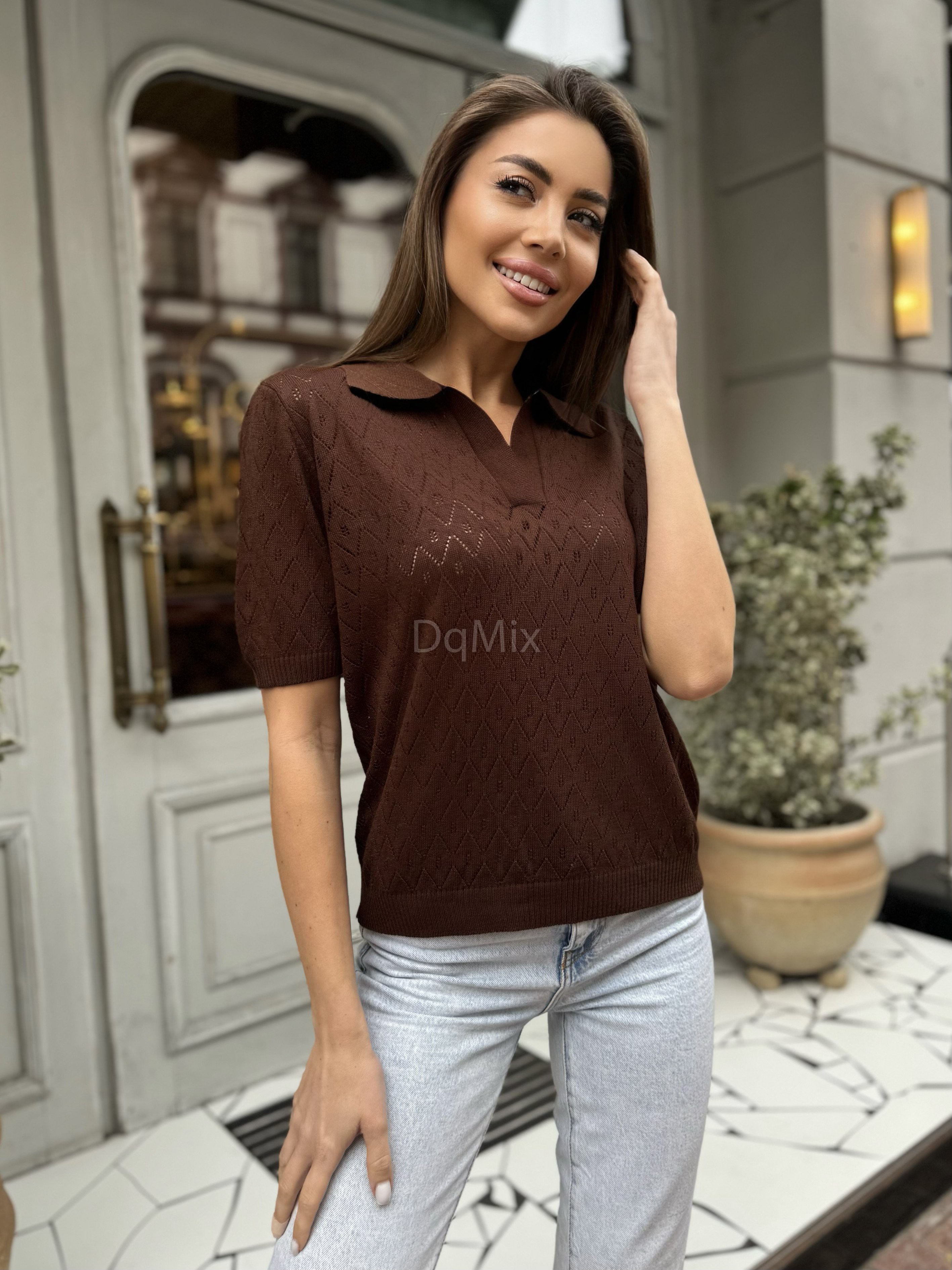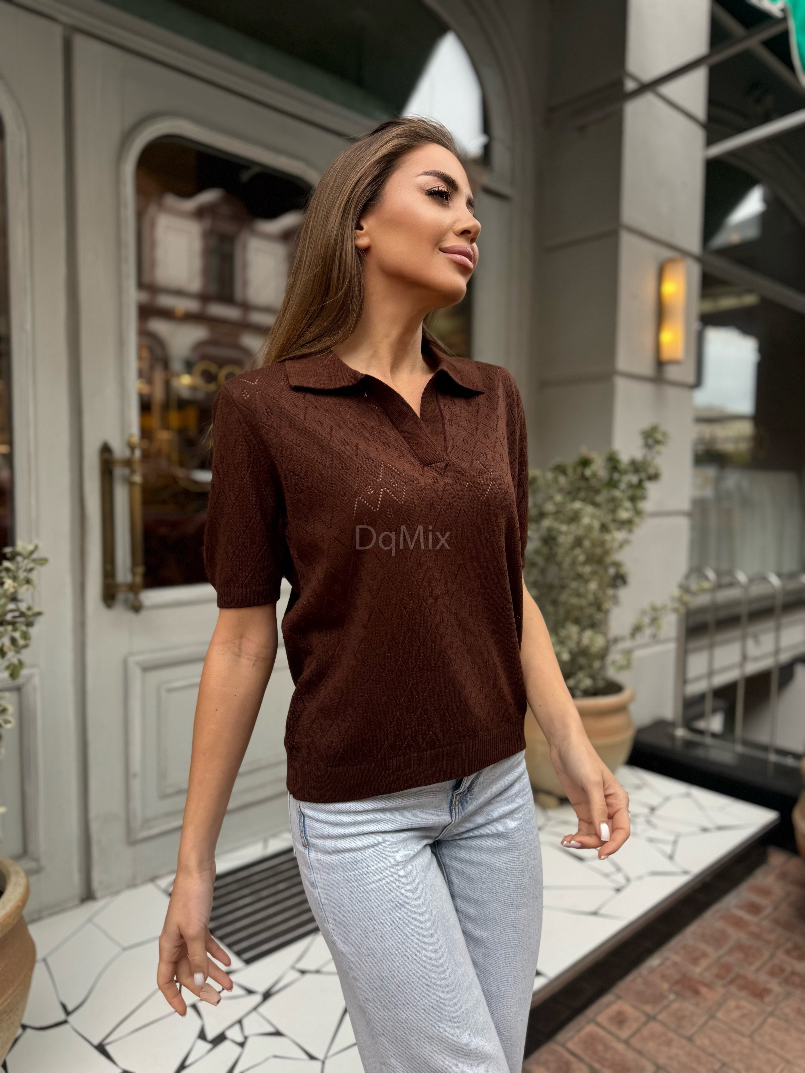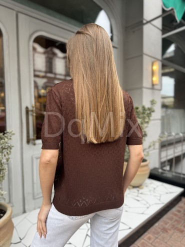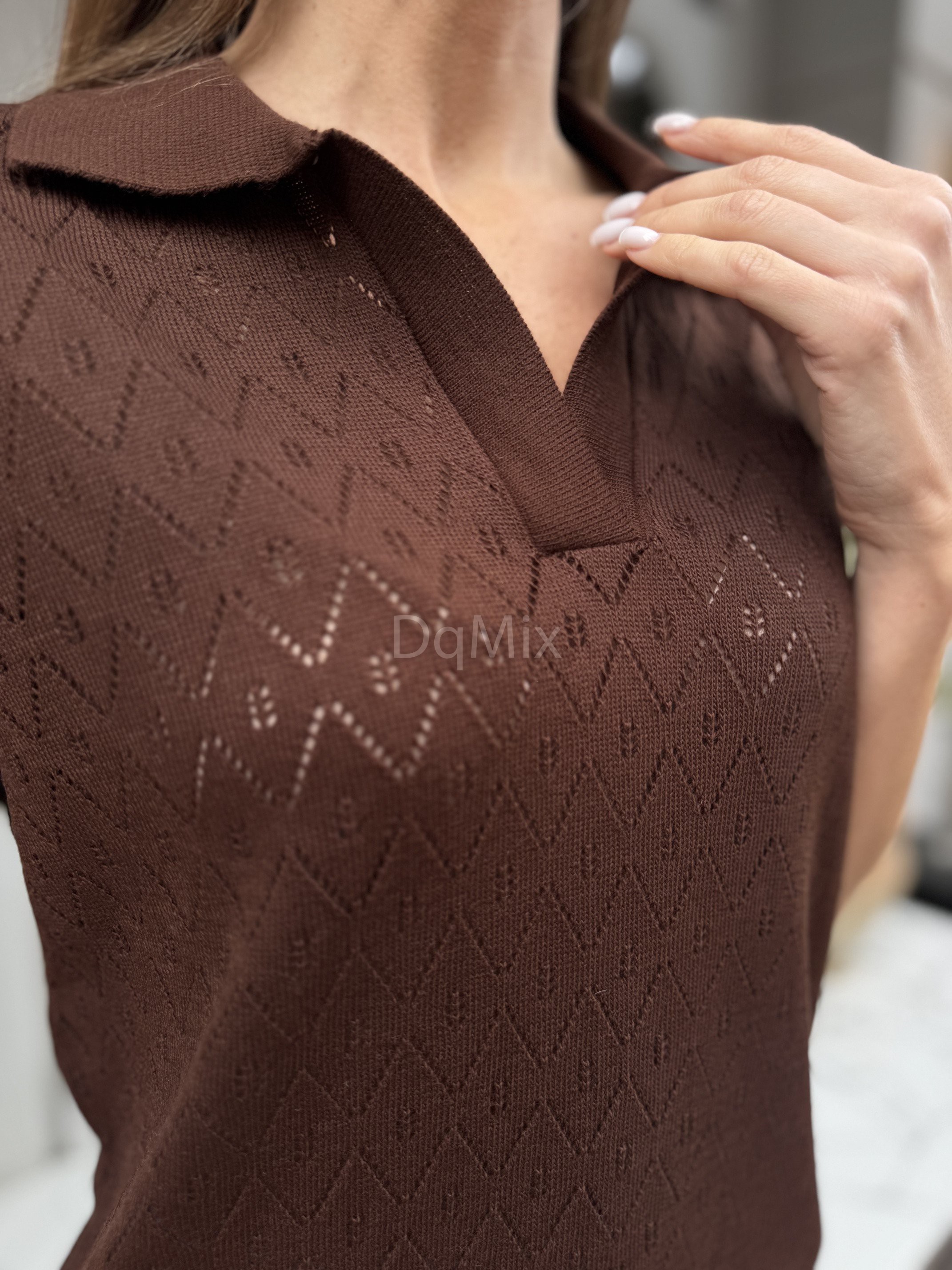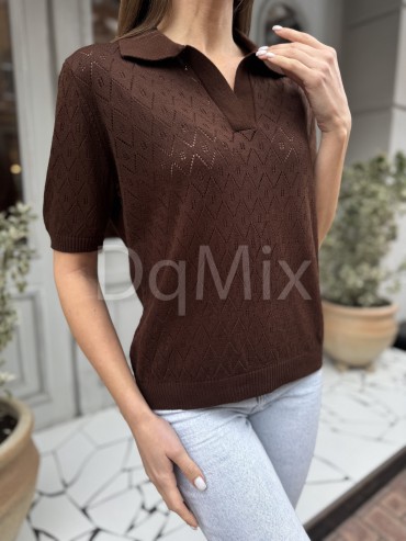 Шоколадна кофтинка геометричні візерунки із комірцем #14036