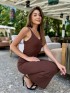 Шоколадна силуетна сукня із преміум віскозної нитки #92541