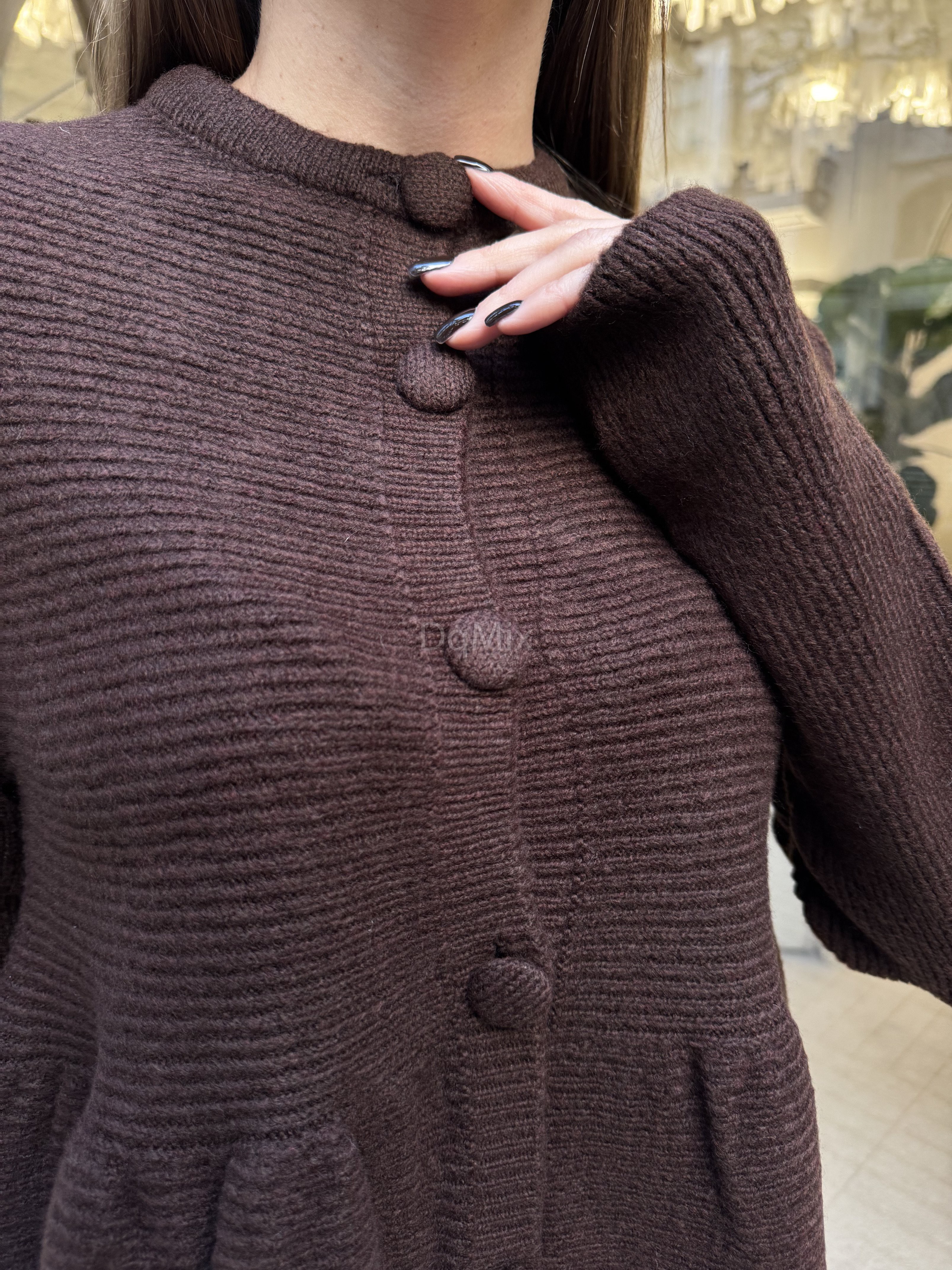 Шоколадний кардиган на ґудзиках (оздоблені ниткою в колір ) оригінальне поєднання з баскою #6958