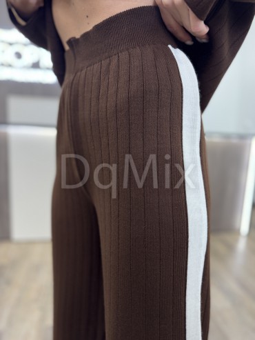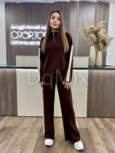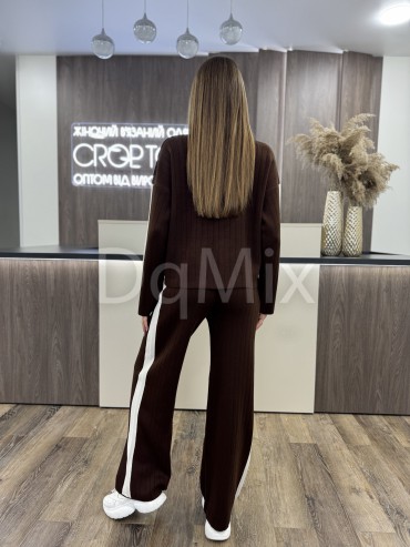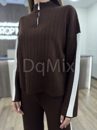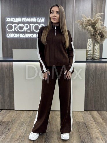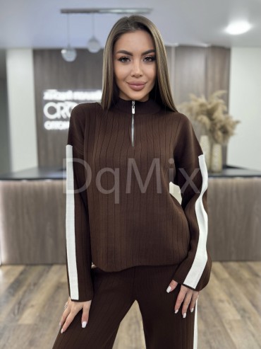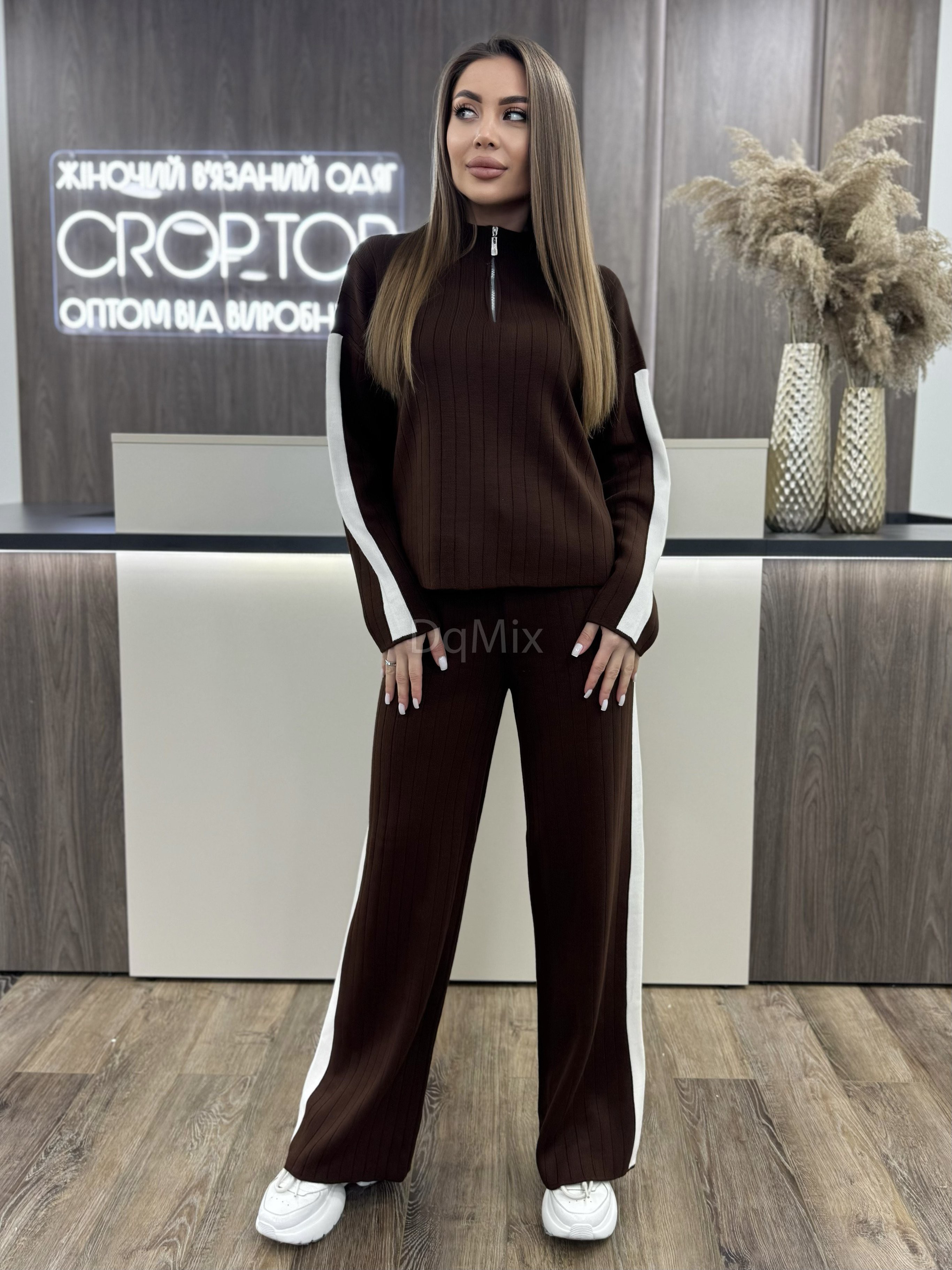 Шоколадний костюм бокові смужки штанці + джемпер на блискавці #10858