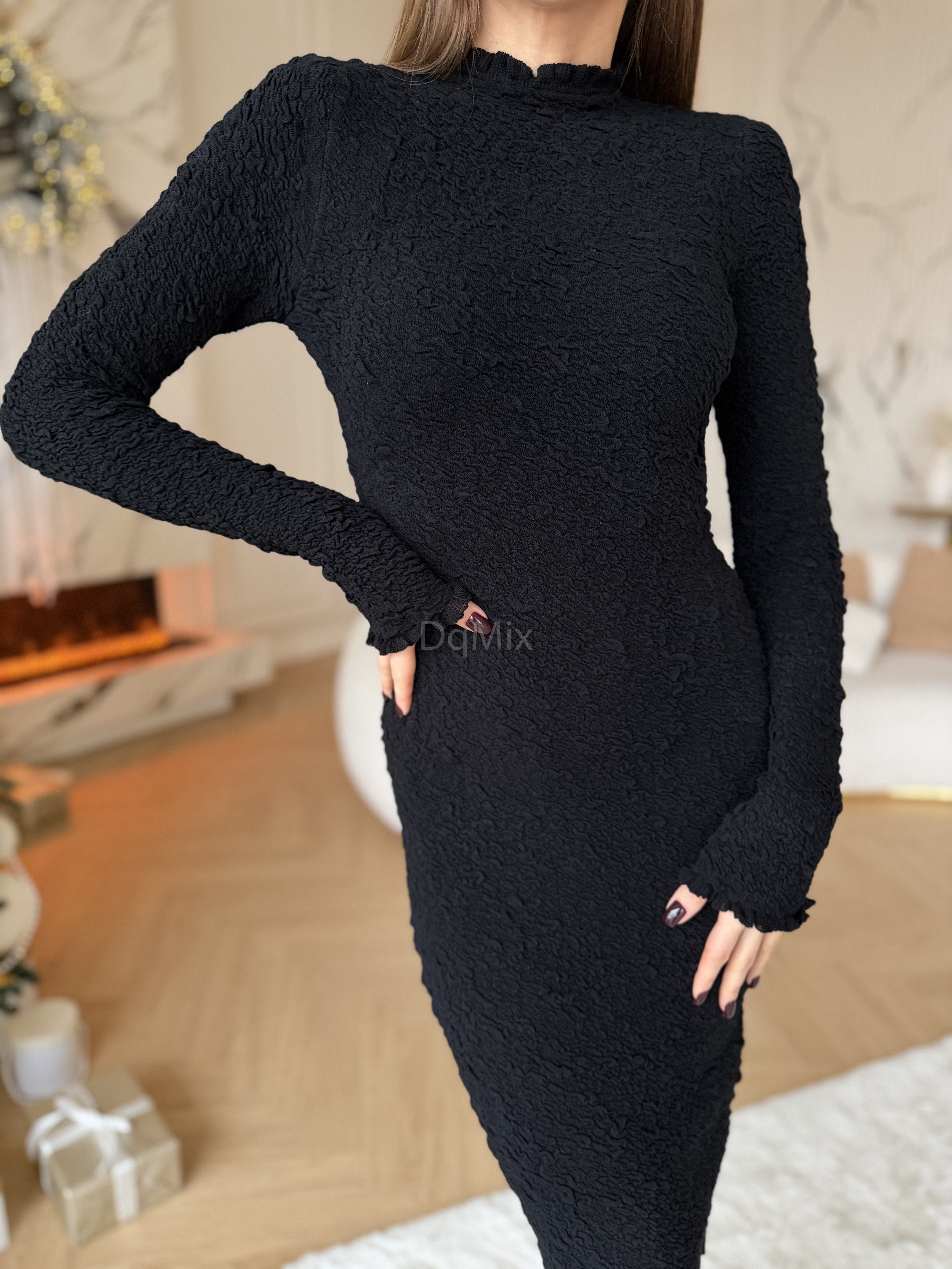 Силуетні сукні «вауефект» ніжна , структурована вʼязка стилем жатка , преміум віскоза у чорному кольорі #14048