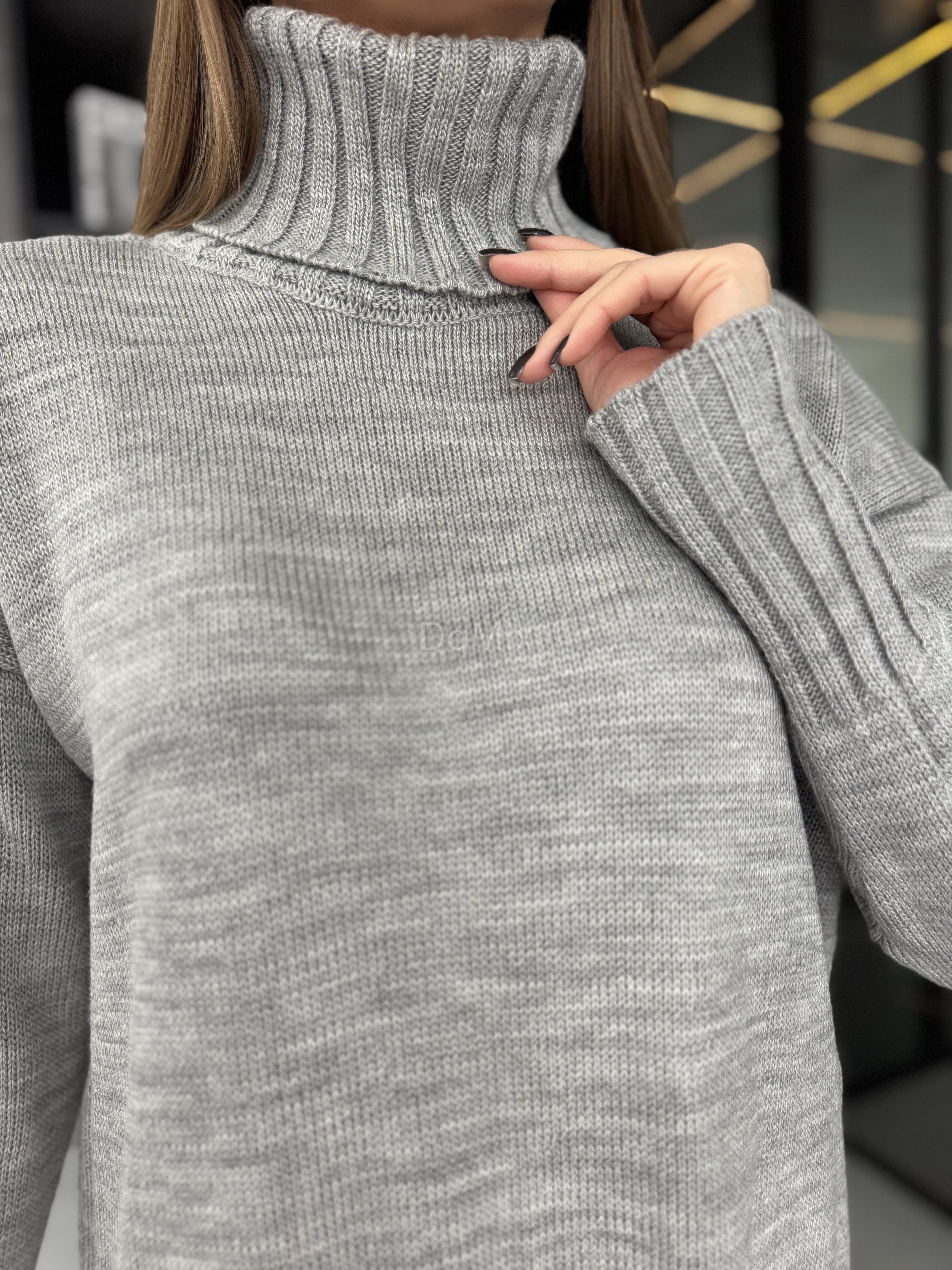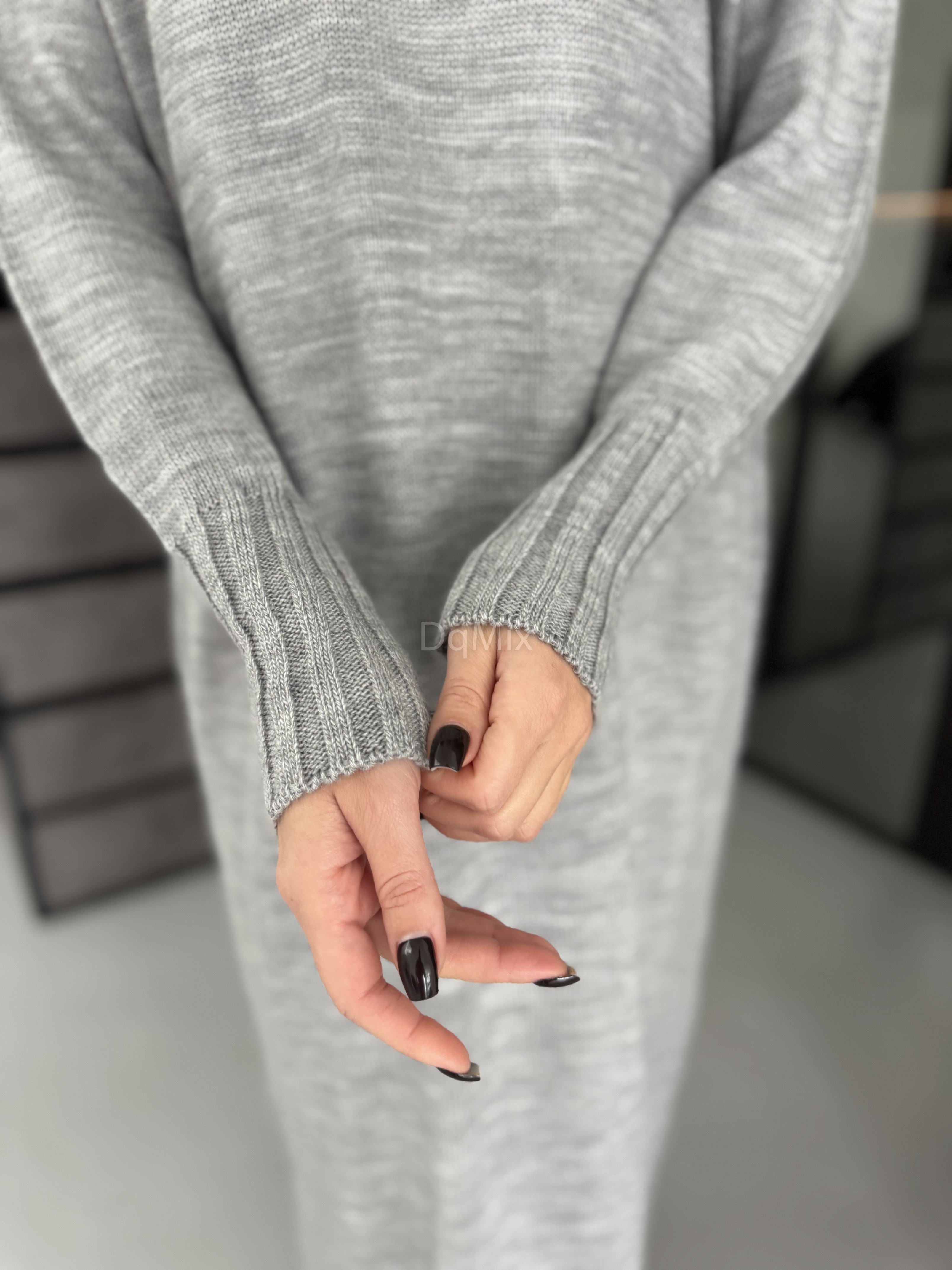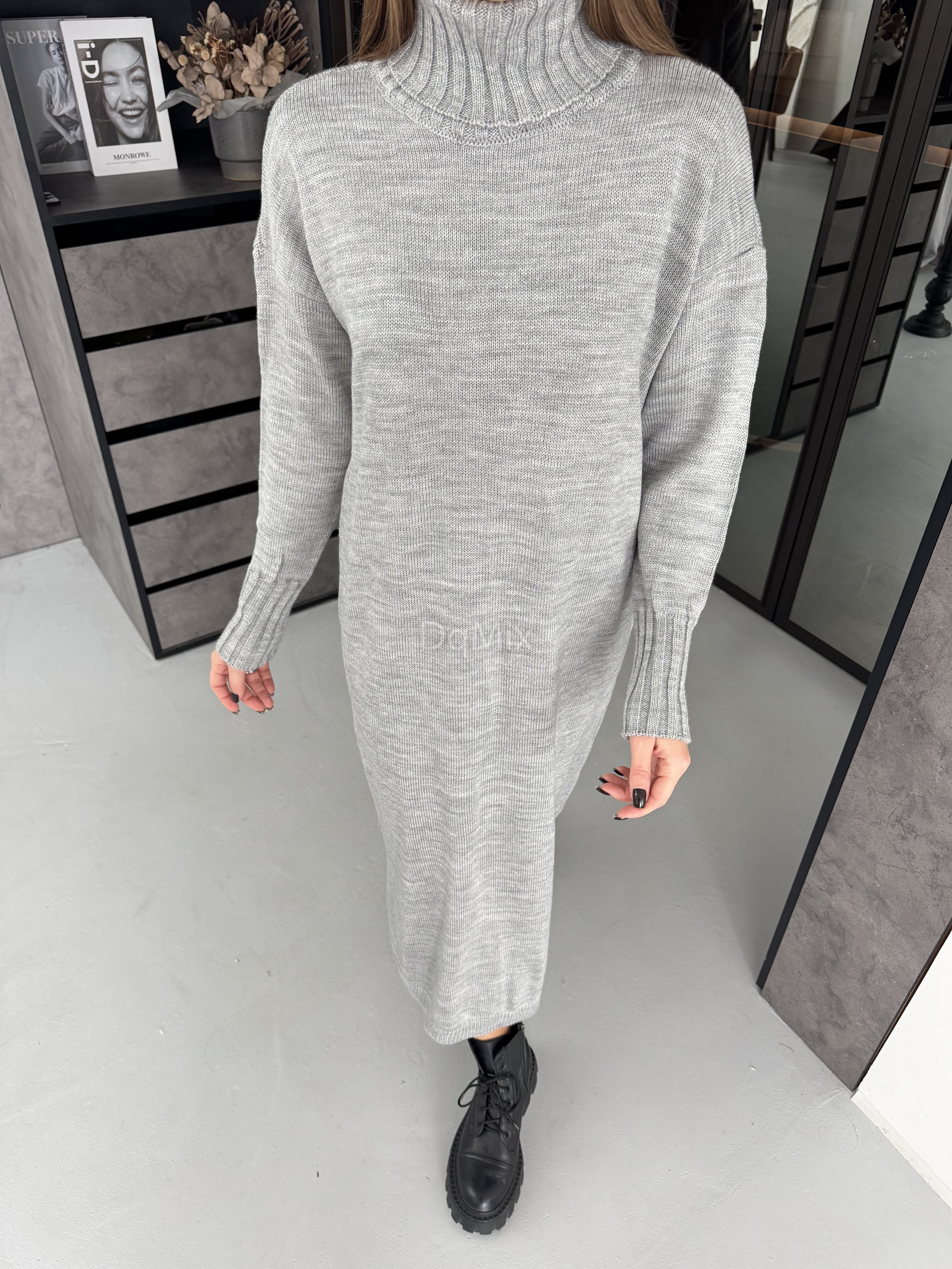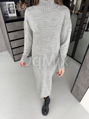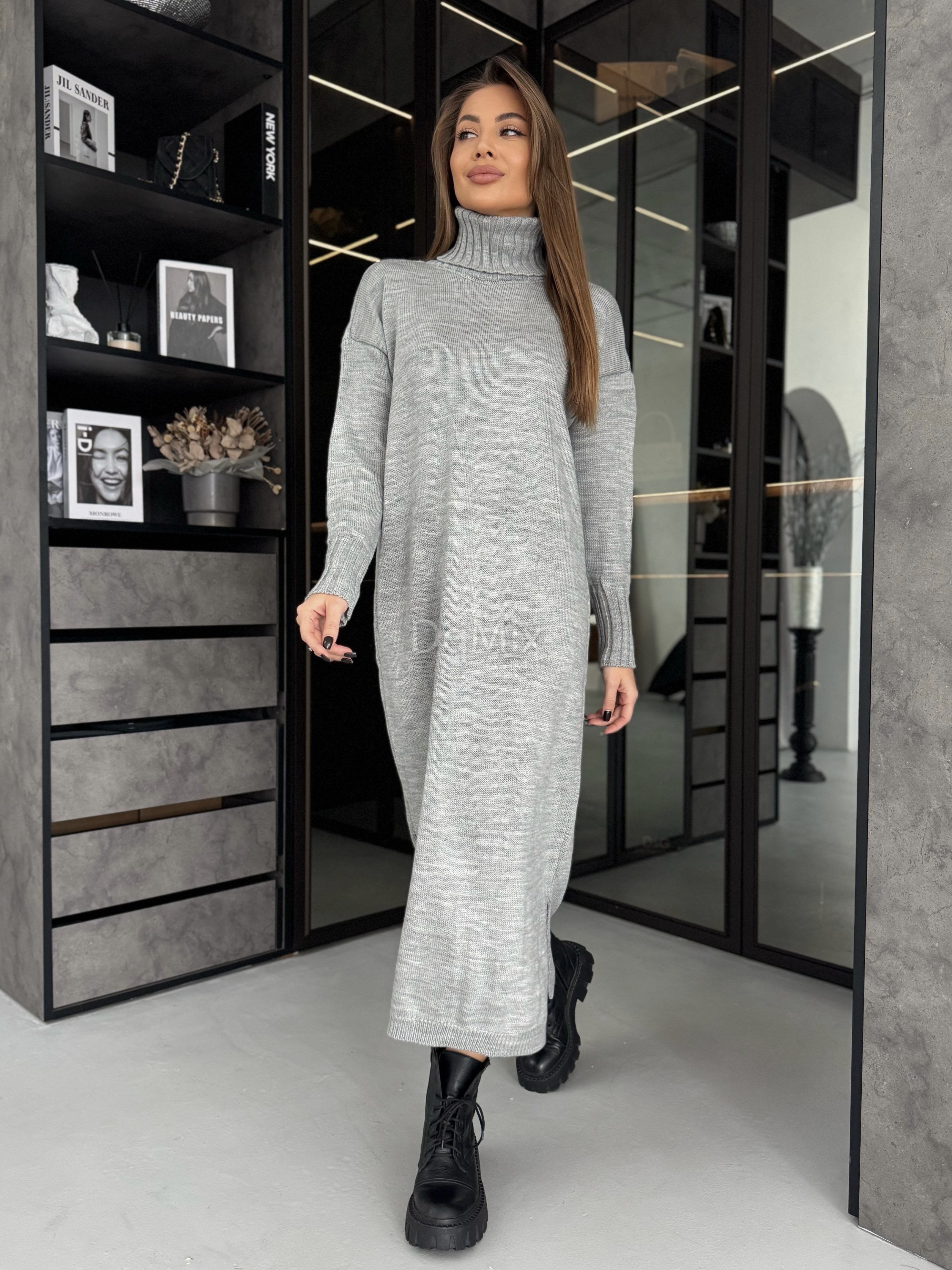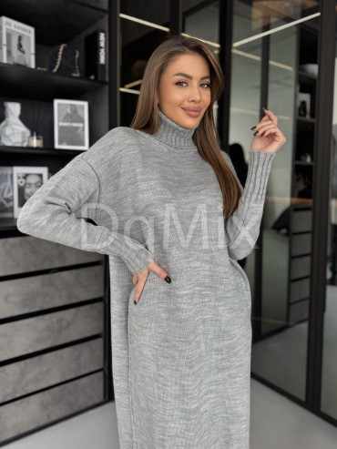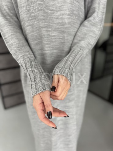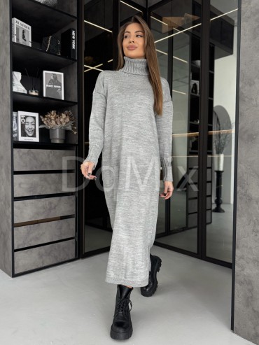 Сіра сукня прямого крою з горловиною #8016