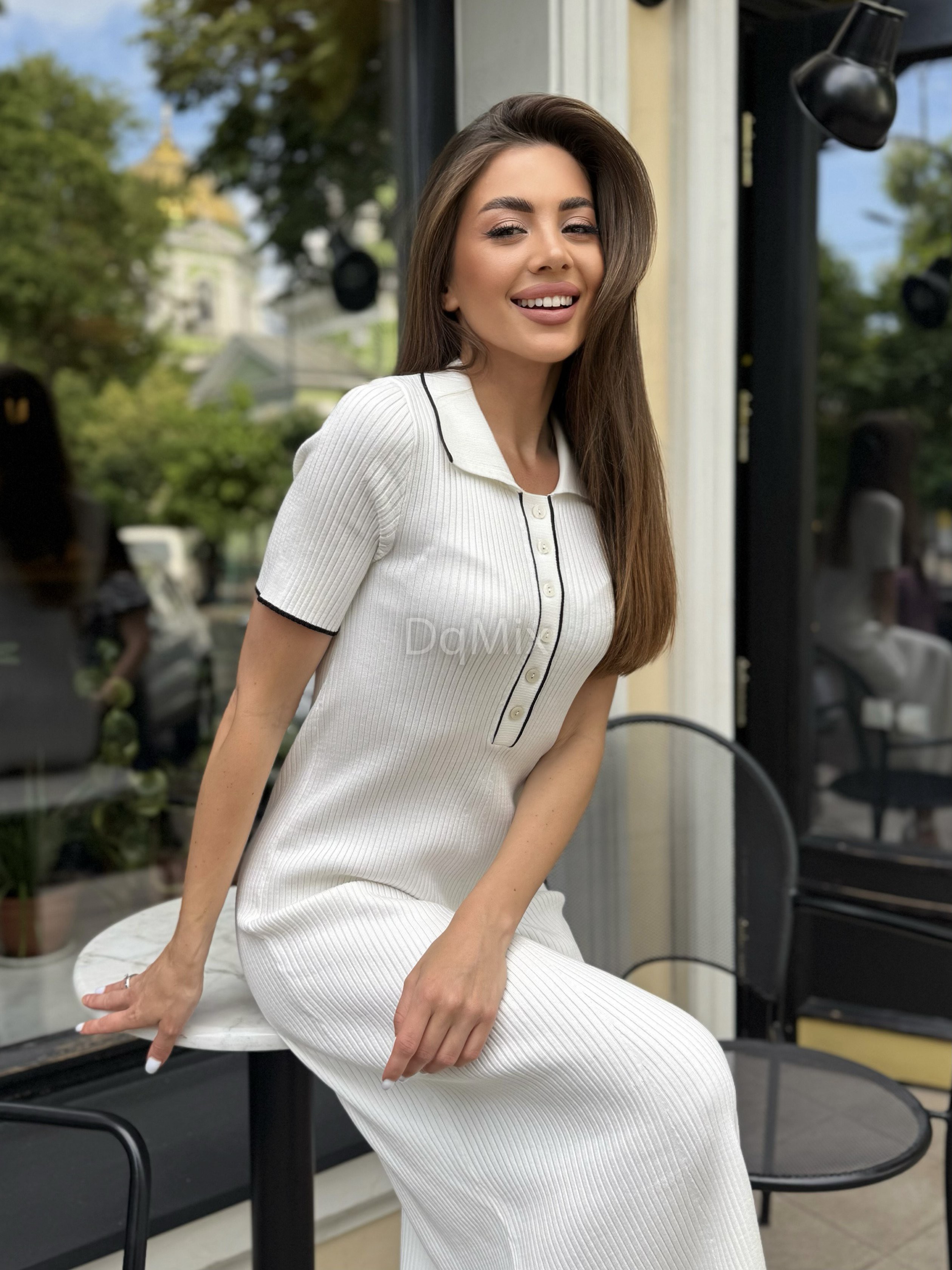 Сукня преміум ниточки , гарне довге міді , з відкладним комірцем на ґудзиках у білому #14003