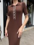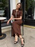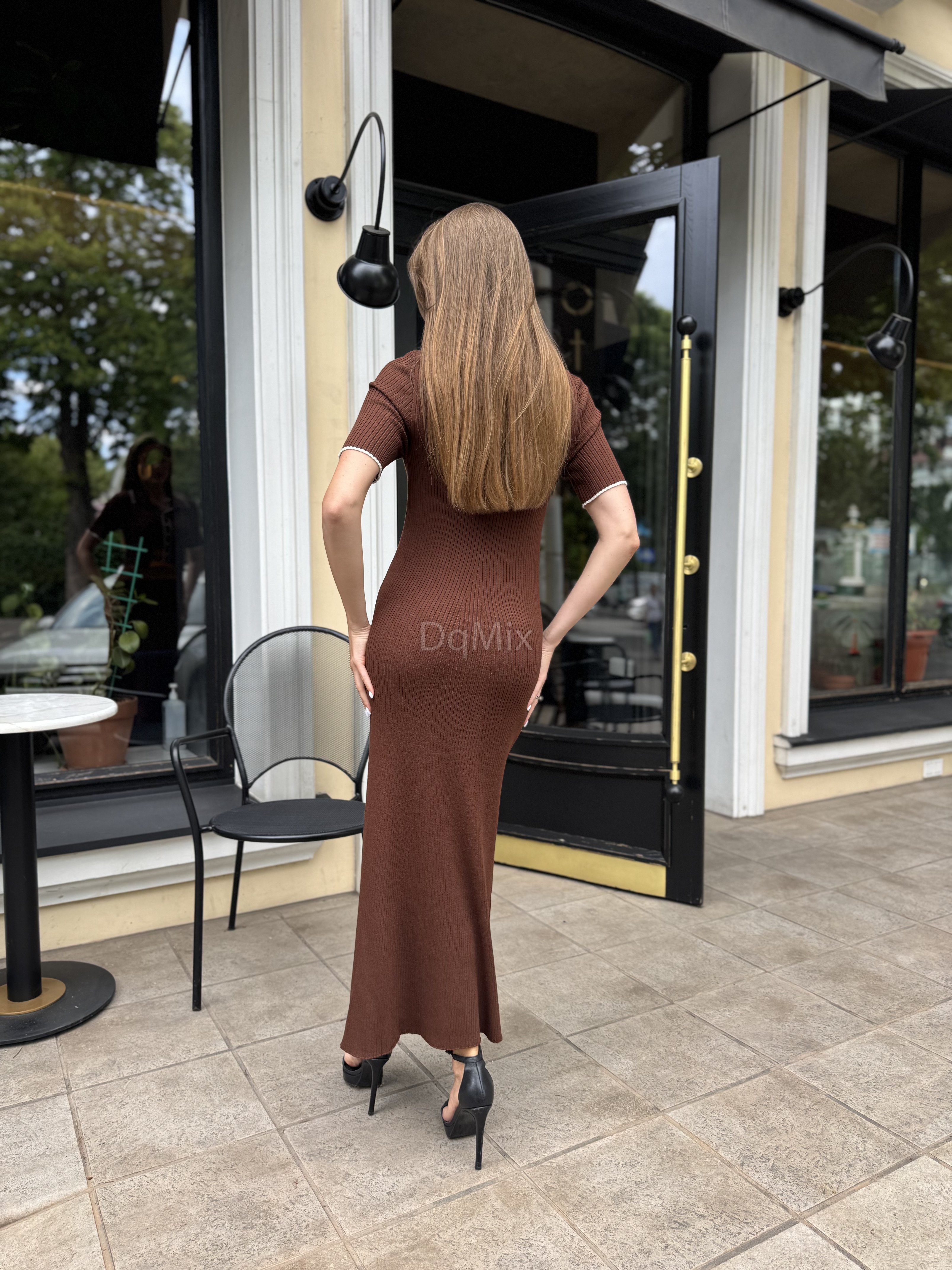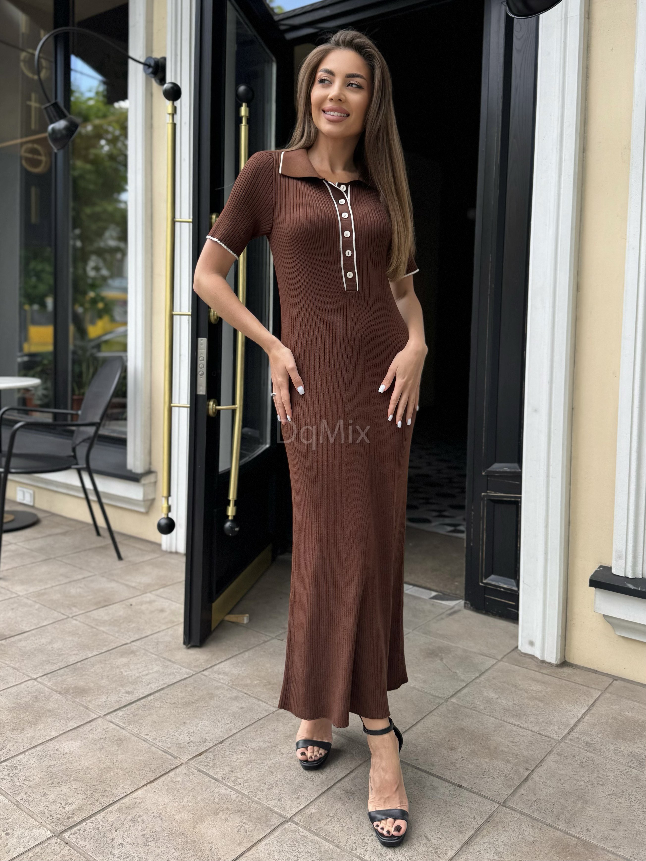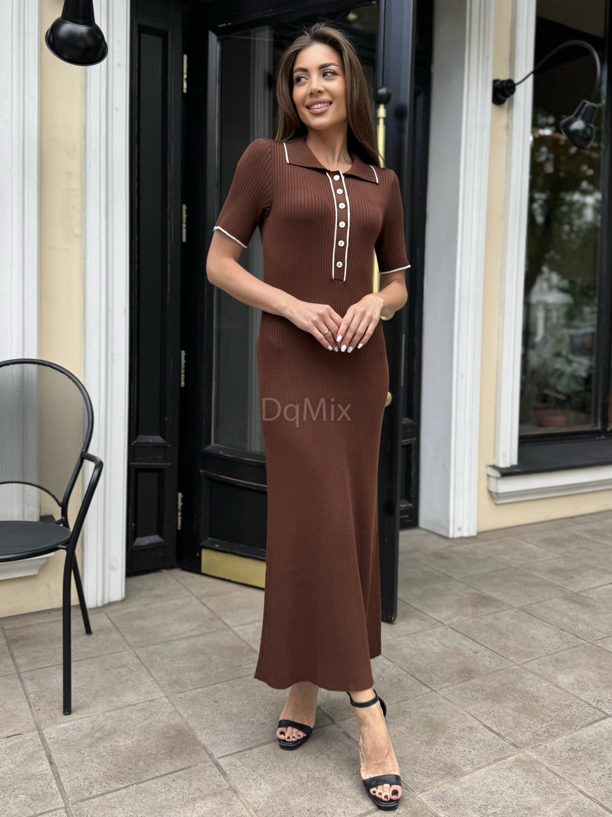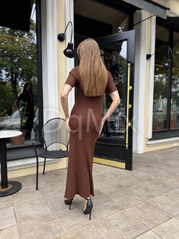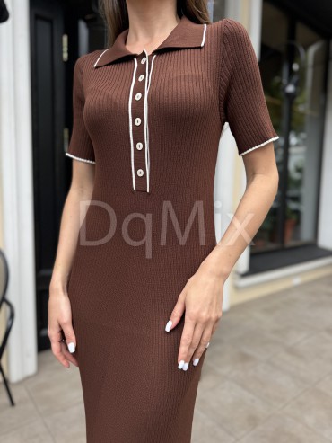 Сукня преміум ниточки , гарне довге міді , з відкладним комірцем на ґудзиках у шоколадному кольорі #14003