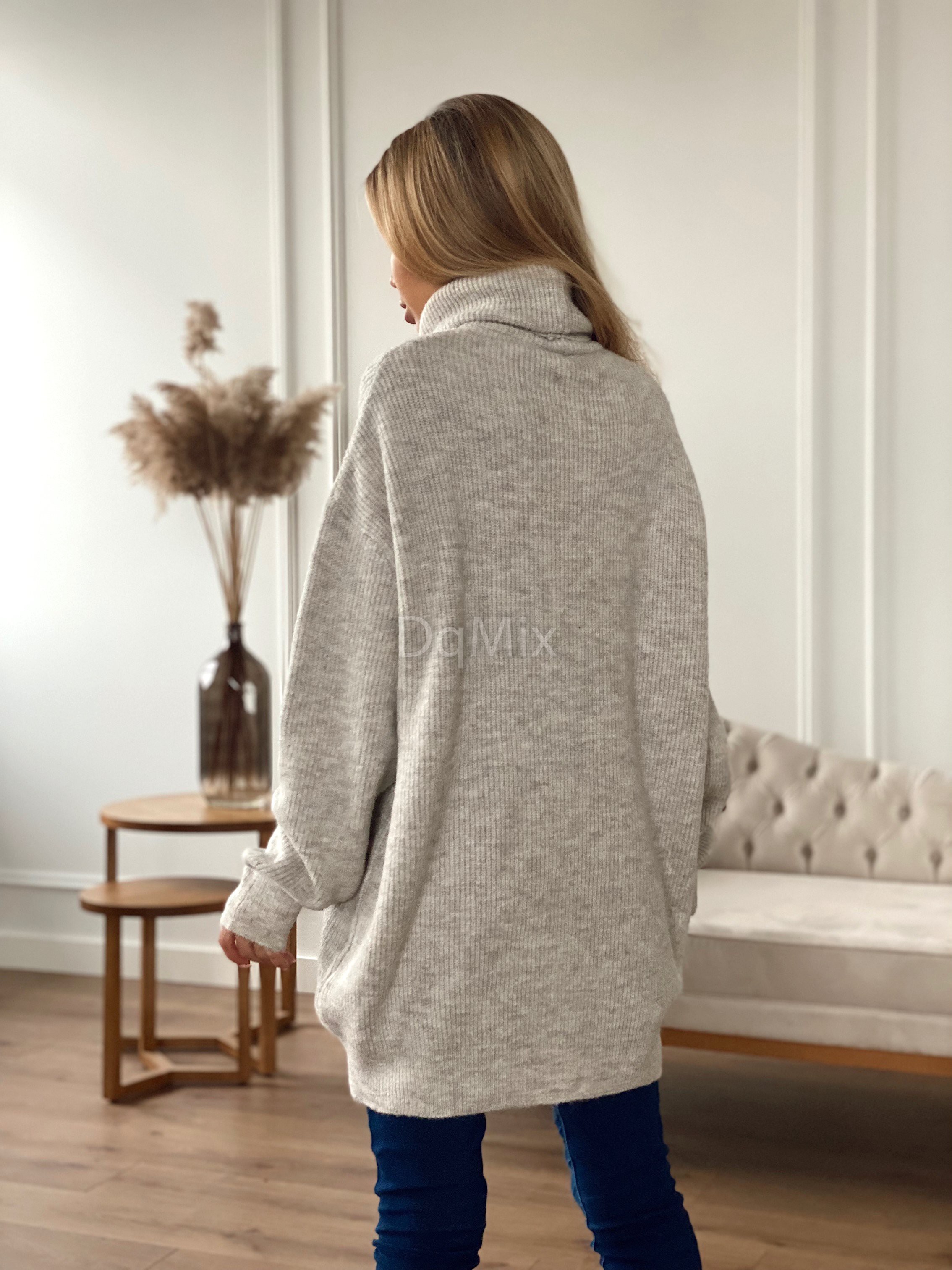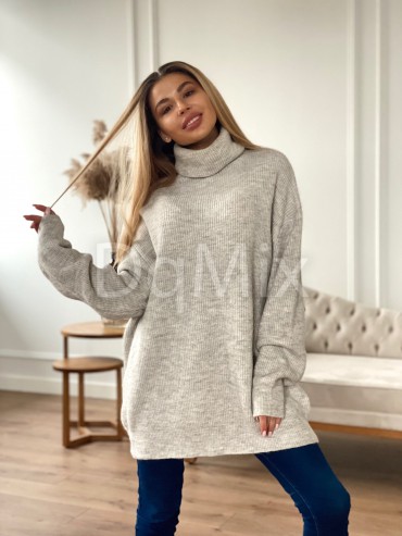 Светр-туніка оверсайз у кольорі беж #6389