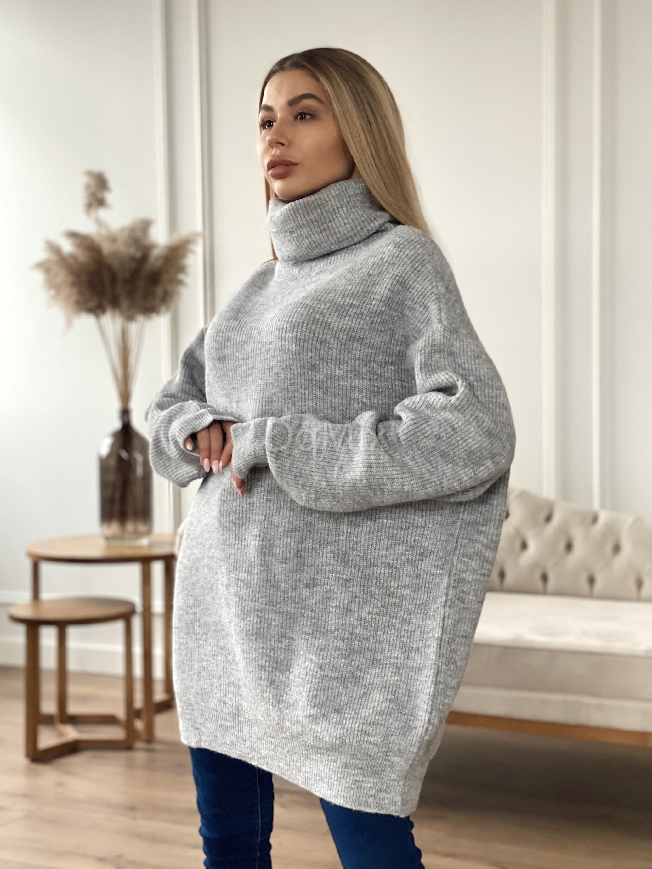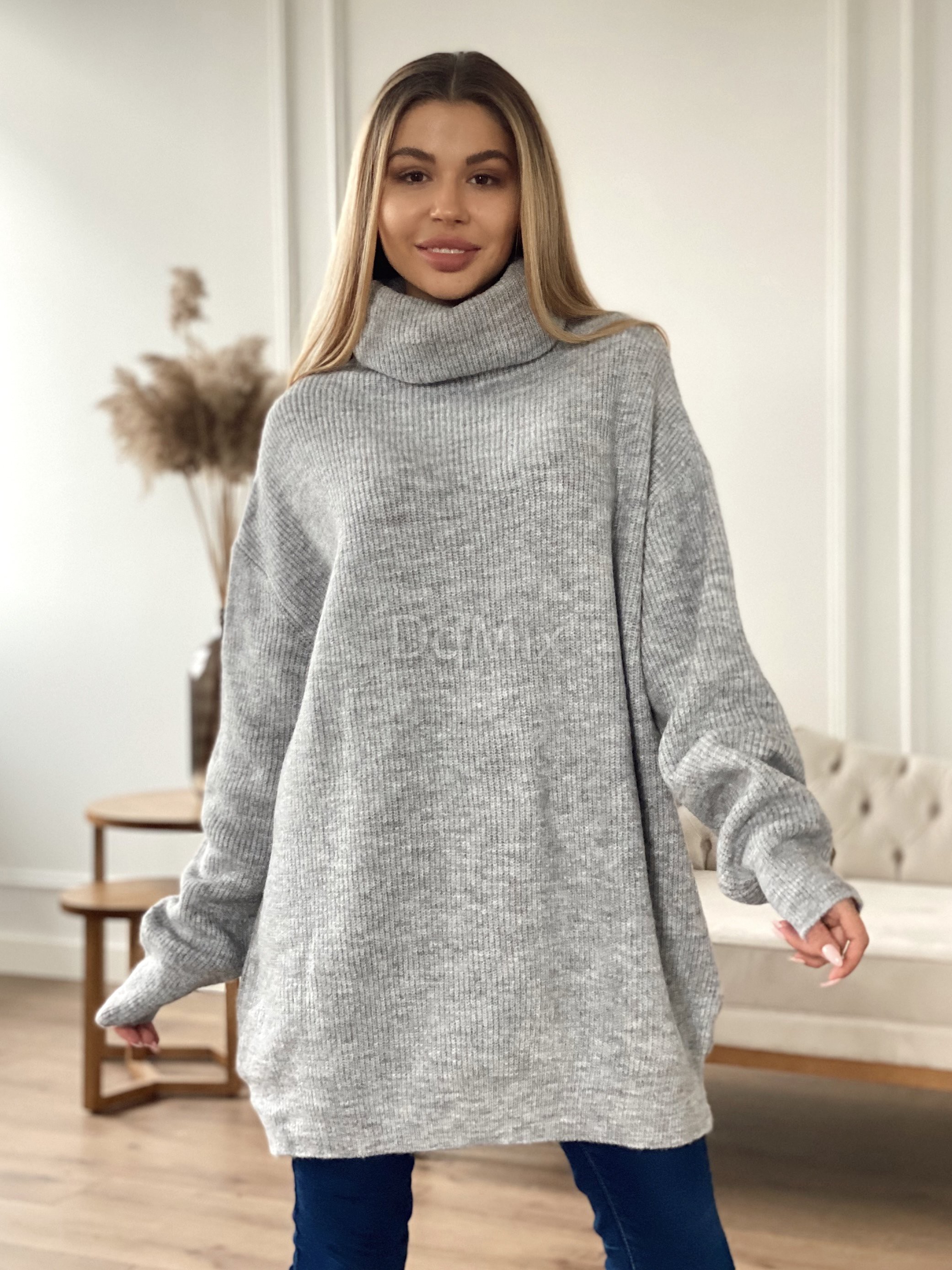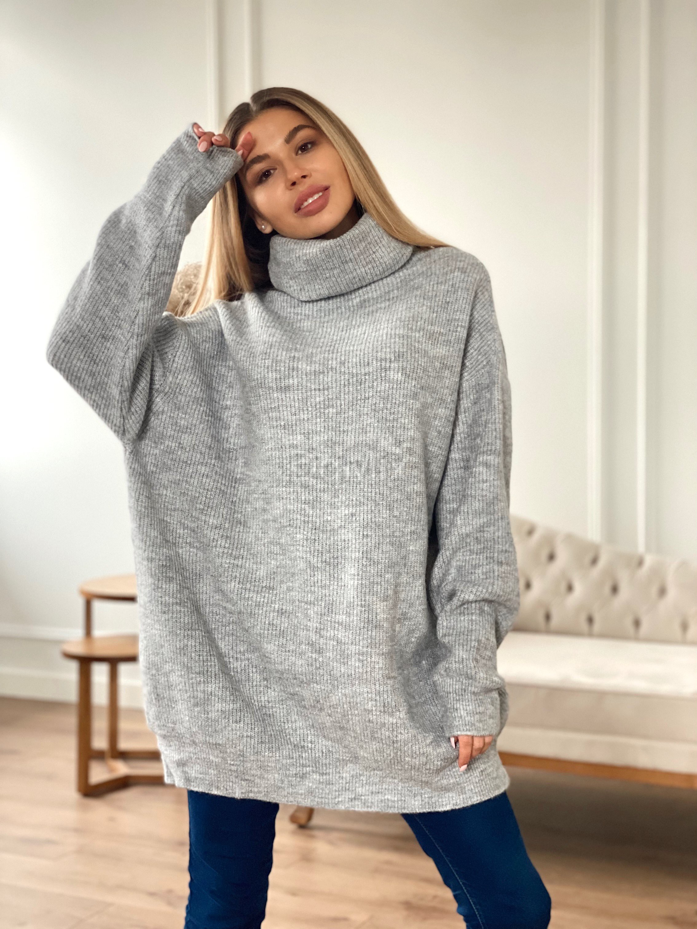 Светр-туніка оверсайз у сірому кольорі #6389