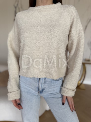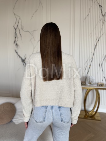Светрик вкорочений , манжети на рукавах, ниточка «тедді» у молочному кольорі #6917