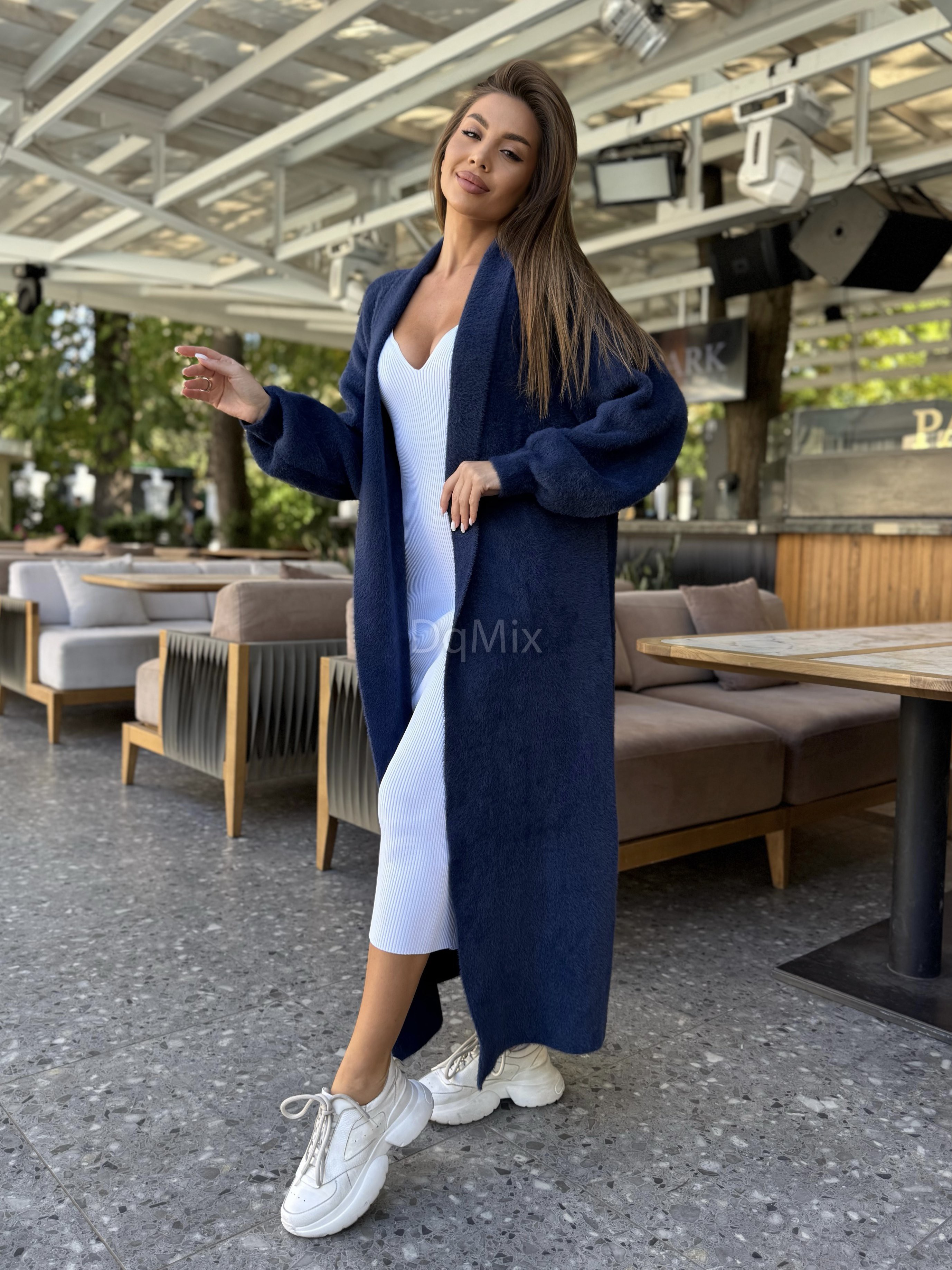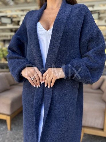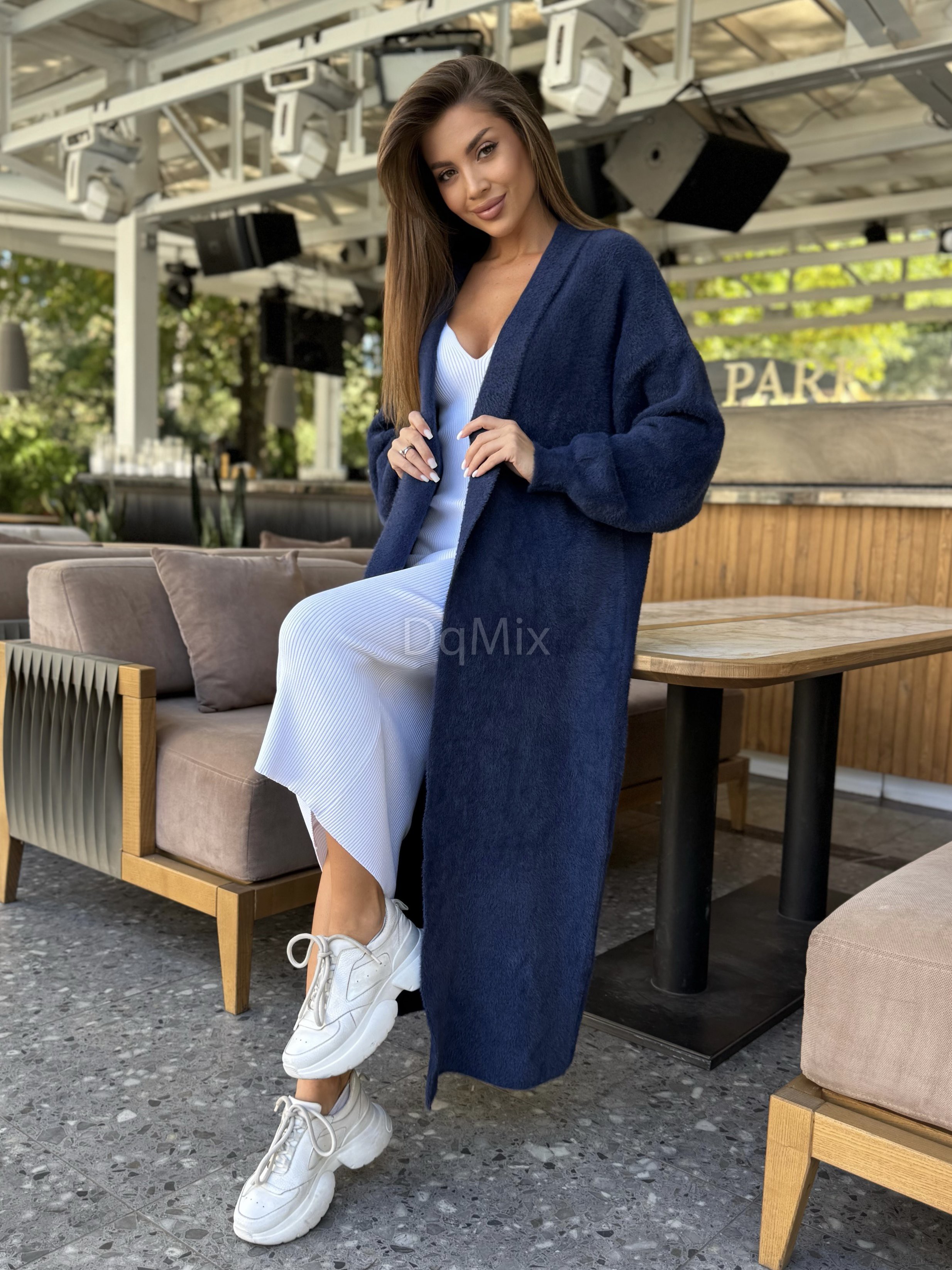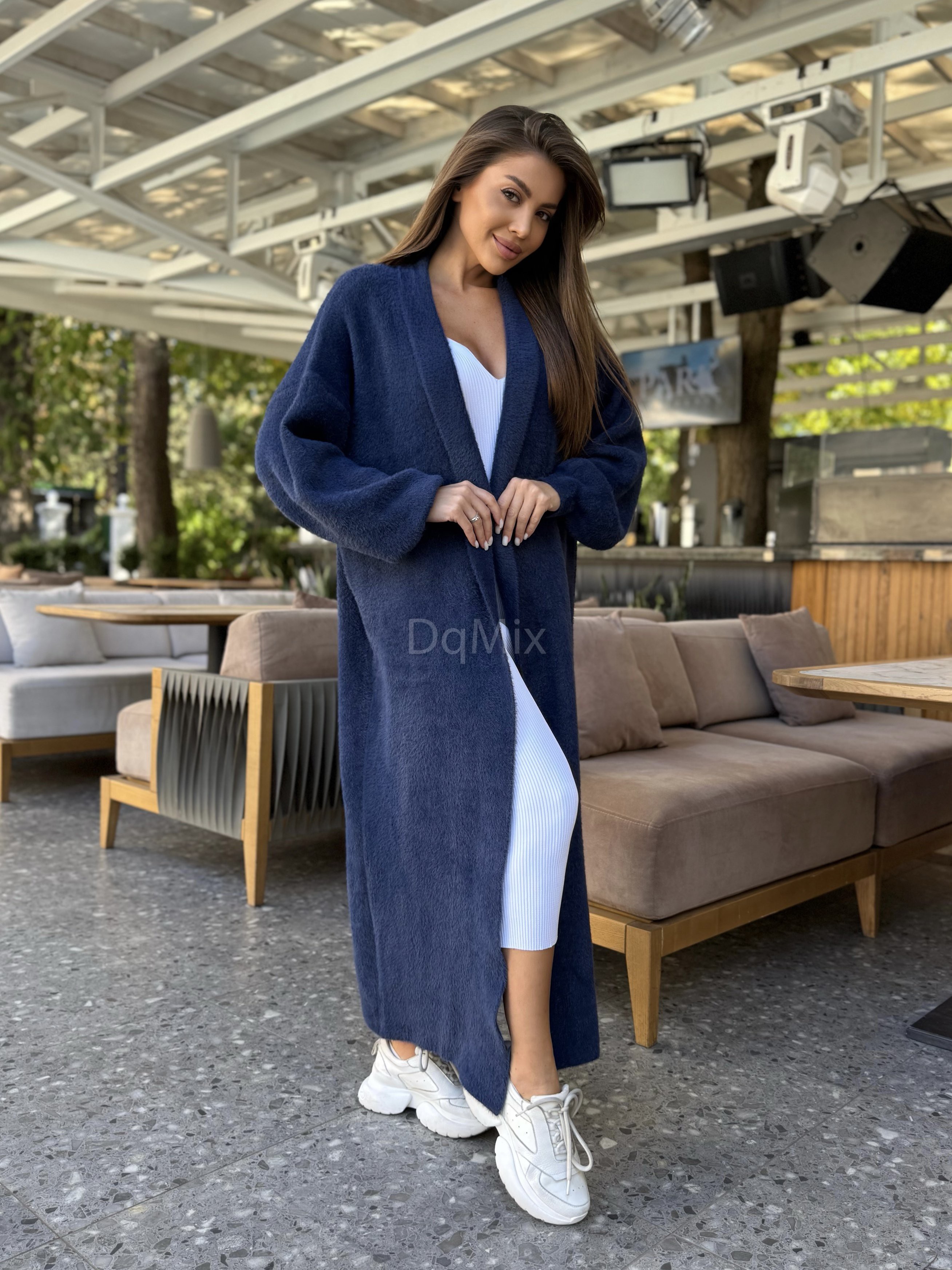 Темно-синій подовжений Кардиган (травичка щільна цупка якісна) прямого вільного крою #92476