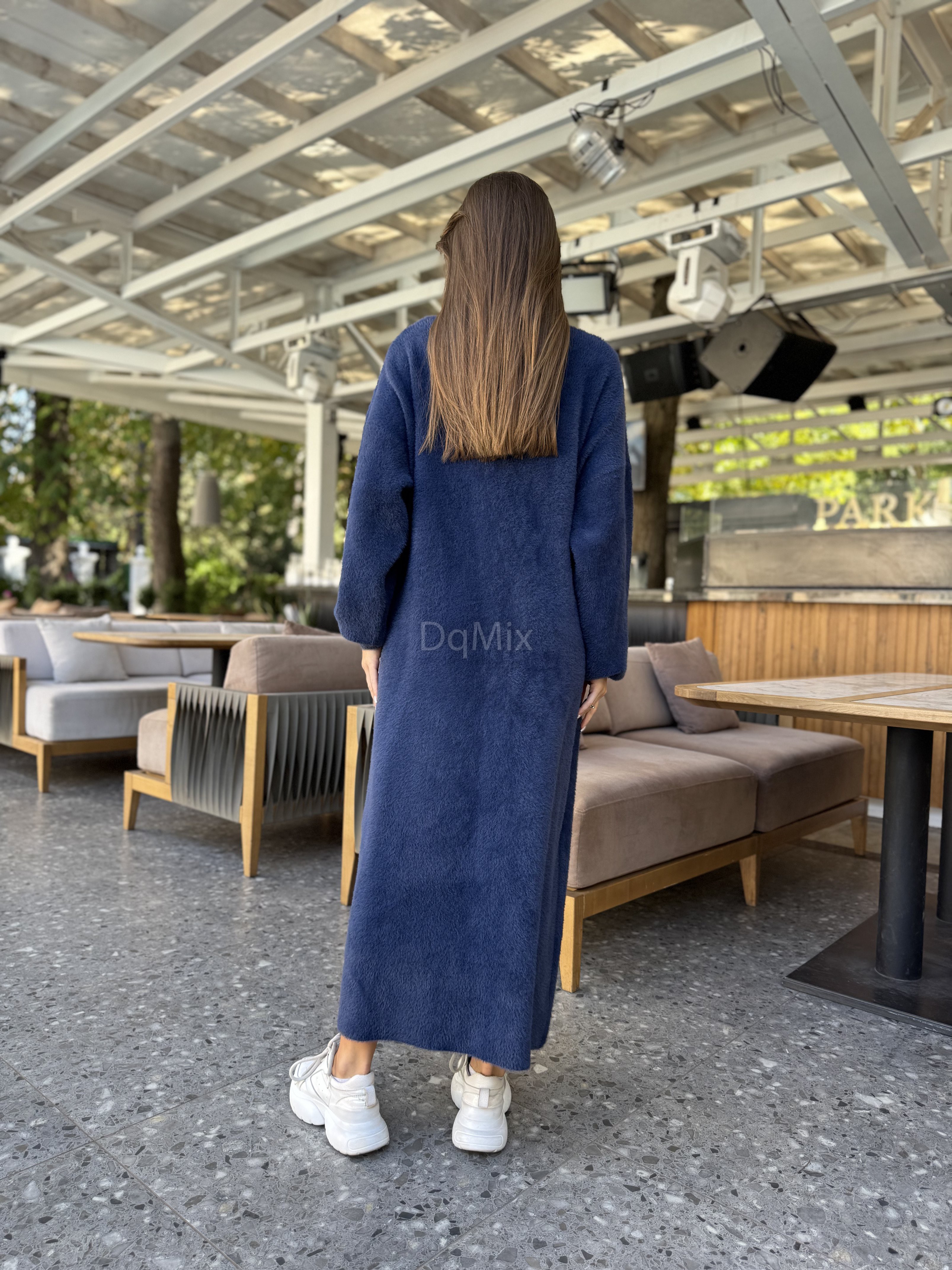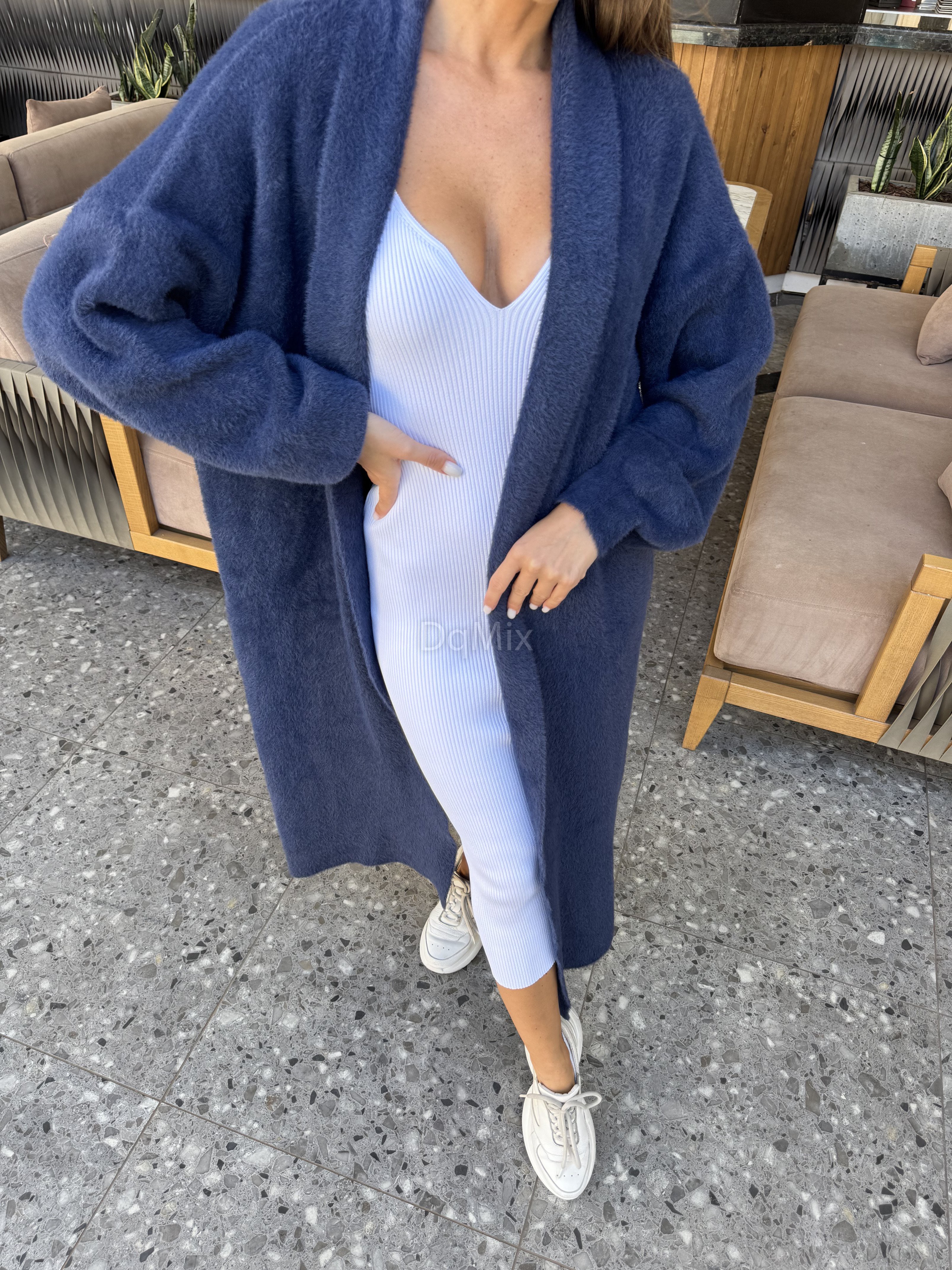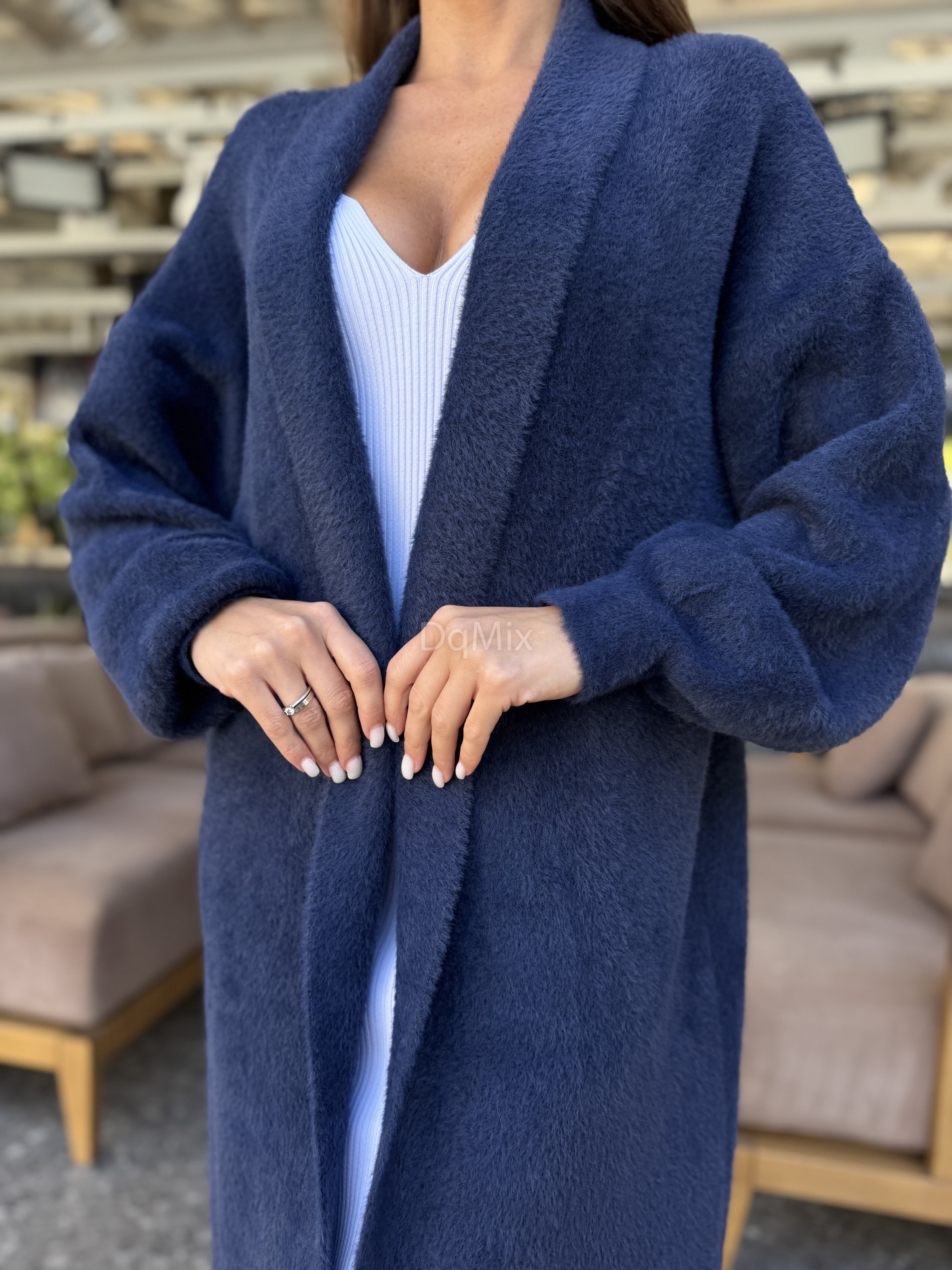 Темно-синій подовжений Кардиган (травичка щільна цупка якісна) прямого вільного крою #92476