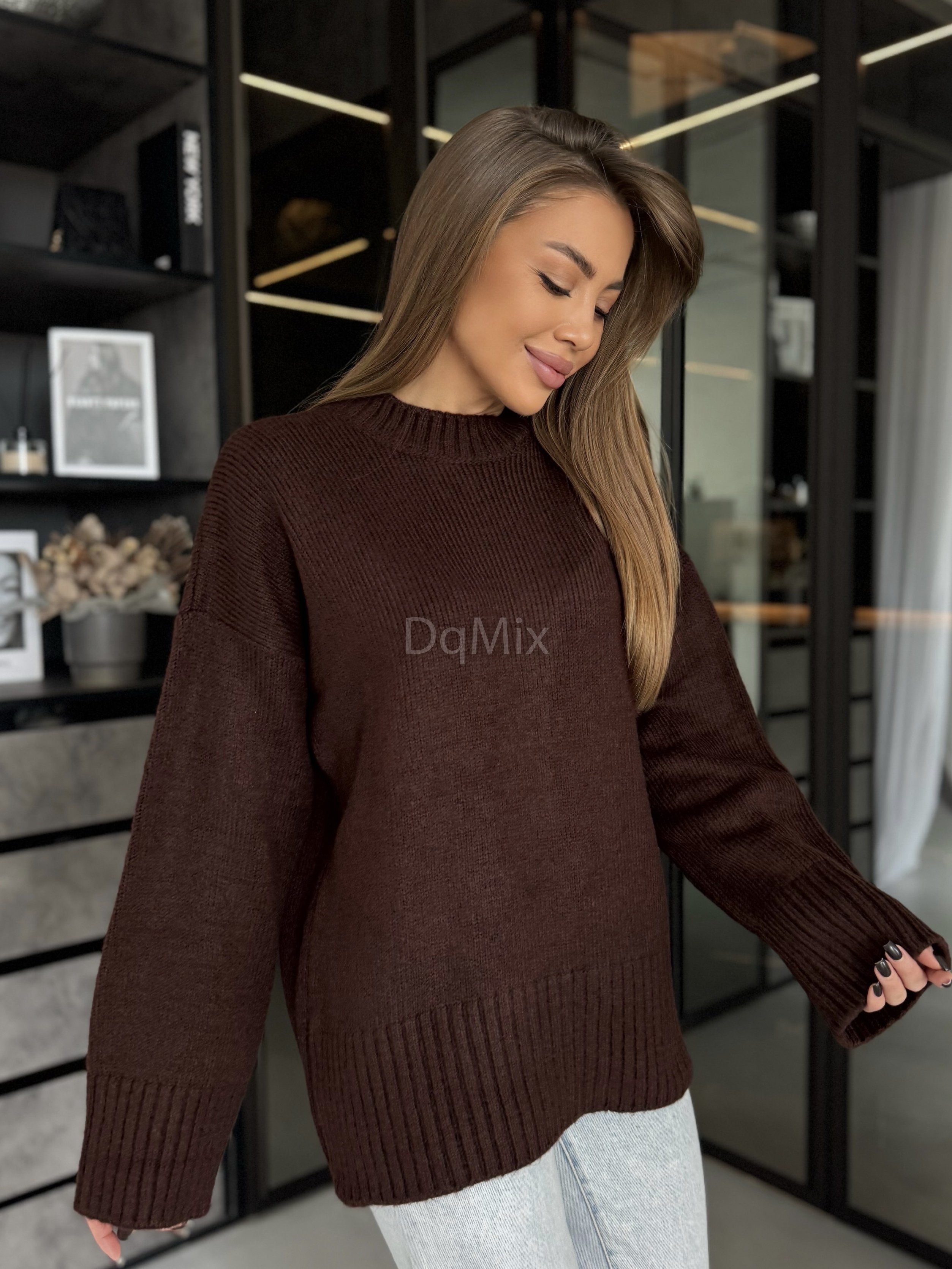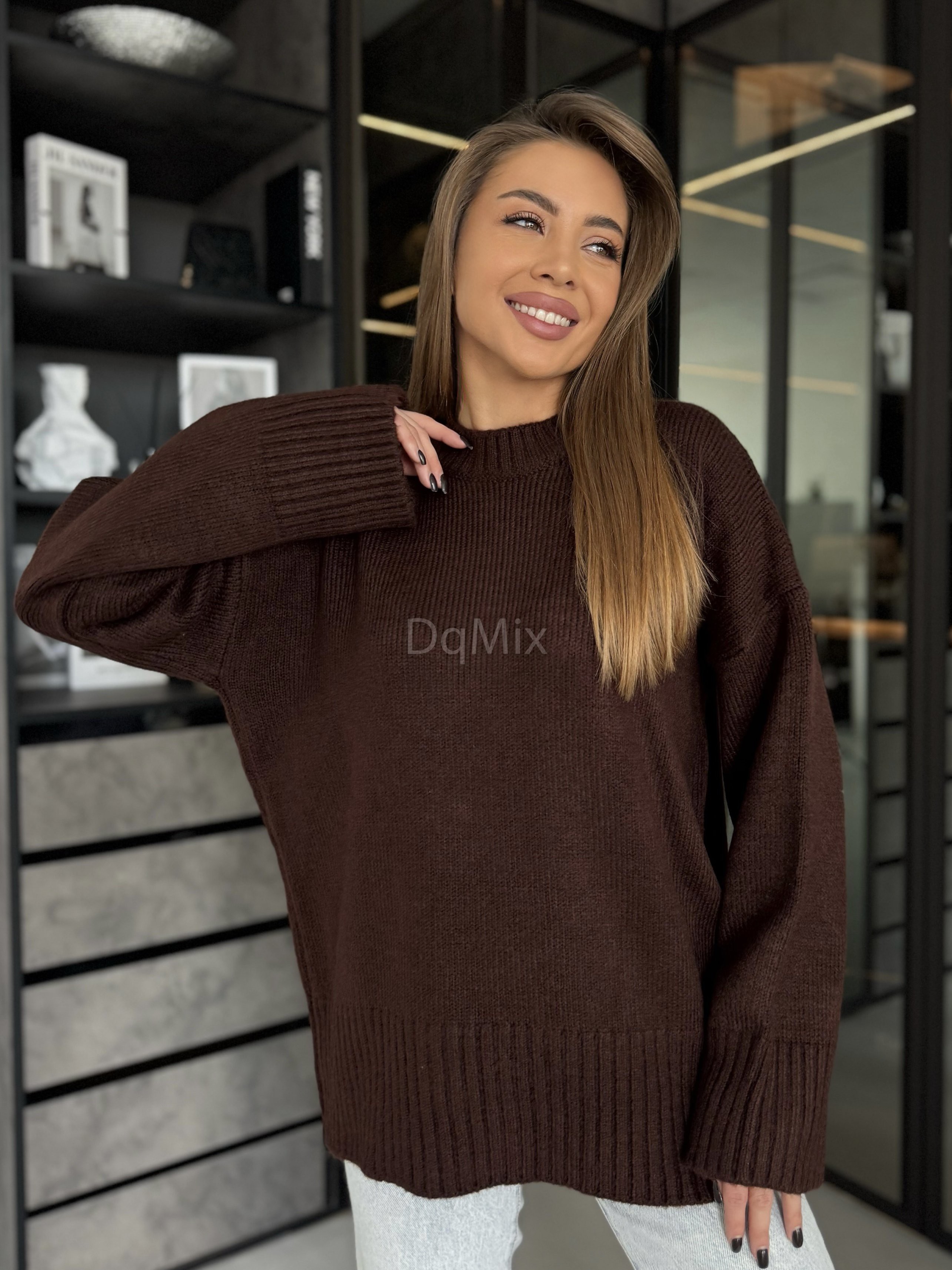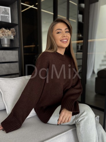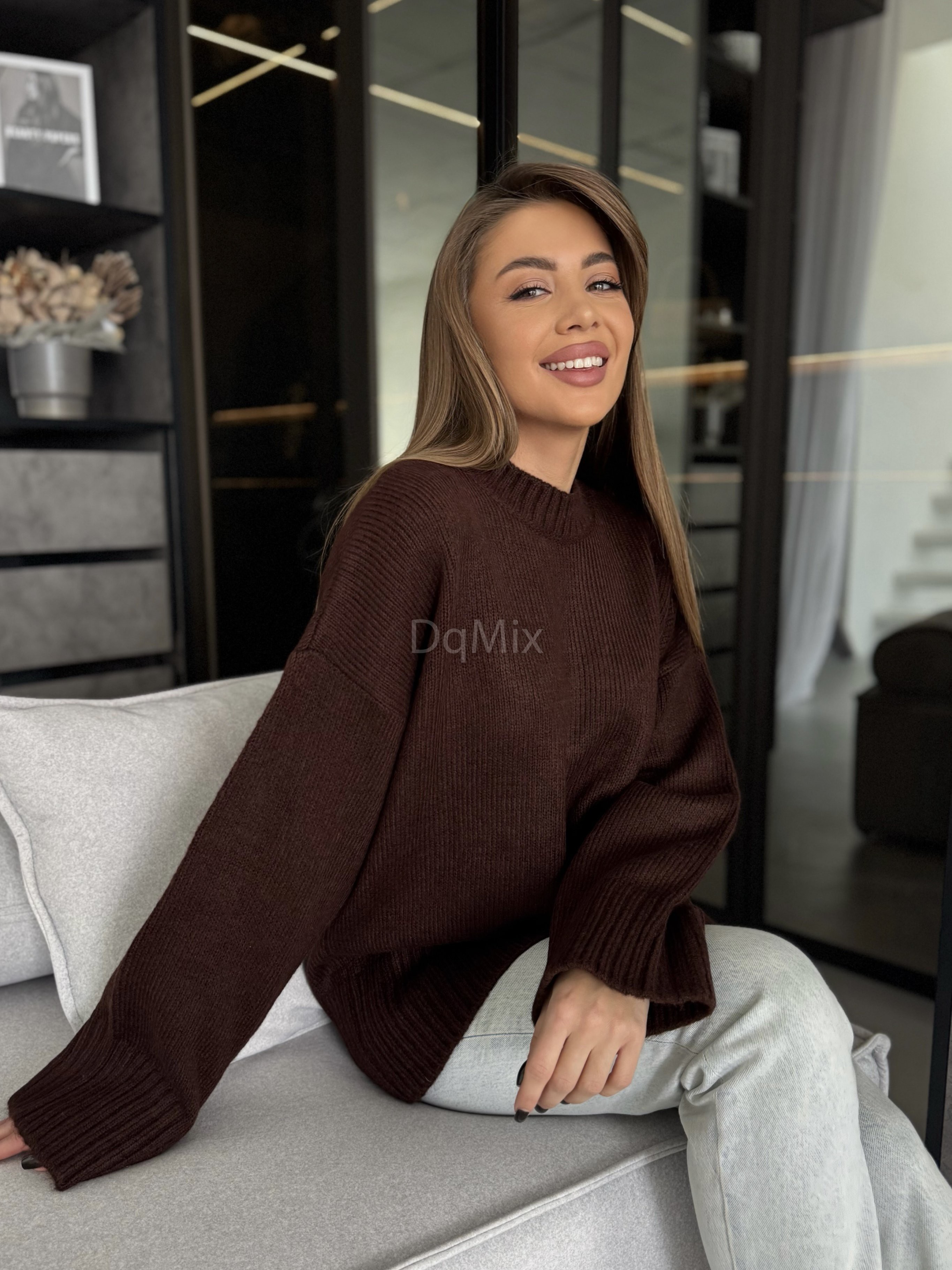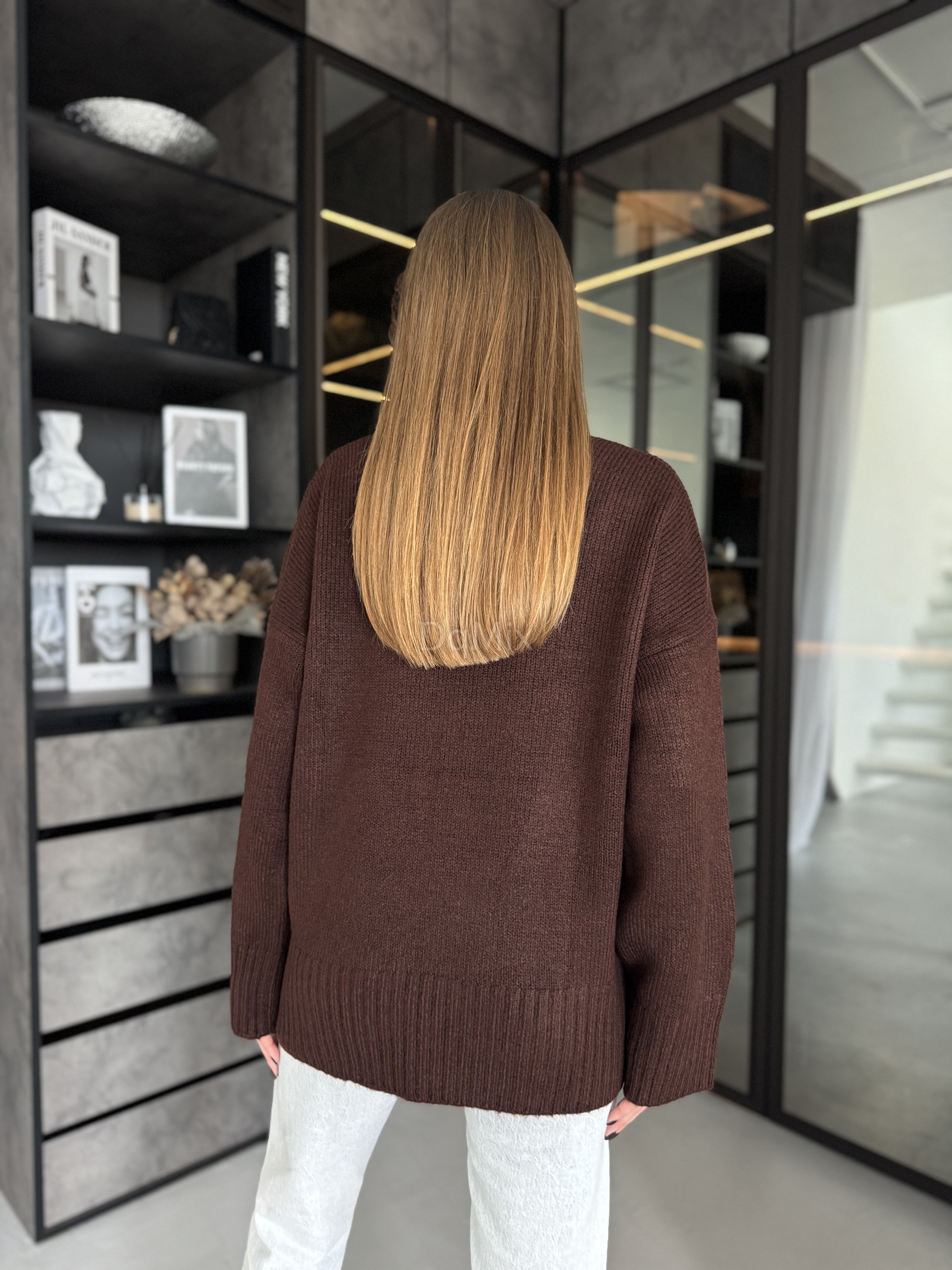 Теплі , затишні светри із широким патентом у шоколадному кольорі #6925