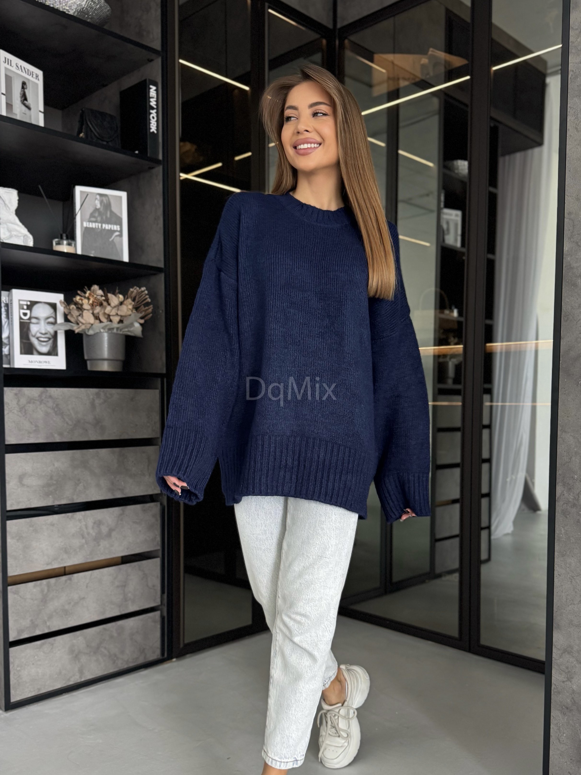 Теплі , затишні светри із широким патентом у синьому кольорі #6925