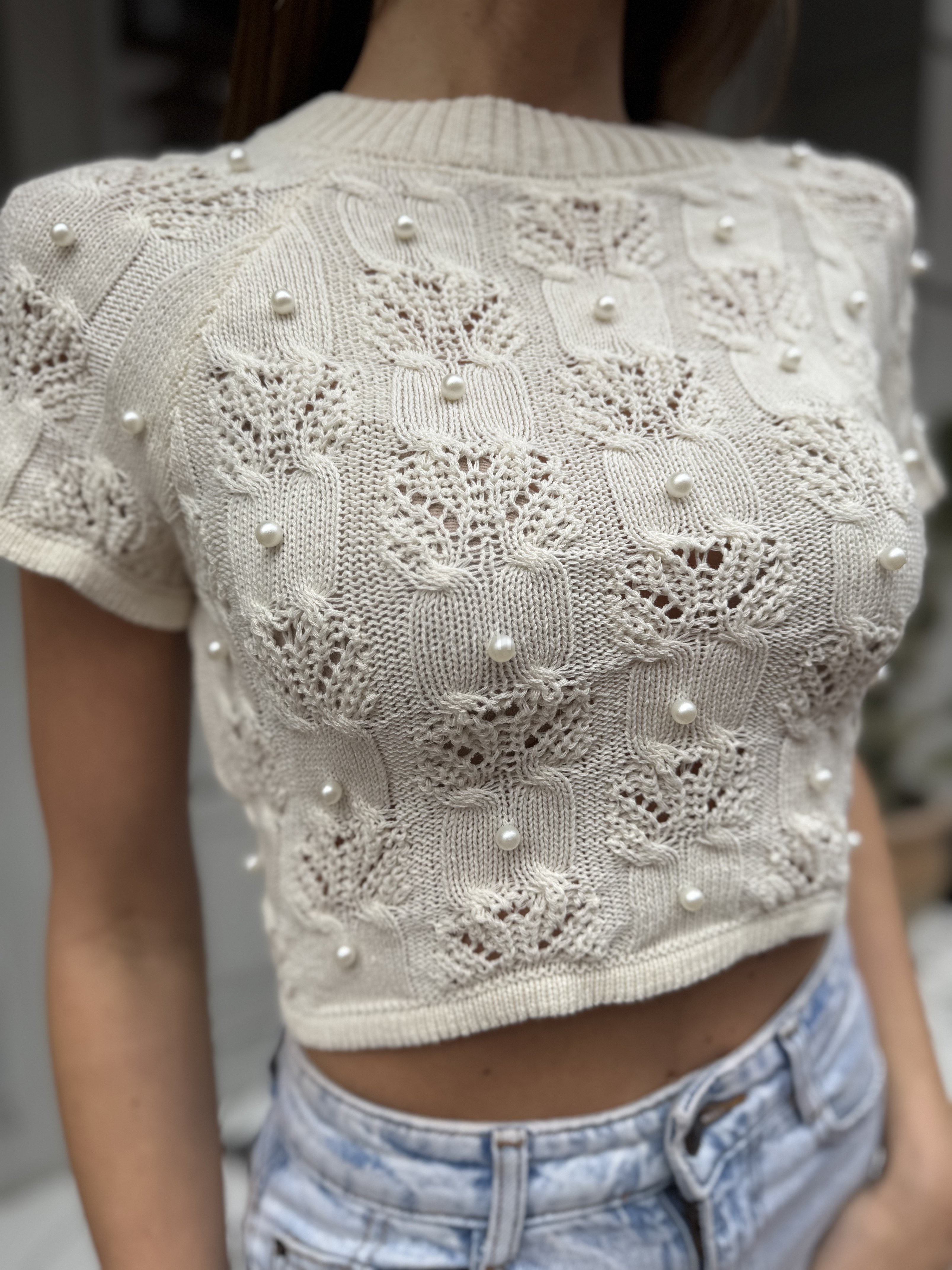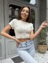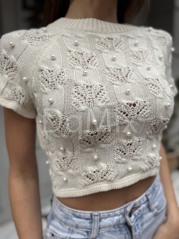 Топ з перлинками , з розрізом на спинці та зав’язках у білому кольорі #97005