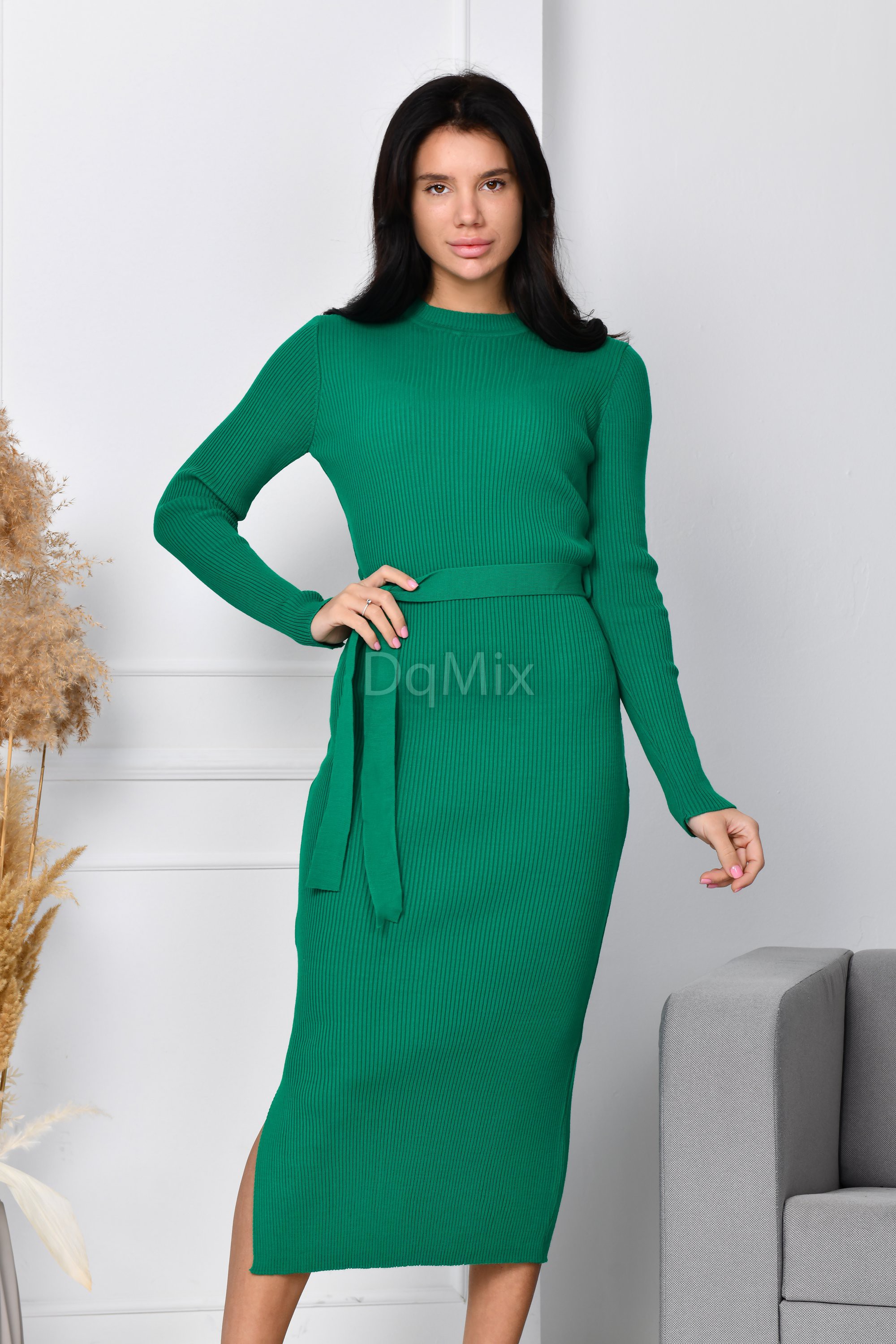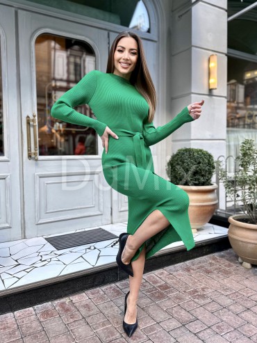 Зелена силуетна сукня з поясом #91293