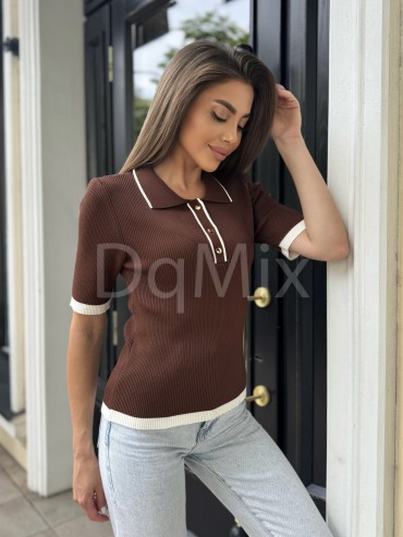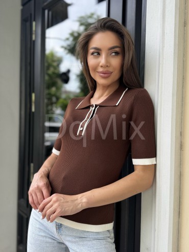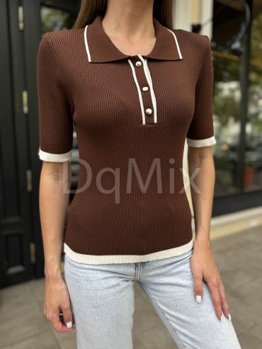 Жіноча шоколадна кофтинка-поло з віскози преміум ниточка #14022