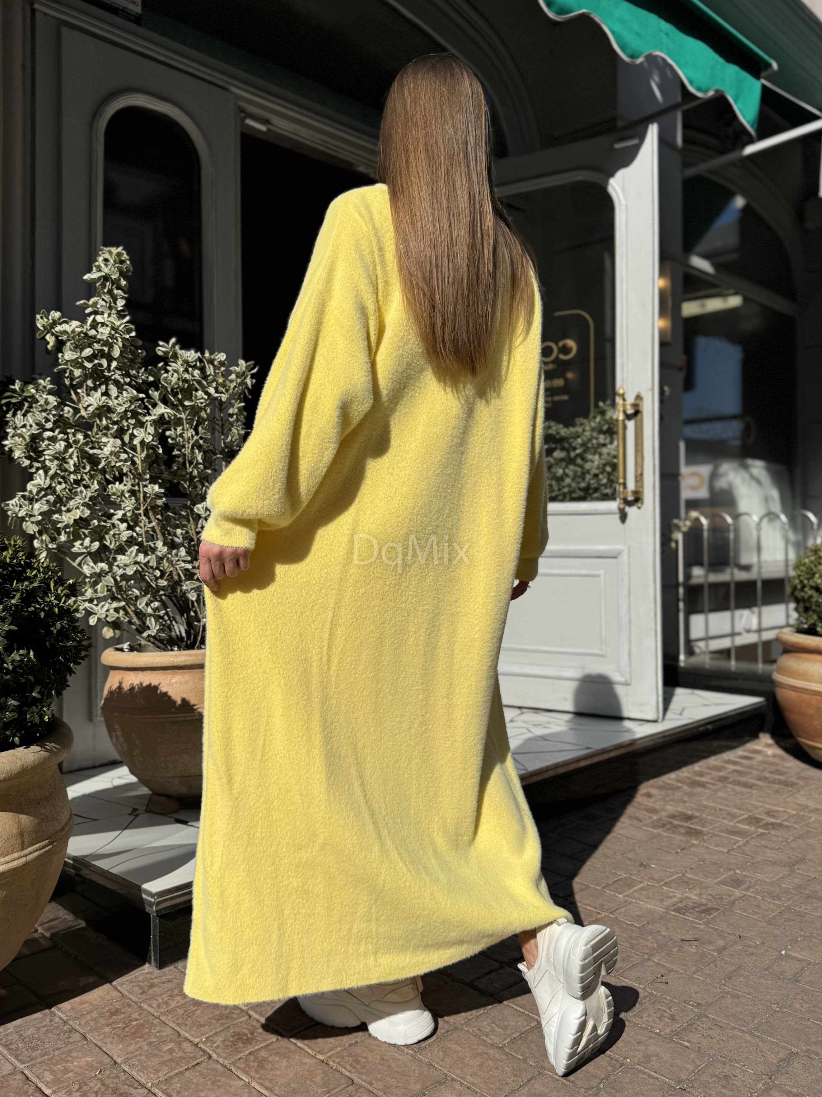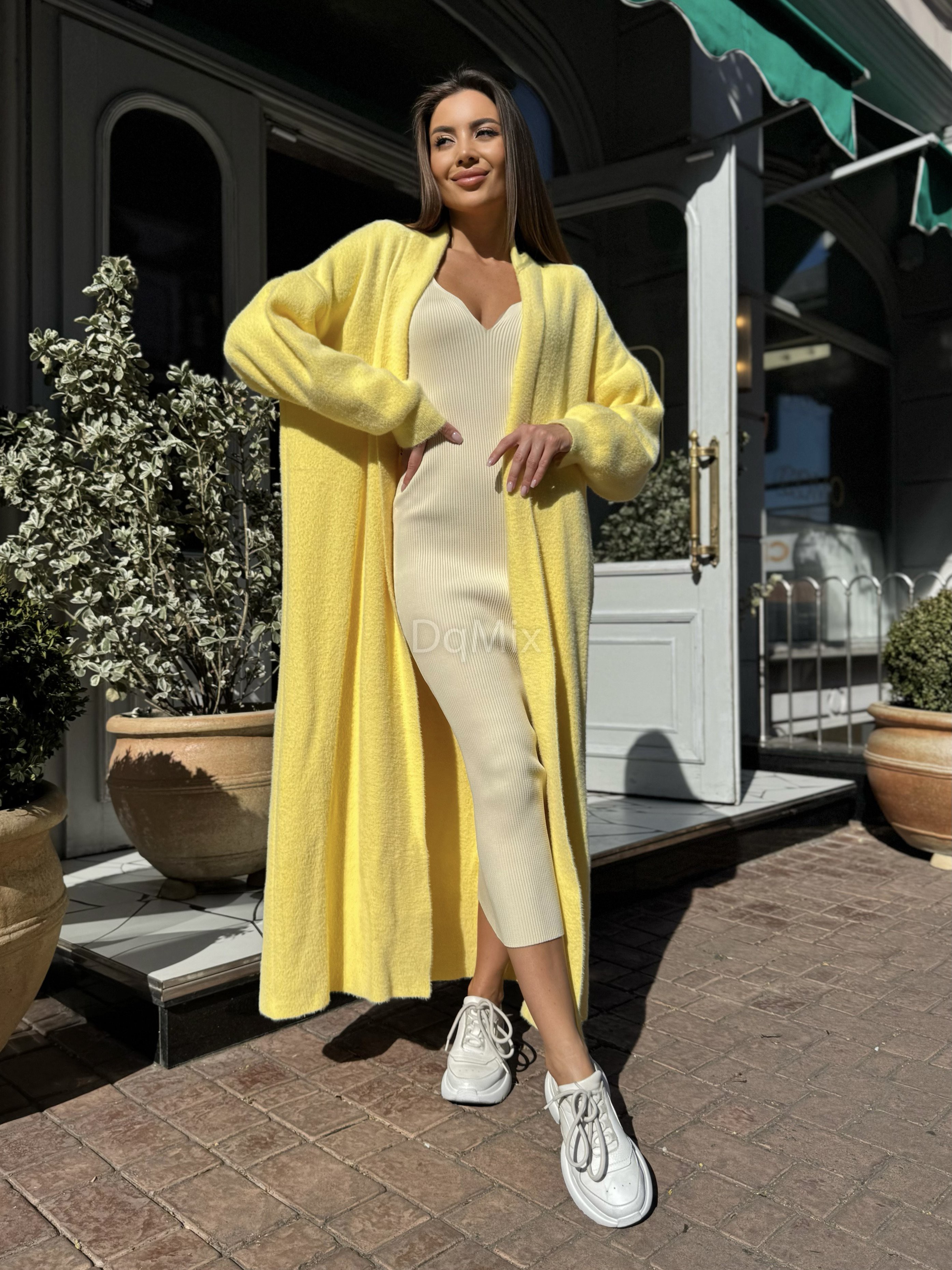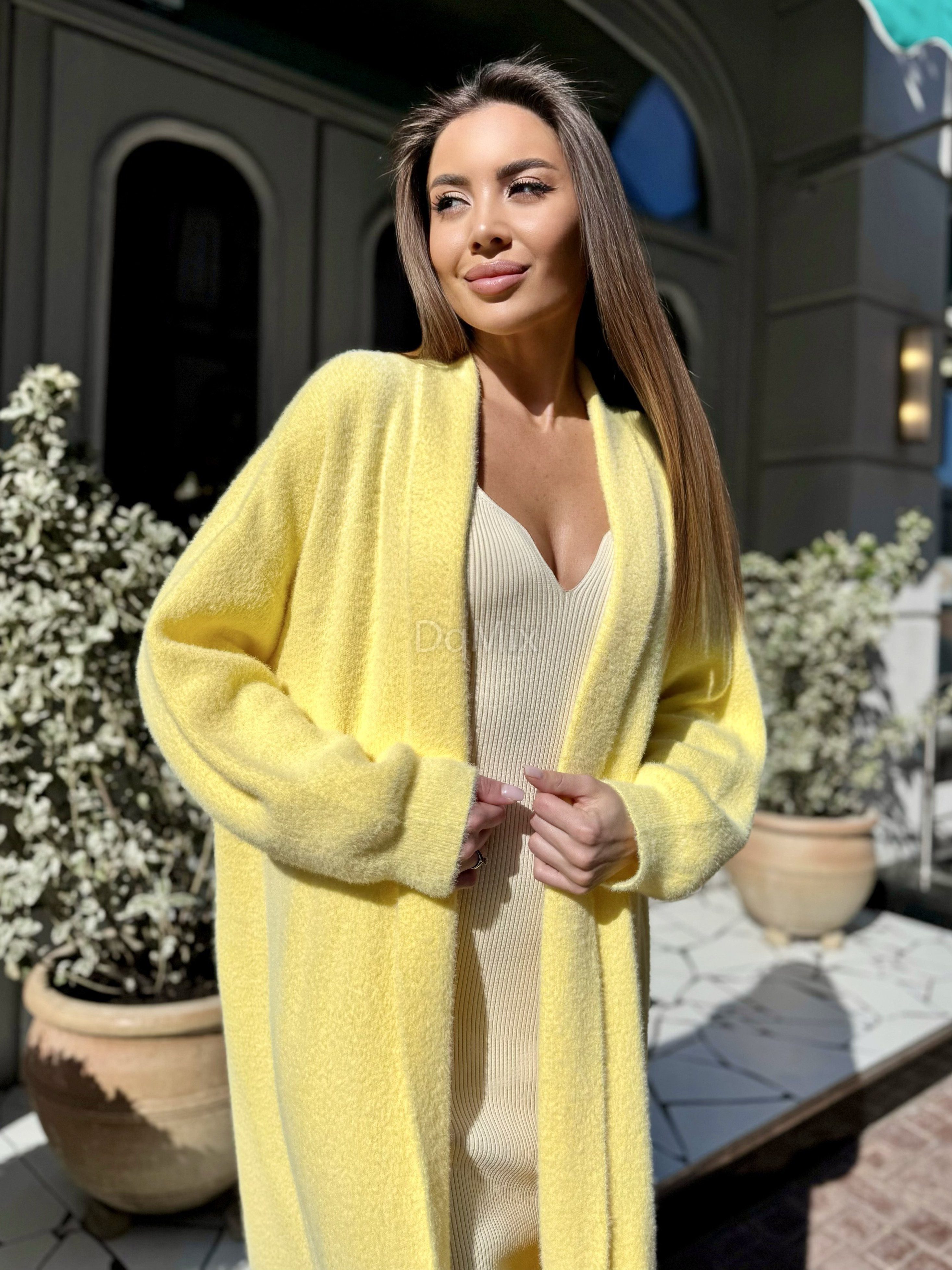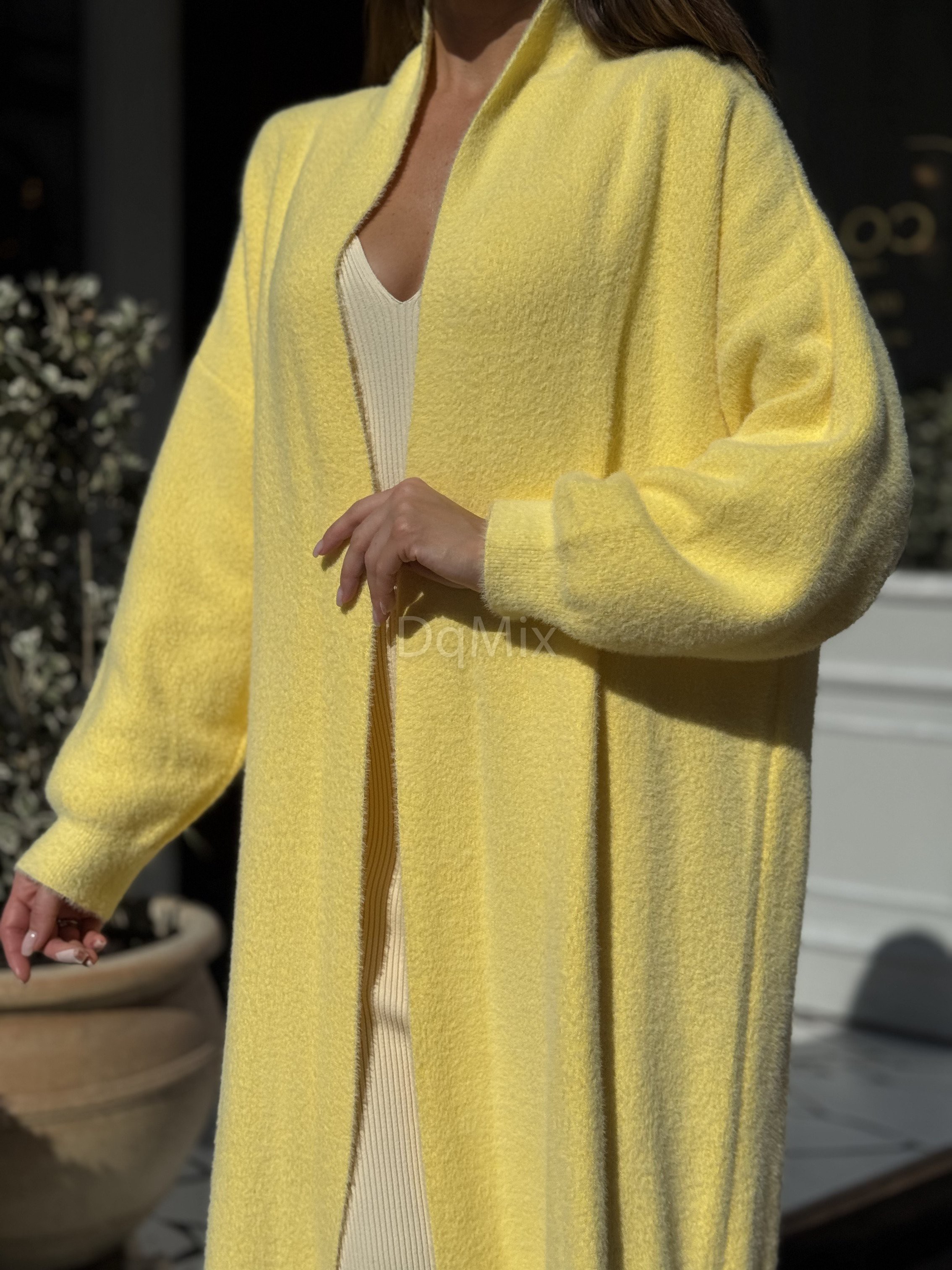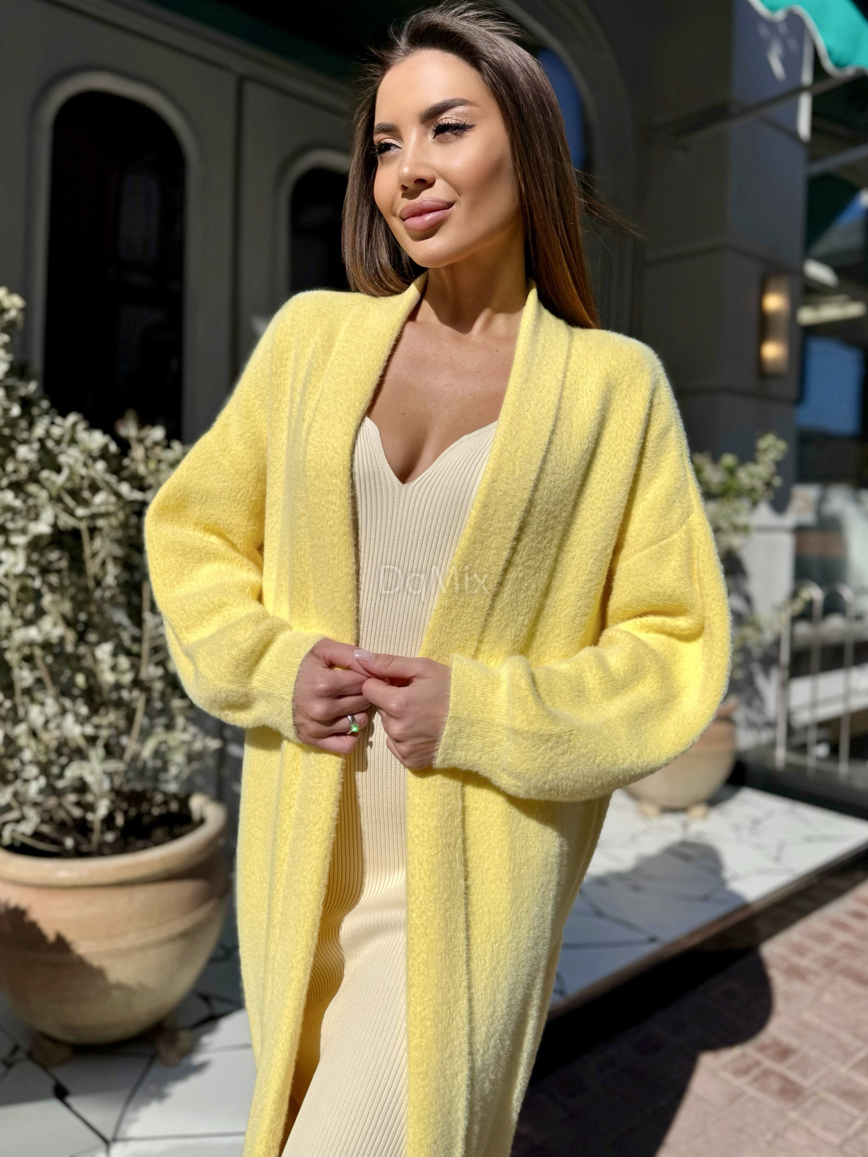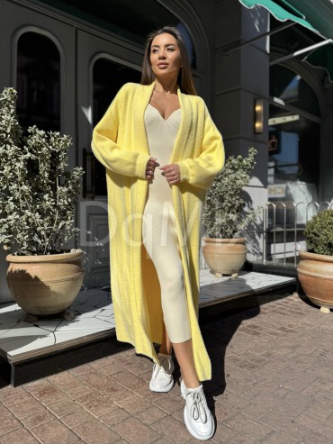 Жовтий подовжений кардиган (травичка щільна цупка якісна) прямого вільного крою #92476